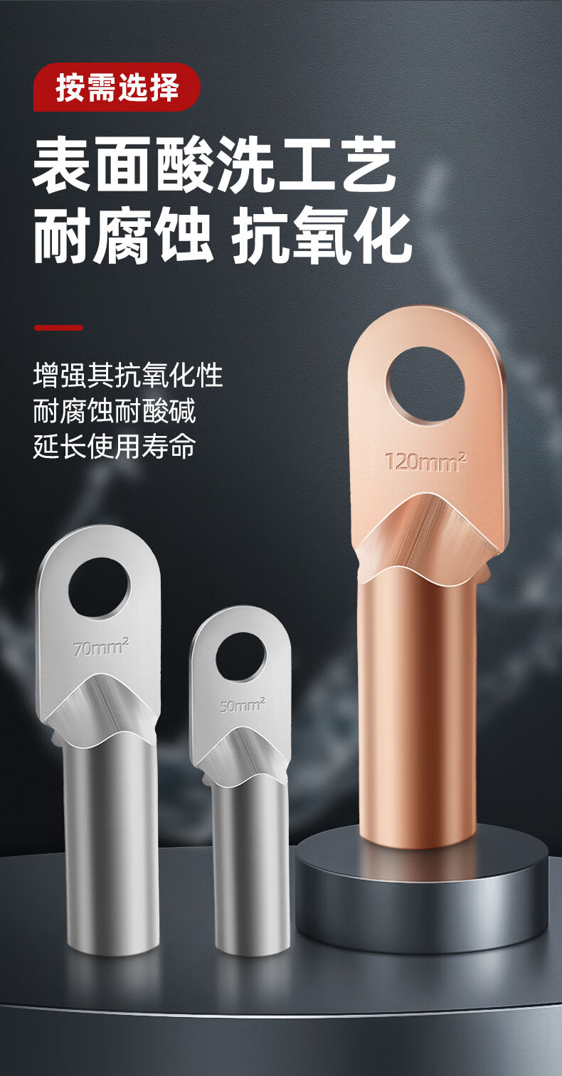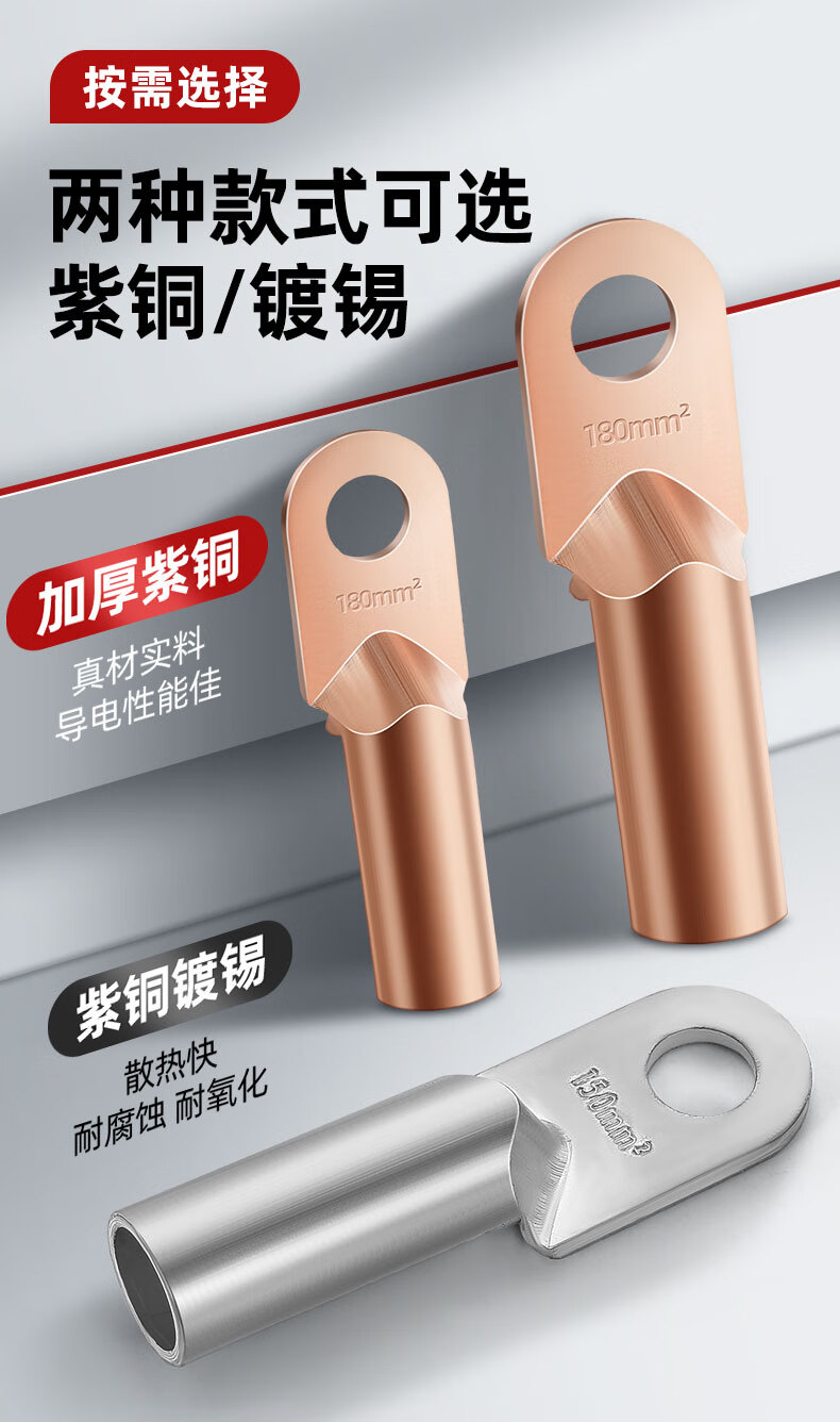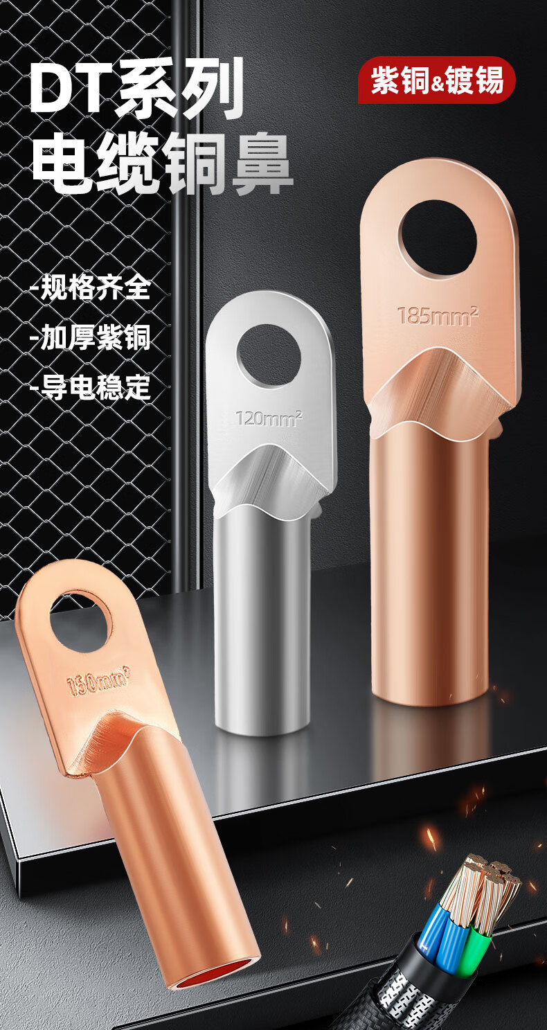 Nez en cuivre, connecteur en cuivre, nez de fil 8/10/16/25/30/70, fil de cuivre carré, bouchon d'oreille, bornier DT-50 en cuivre