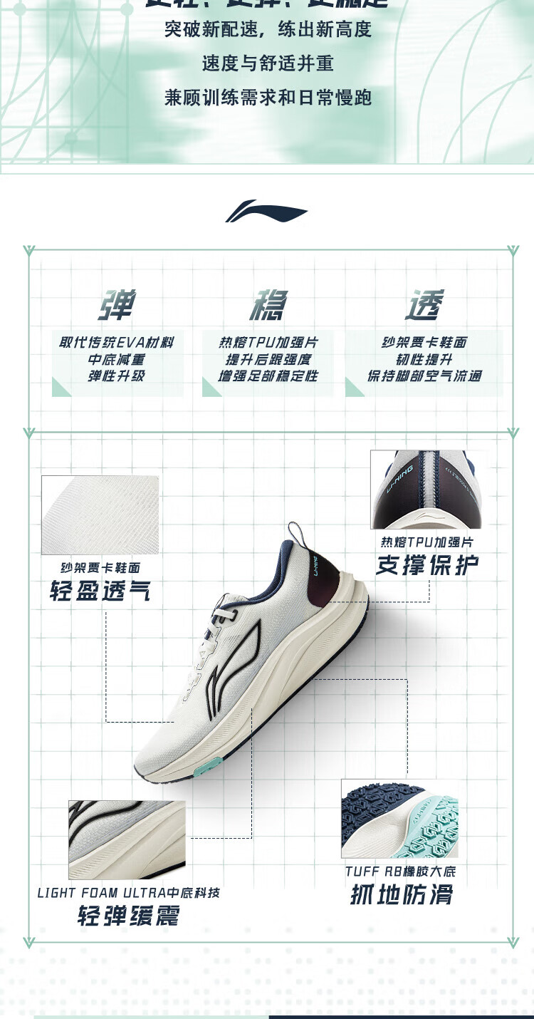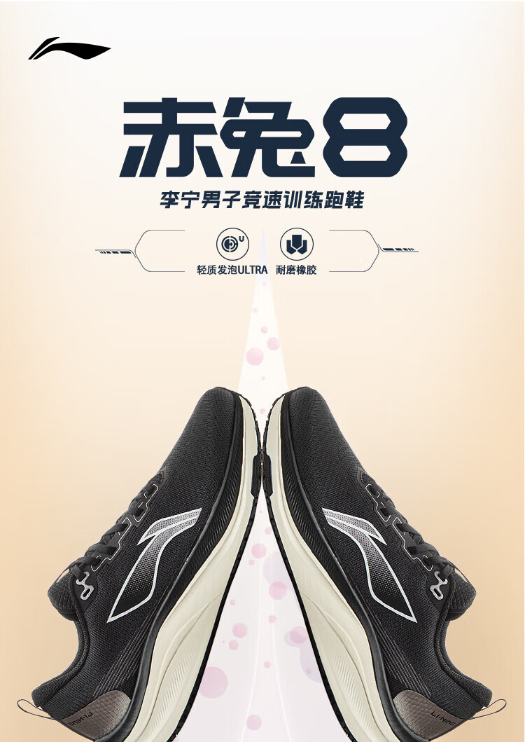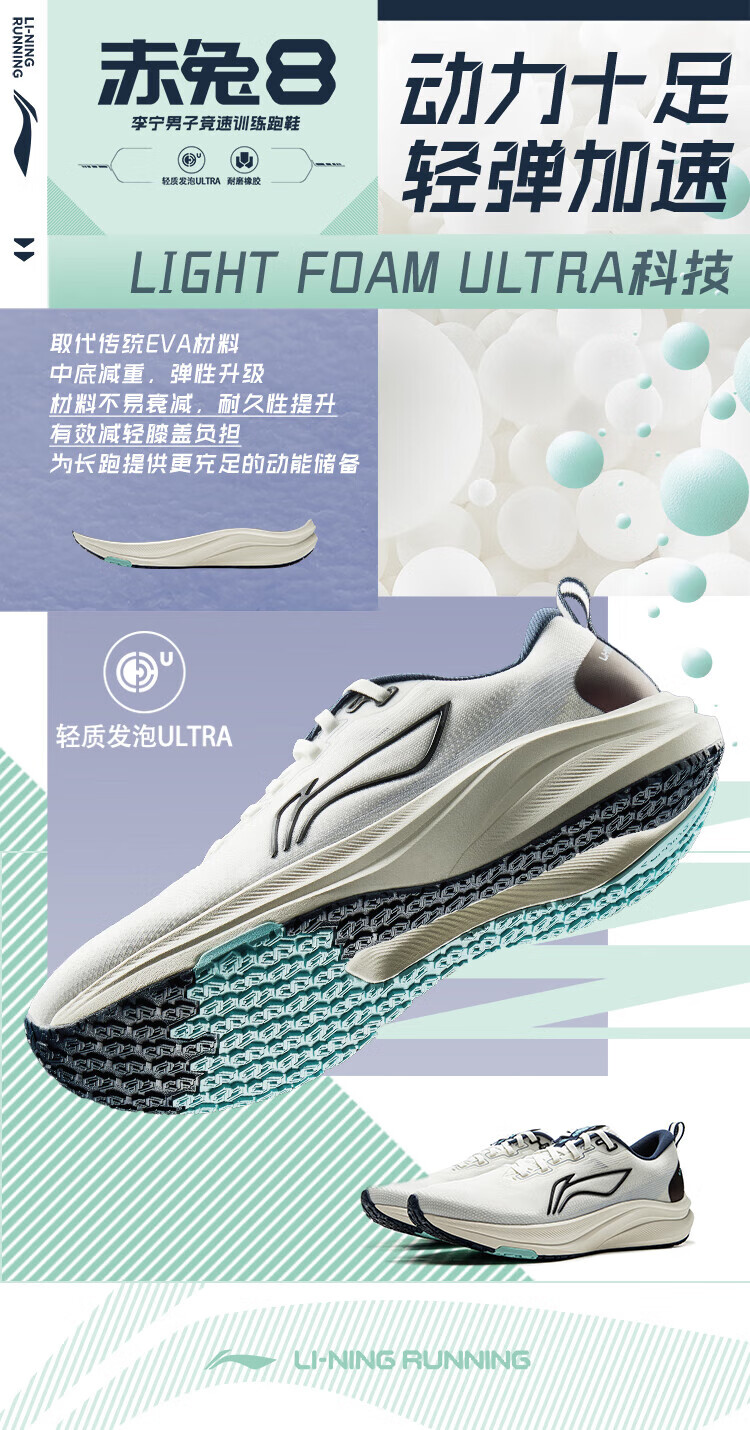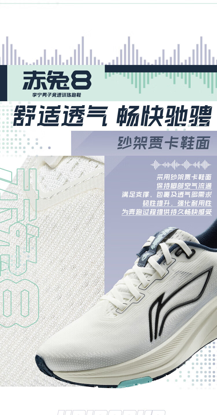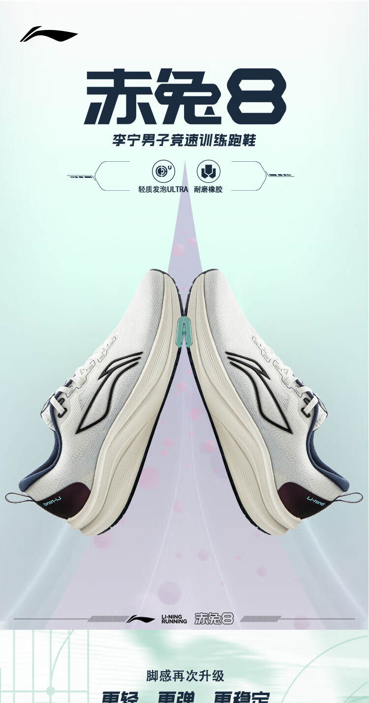 李宁(LI-NING)赤兔8跑步鞋男鞋2025新款轻量高回弹中考体育竞速运动鞋 淡苔蓝/苍峦绿-19 42 (265mm)