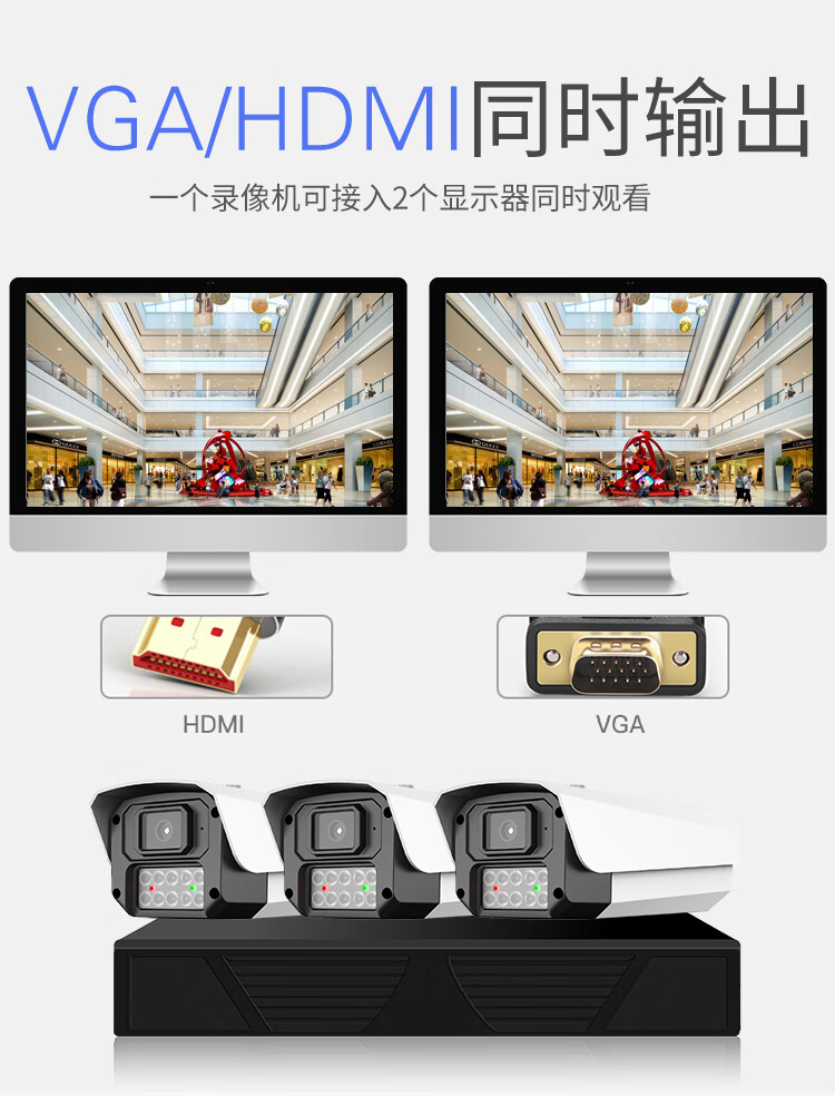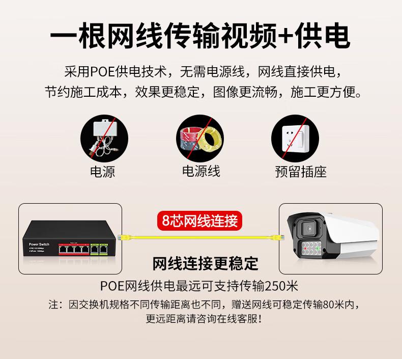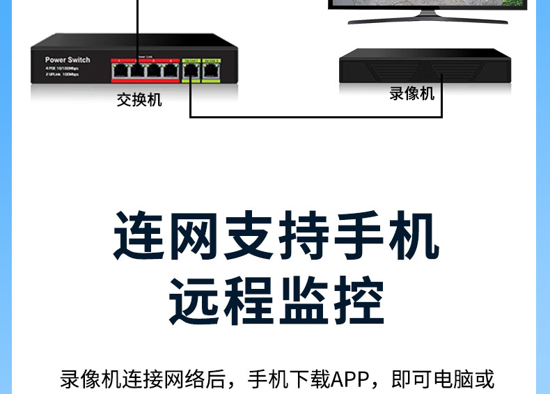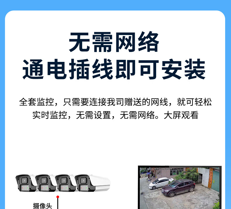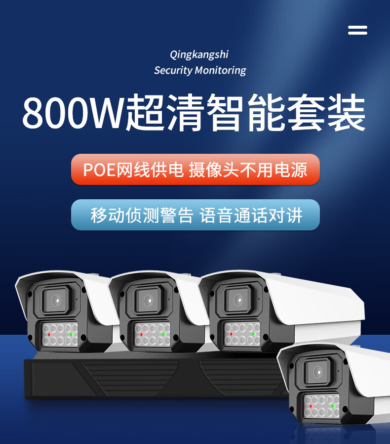 Qingkangshi enregistreur vidéo à câble POE commercial ensemble complet d'équipements de moniteur ensemble de téléphone portable caméra de vision nocturne haute définition à distance système complet utilisation en usine de supermarché intérieur et extérieur sans plug-in ensemble complet 1 voie + écran d'affichage gratuit de 19 pouces enregistrement en boucle de 30 jours toute la journée