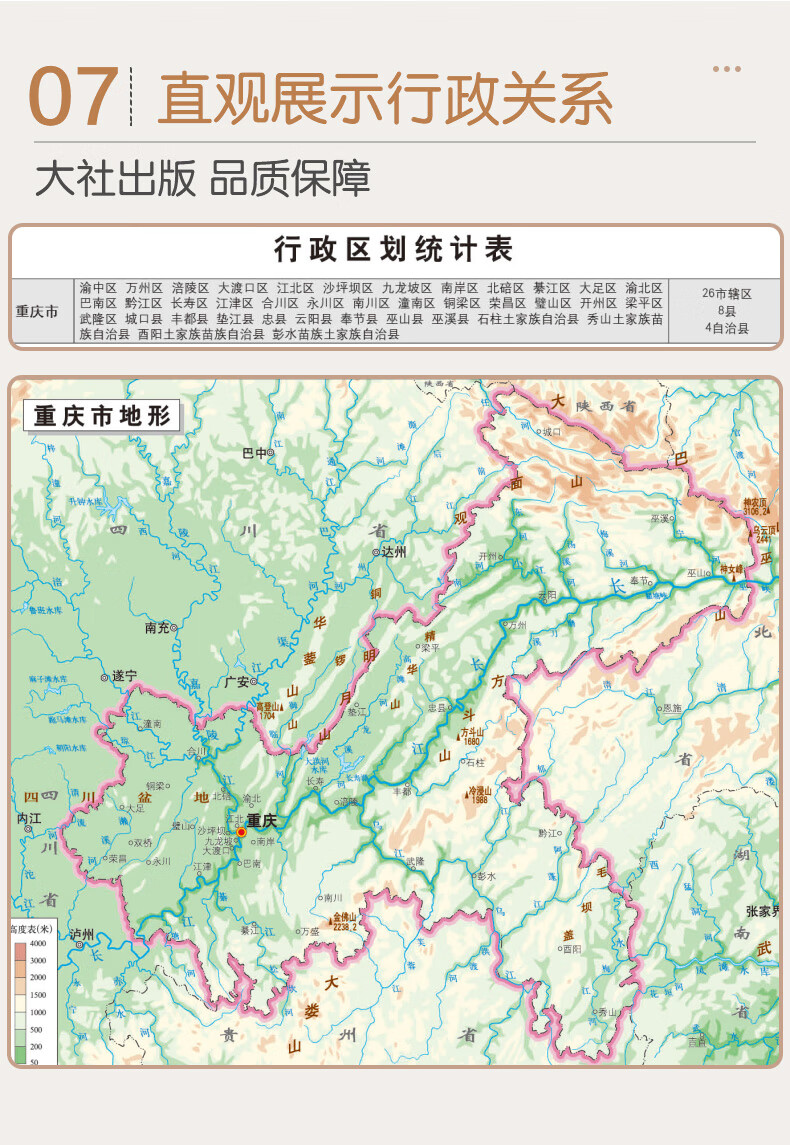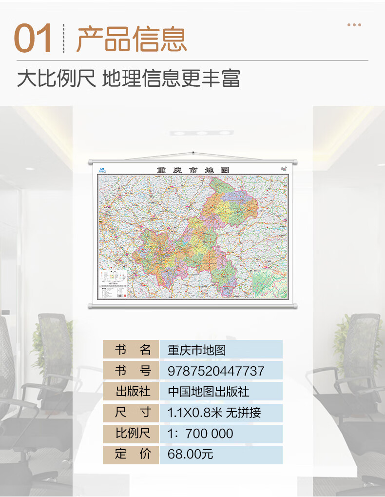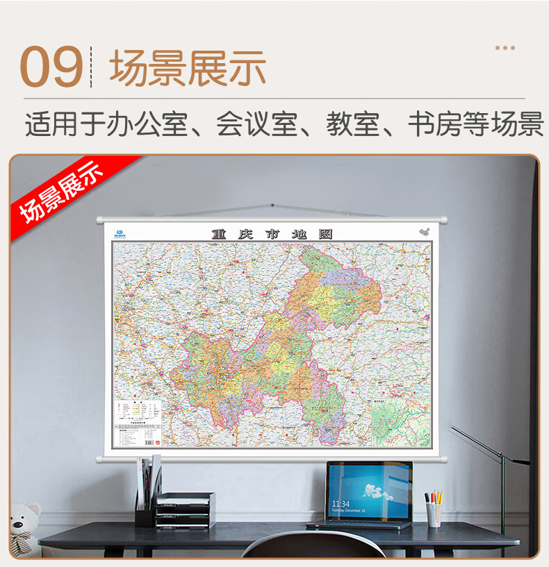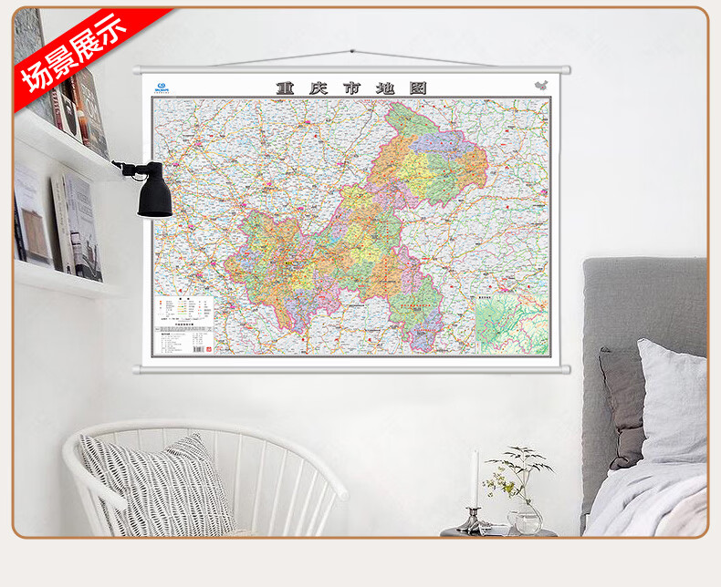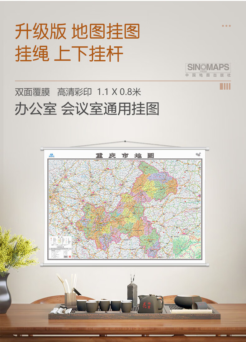 【升级加厚版】重庆市地图 1.1米*0.8米高清全彩挂图 含政区地形交通景点等 双面覆膜防水防尘