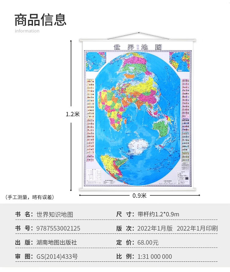 【换个角度看世界】2025新版竖版世界知识地图挂图 0.9米*1.2米 覆膜防水 世界地图(知识版) 世界地图挂图 无规格