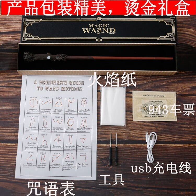 Harry Potter wand fire-breathing magic prop Douyin same children's toy boy genuine can launch flame magic 6.5mm magic wand Harry Potter + consumable paper + gift box + spell list