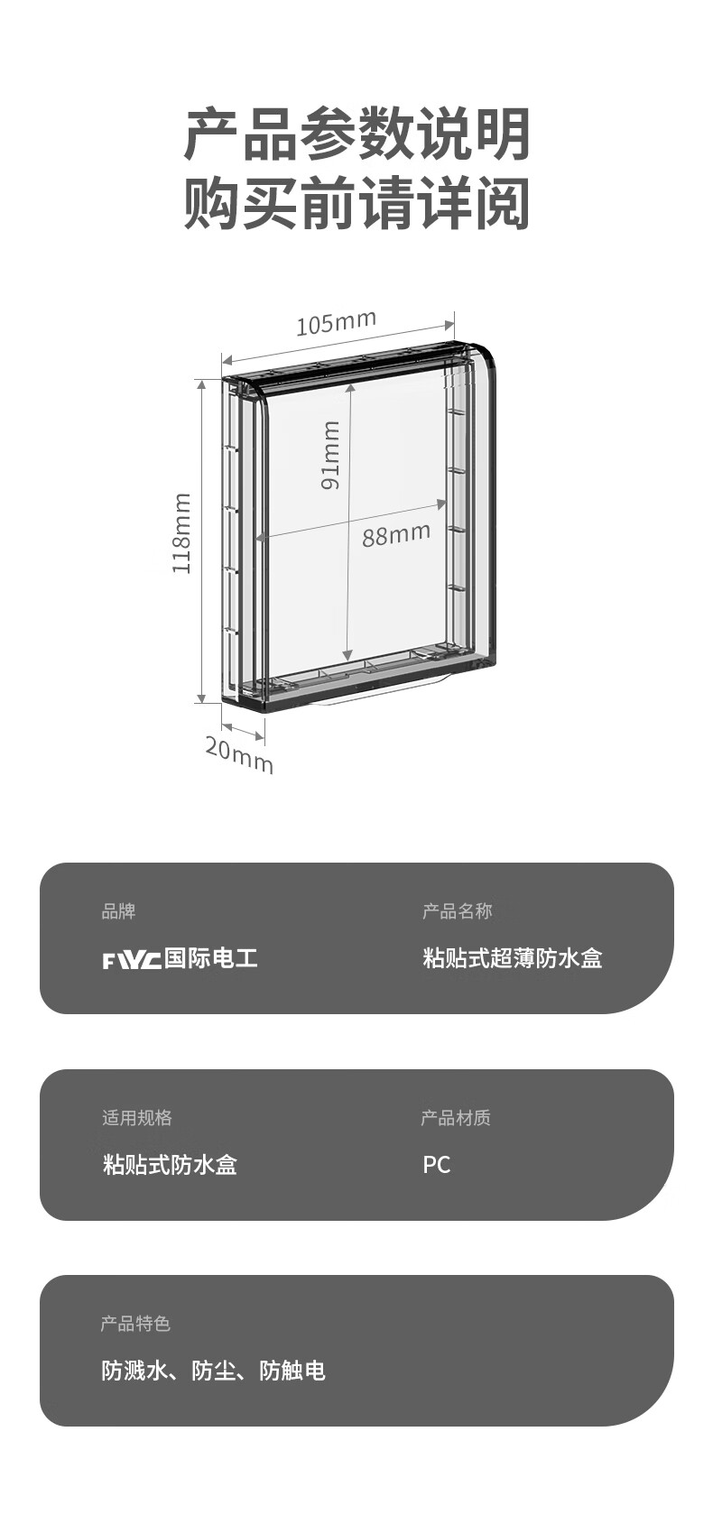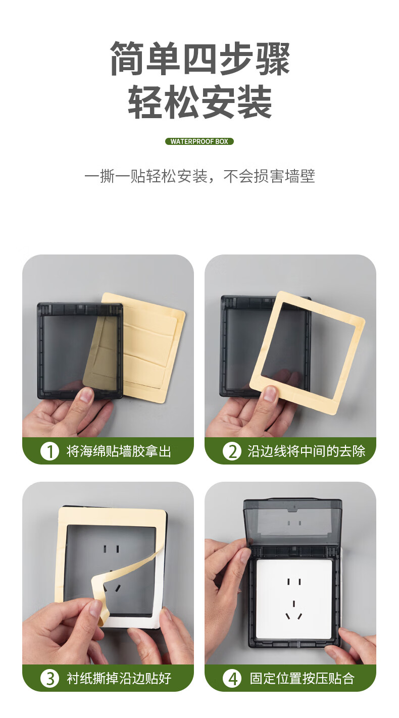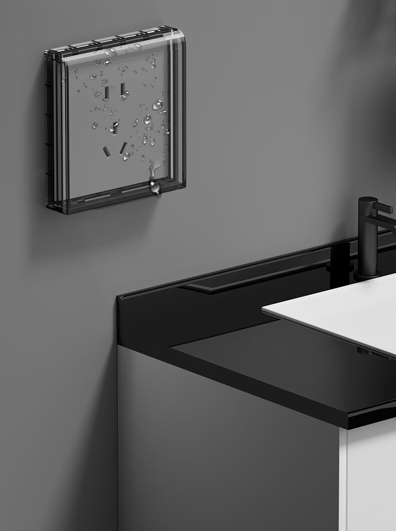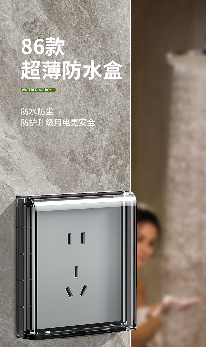 Boîte étanche ultra fine de type 86 pour électricien international, prise de commutateur, boîte autocollante anti-éclaboussures, salle de bain, cuisine, balcon, couvercle de protection adhésif noir-type 86, boîte étanche ultra fine, type adhésif