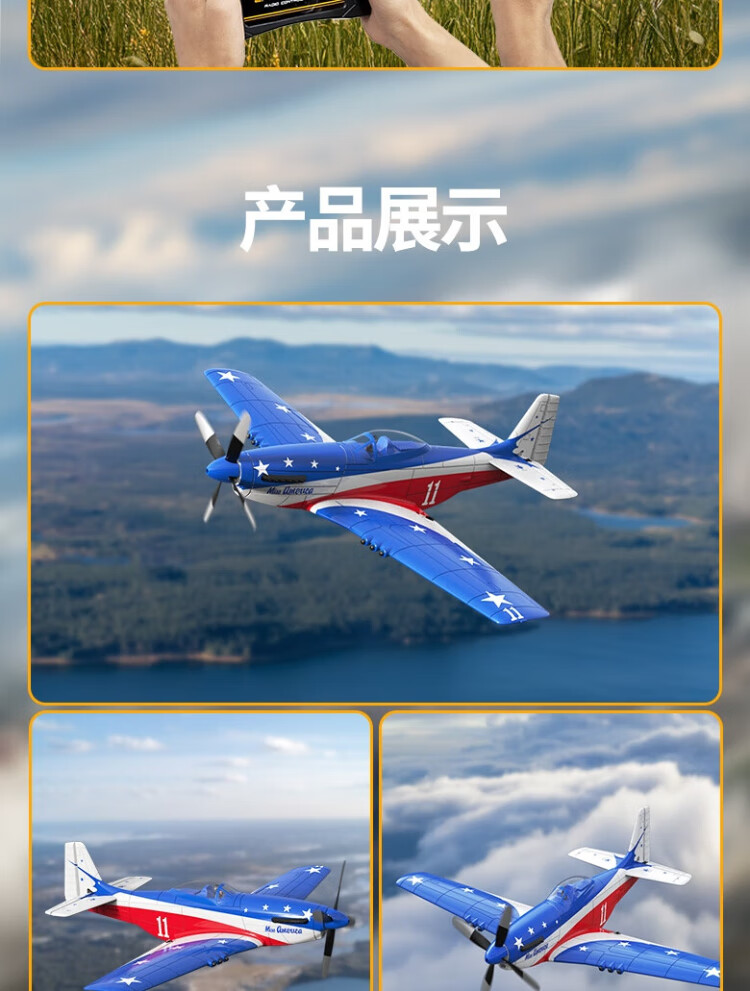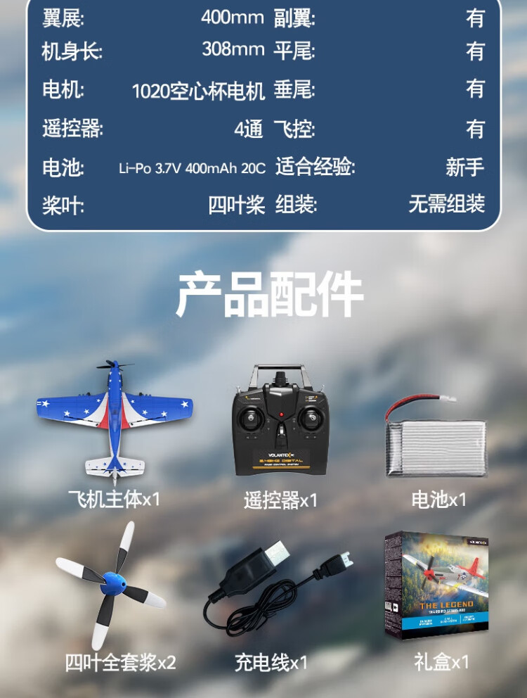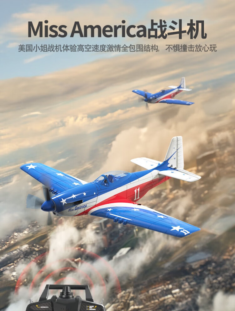 VOLANTEXRC Modèle d'avion de la Seconde Guerre mondiale p51d Mustang Fighter à voilure fixe à quatre canaux RC planeur de simulation d'avion télécommandé authentique Miss America machine complète version électrique unique