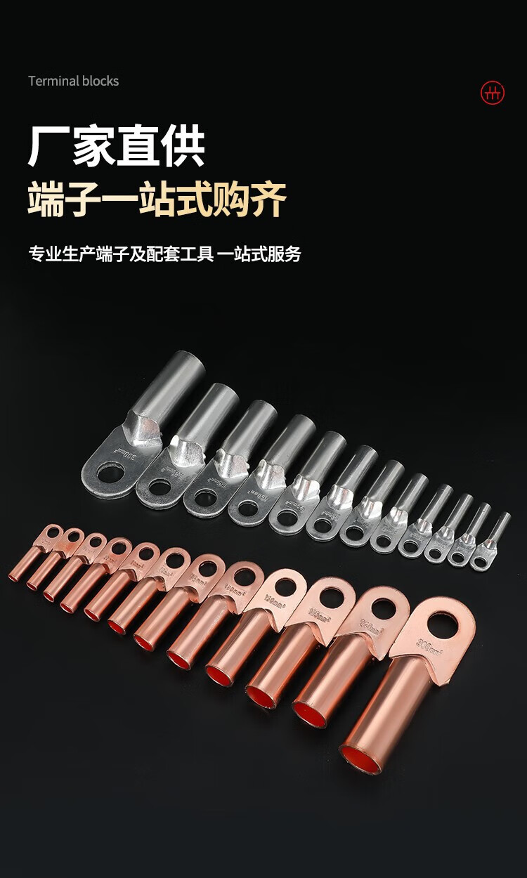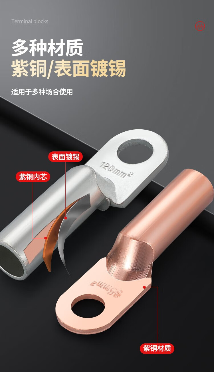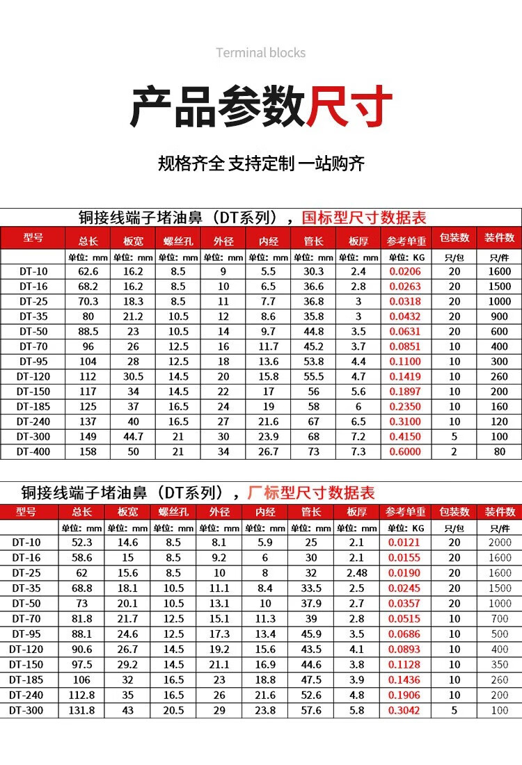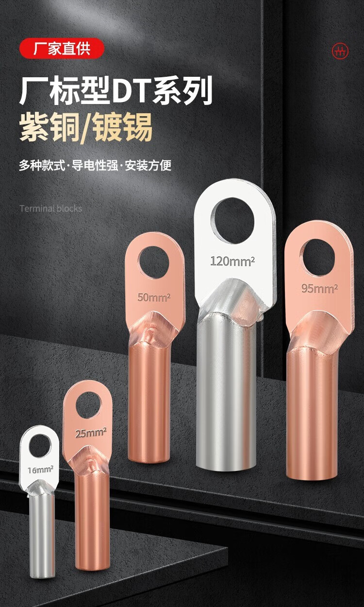 Shantou Lincun DT fil de bornier à nez en cuivre nez de fil de cuivre connecteur en cuivre bloquant l'huile étamé 25/35/50 oreille de fil de cuivre carré étamé DT-10