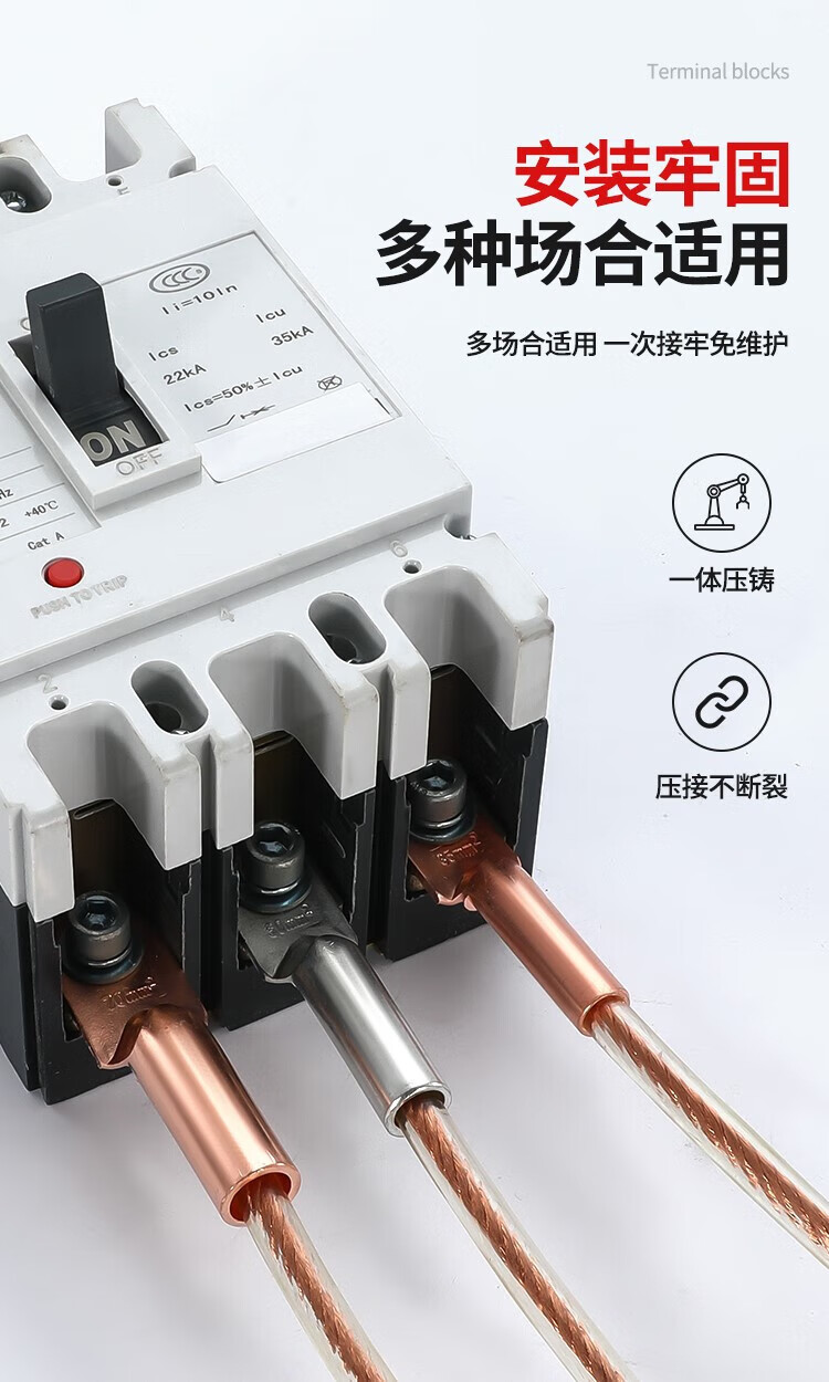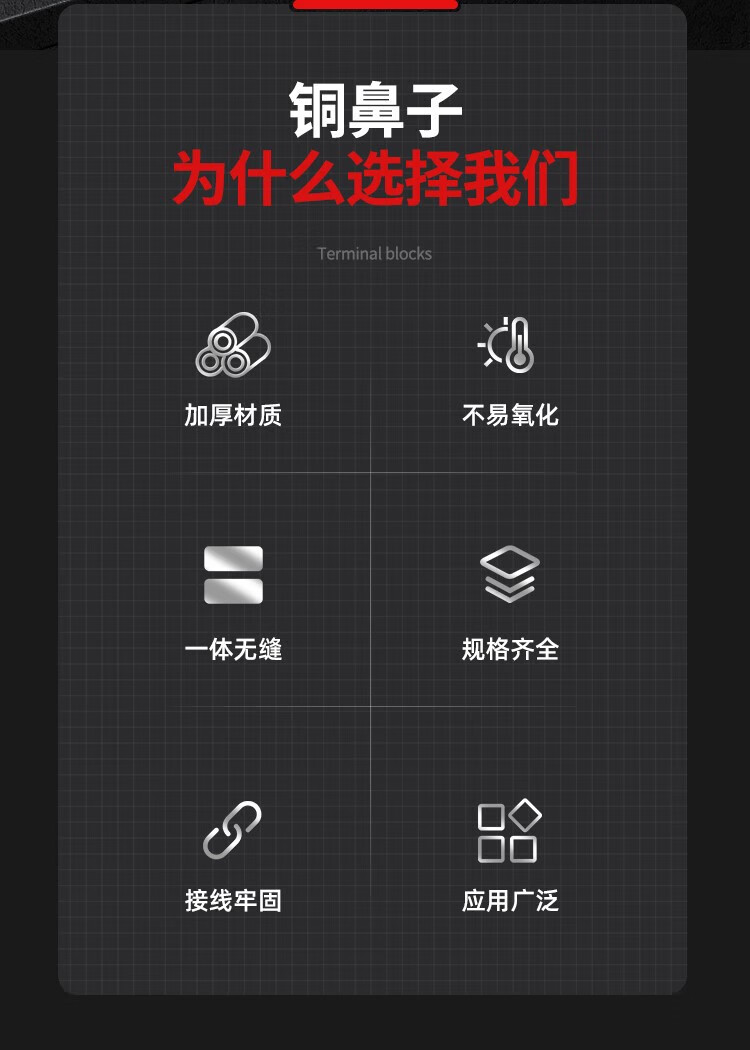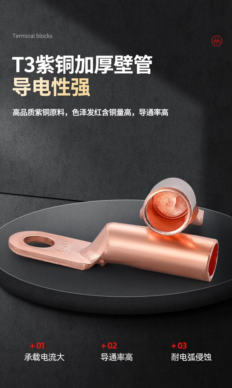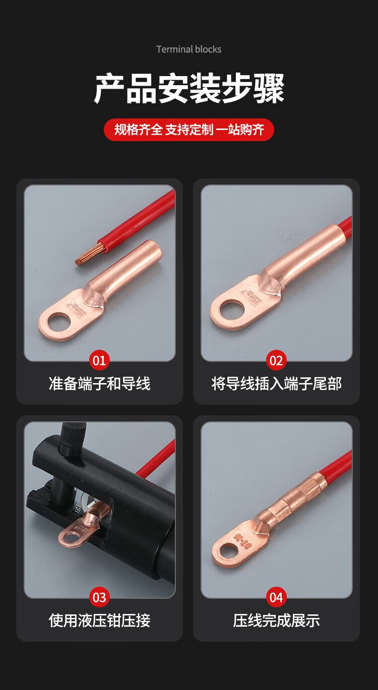 Shantou Lincun DT fil de bornier à nez en cuivre nez de fil de cuivre connecteur en cuivre bloquant l'huile étamé 25/35/50 oreille de fil de cuivre carré étamé DT-10