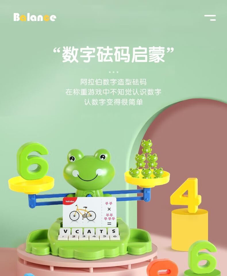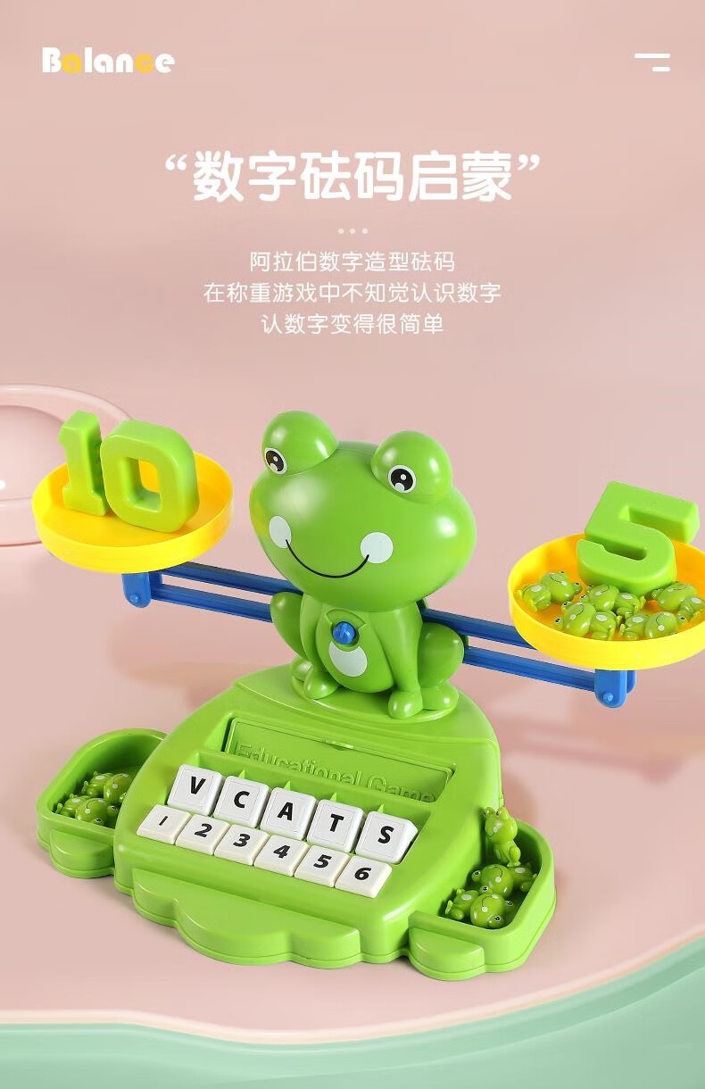 JCZS儿童青蛙天平秤玩具数字学习思维训练亲子互动小男女孩3到6岁 粉色/青蛙天平+40砝码+10数字
