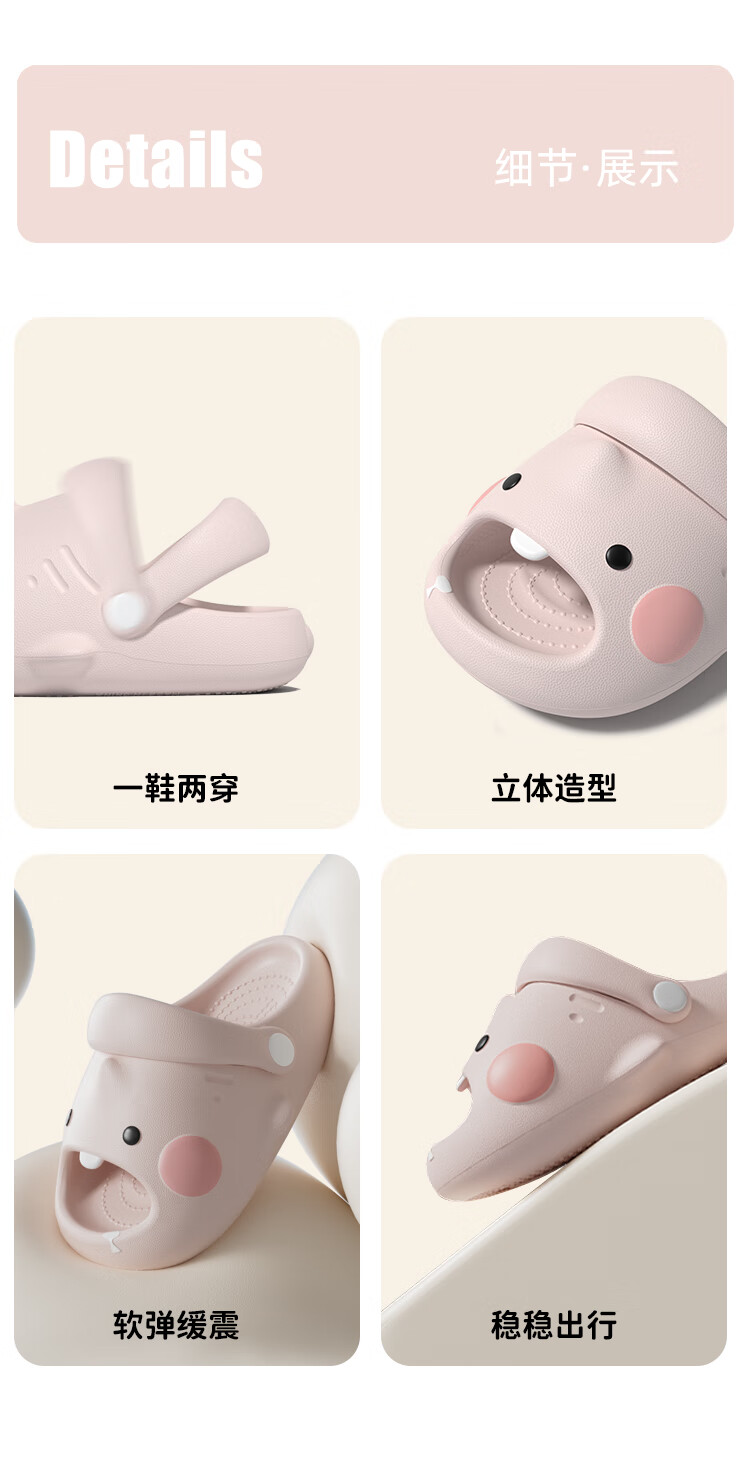 Babycrayon new budding shark children's slippers for girls and boys in summer outdoor wear indoor non-slip slippers for small and medium-sized children pink 15 cm inner length suitable for feet 14.5cm long