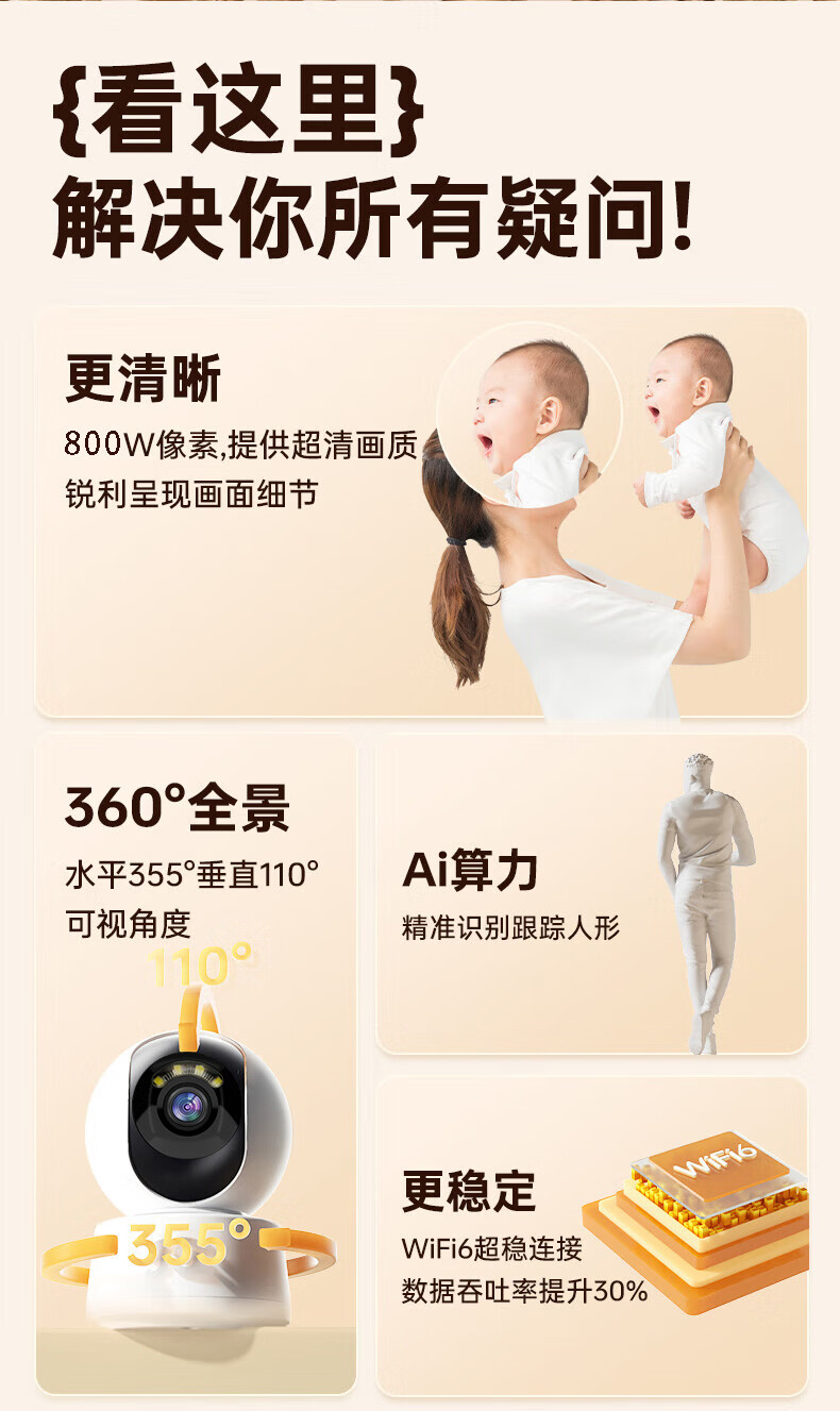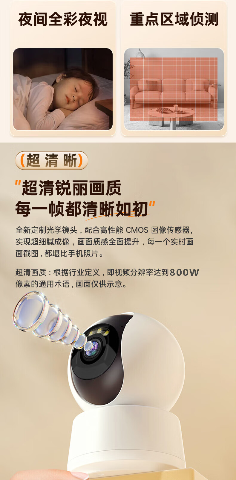 Tongyao caméra de surveillance à domicile intelligente AI 800 W ultra-haute définition surveillance de conversation à distance téléphone portable wifi moniteur intérieur à domicile 360 ​​degrés sans angles morts avec vision nocturne version standard + 5 millions + 30 jours d'enregistrement en boucle