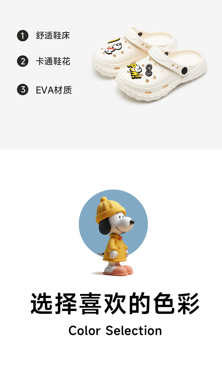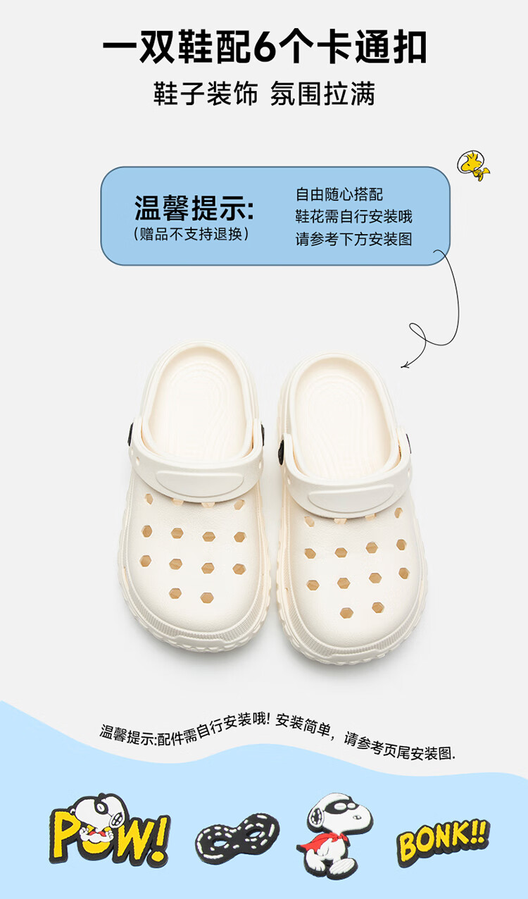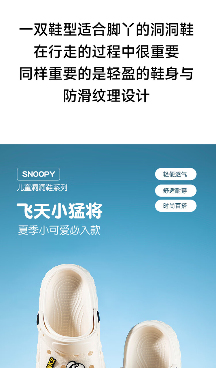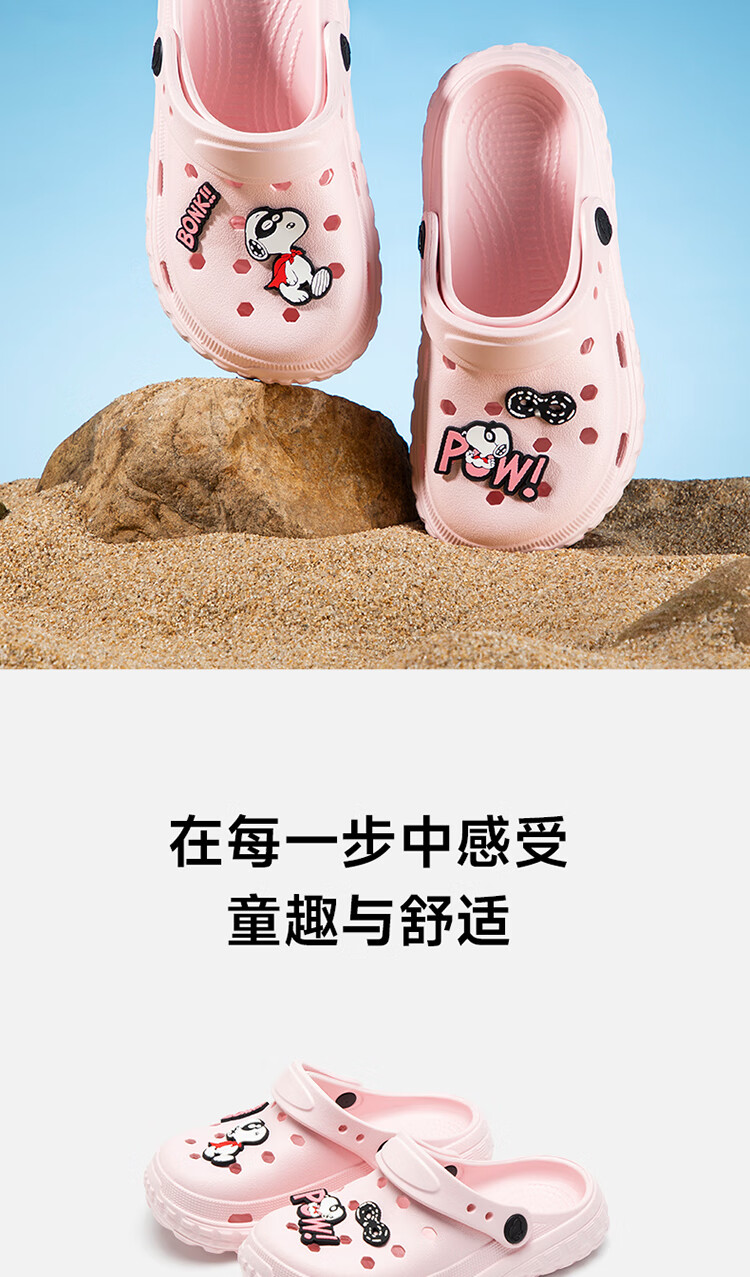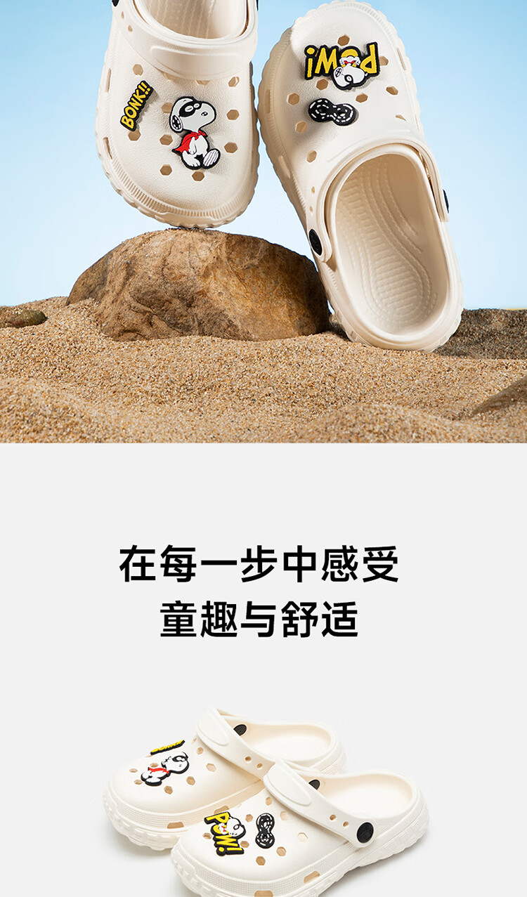 史努比(SNOOPY)儿童涉水沙滩鞋户外两用洞洞鞋女童夏款防滑软底凉拖鞋男童 米色【升级版】 30 内长约20参考脚长19cm