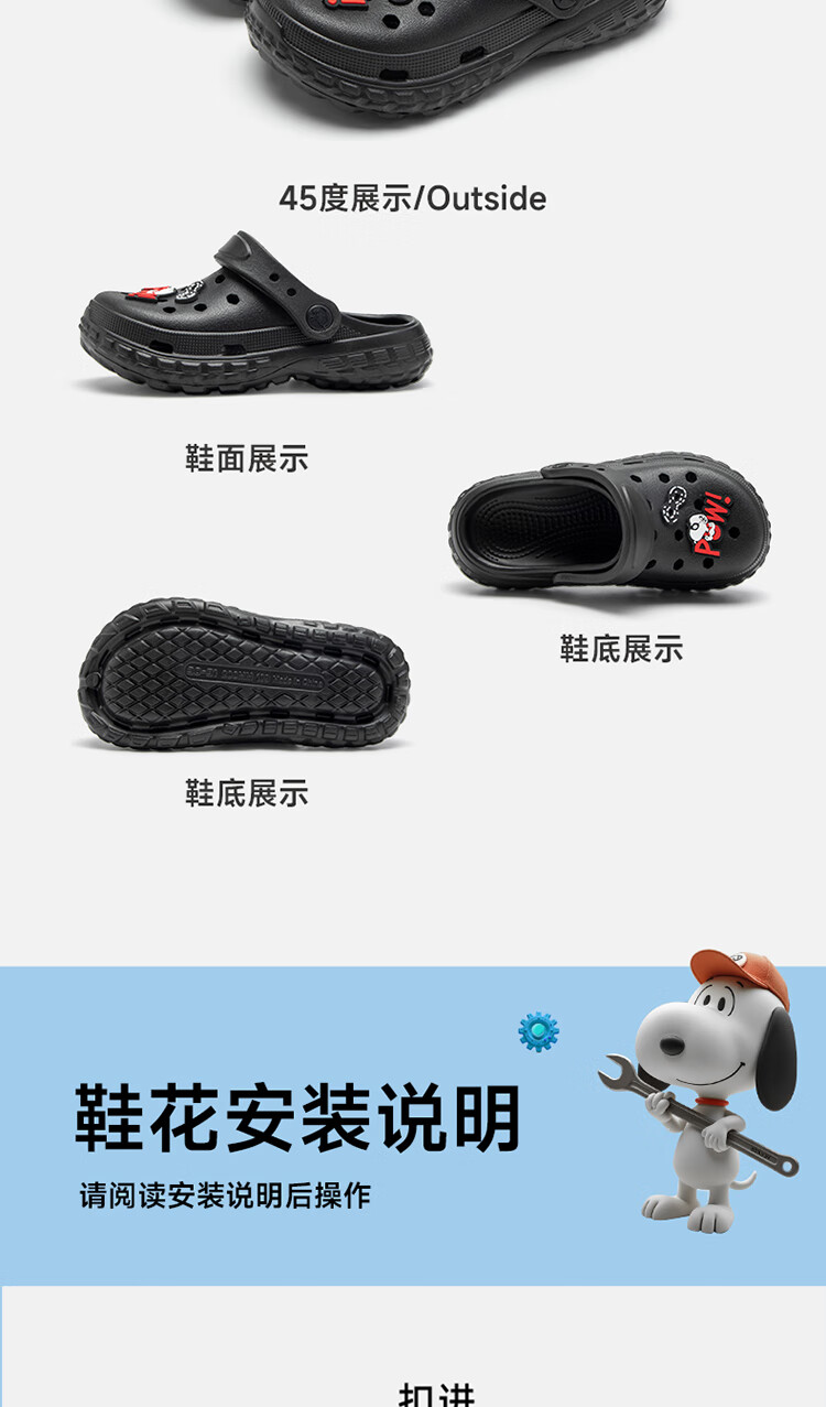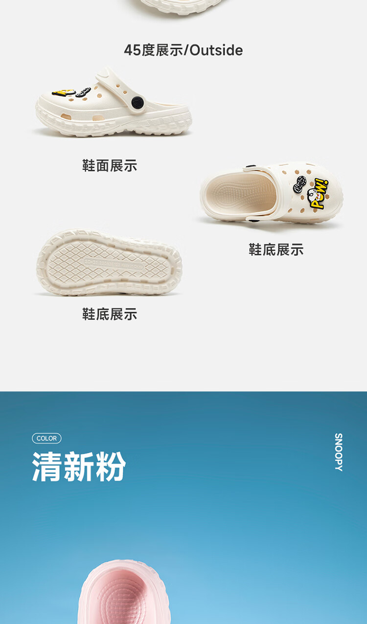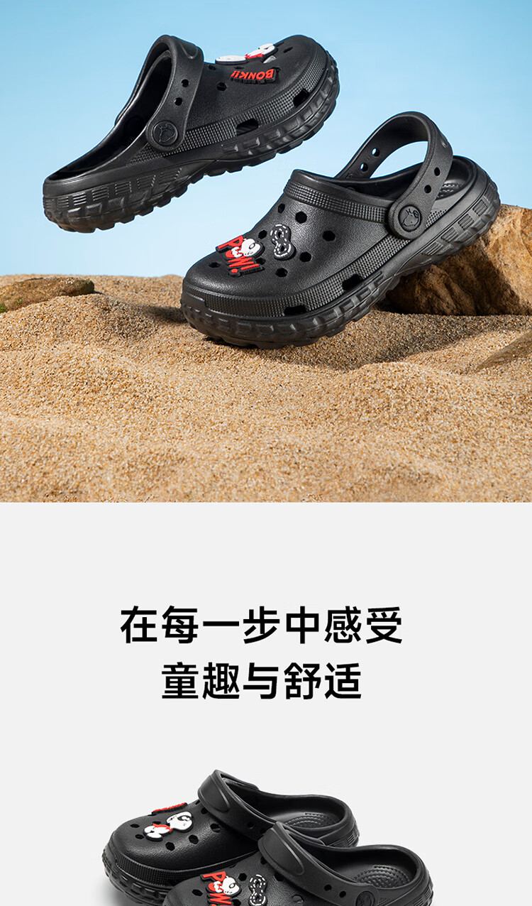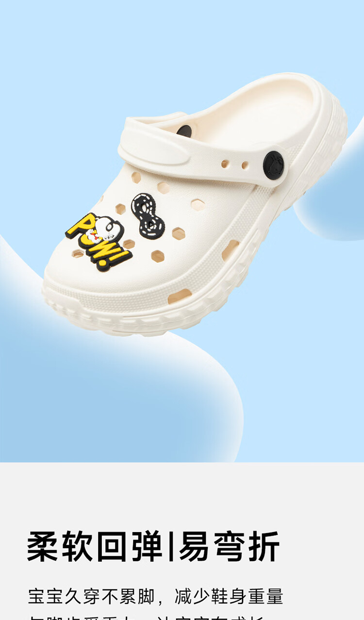 史努比(SNOOPY)儿童涉水沙滩鞋户外两用洞洞鞋女童夏款防滑软底凉拖鞋男童 米色【升级版】 30 内长约20参考脚长19cm