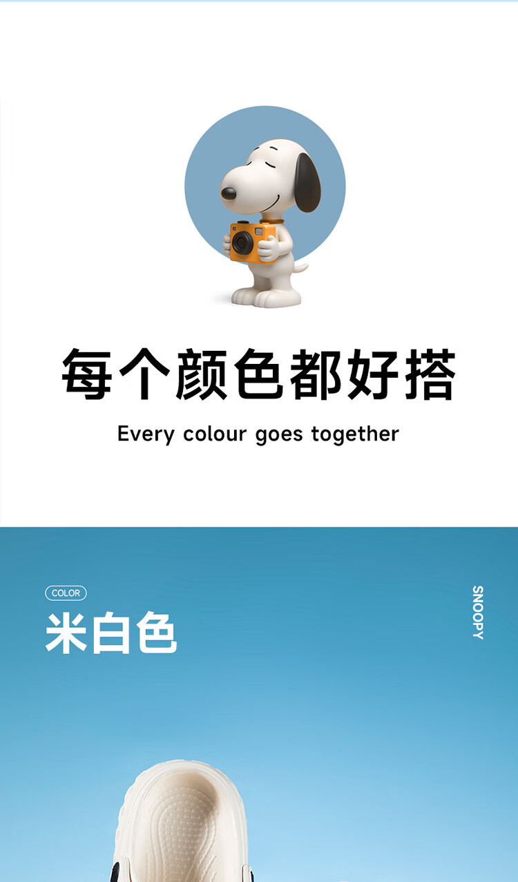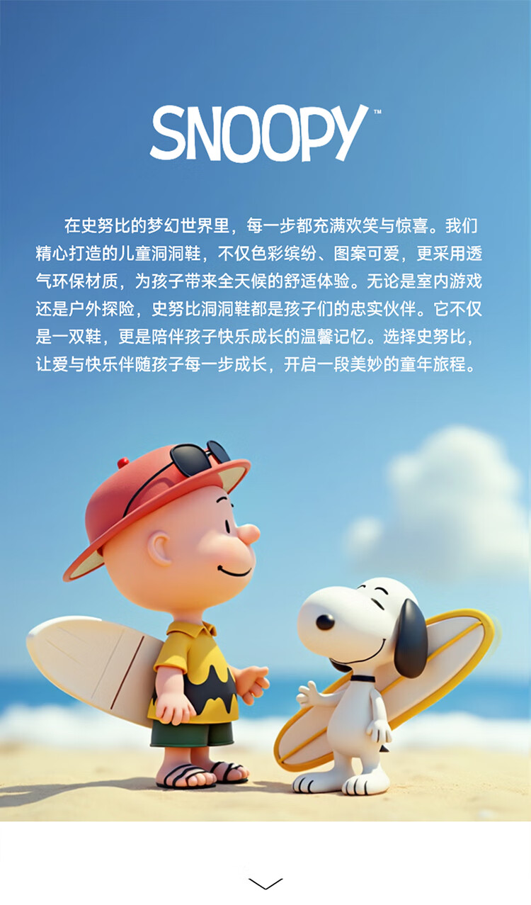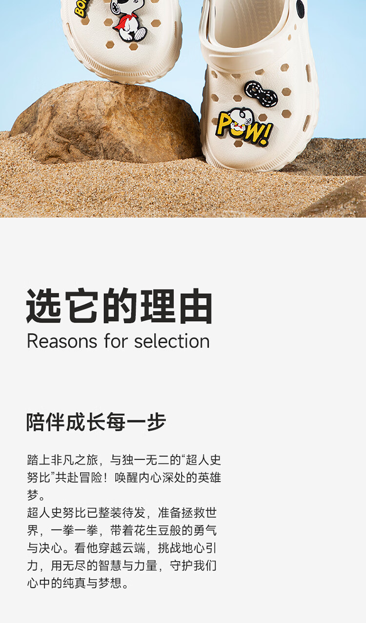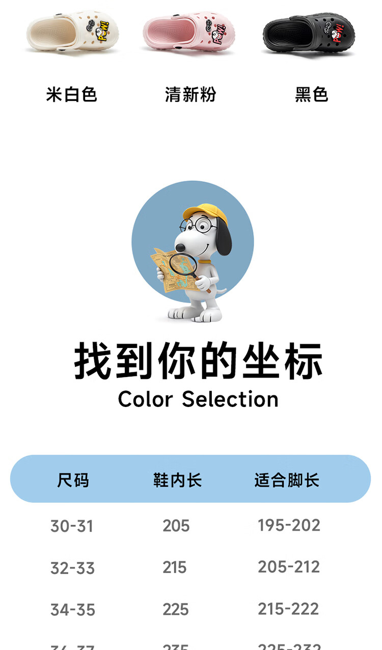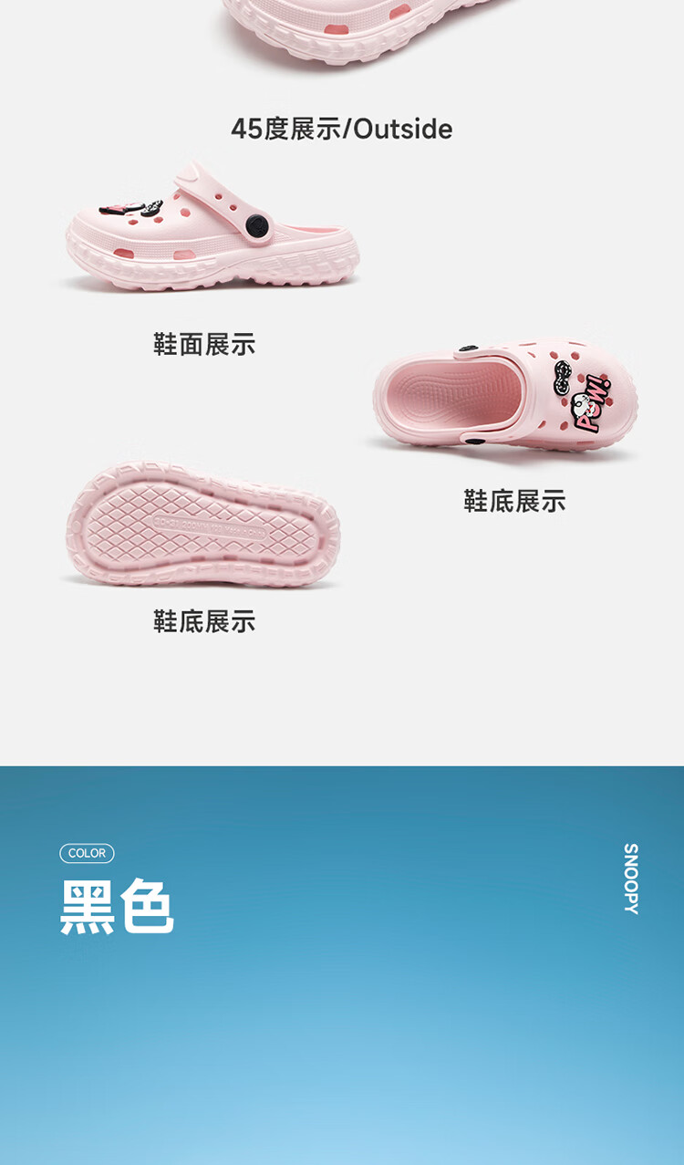 史努比(SNOOPY)儿童涉水沙滩鞋户外两用洞洞鞋女童夏款防滑软底凉拖鞋男童 米色【升级版】 30 内长约20参考脚长19cm