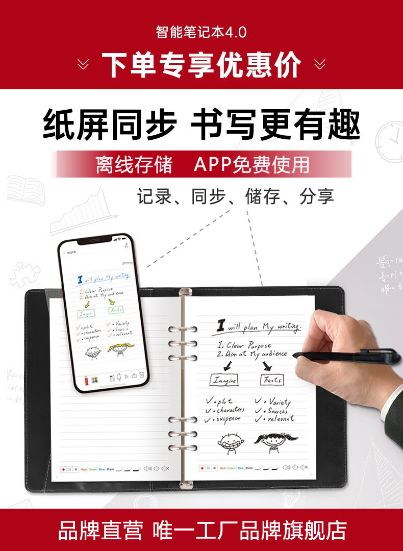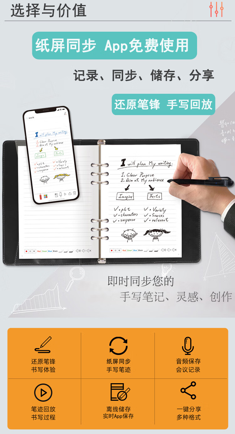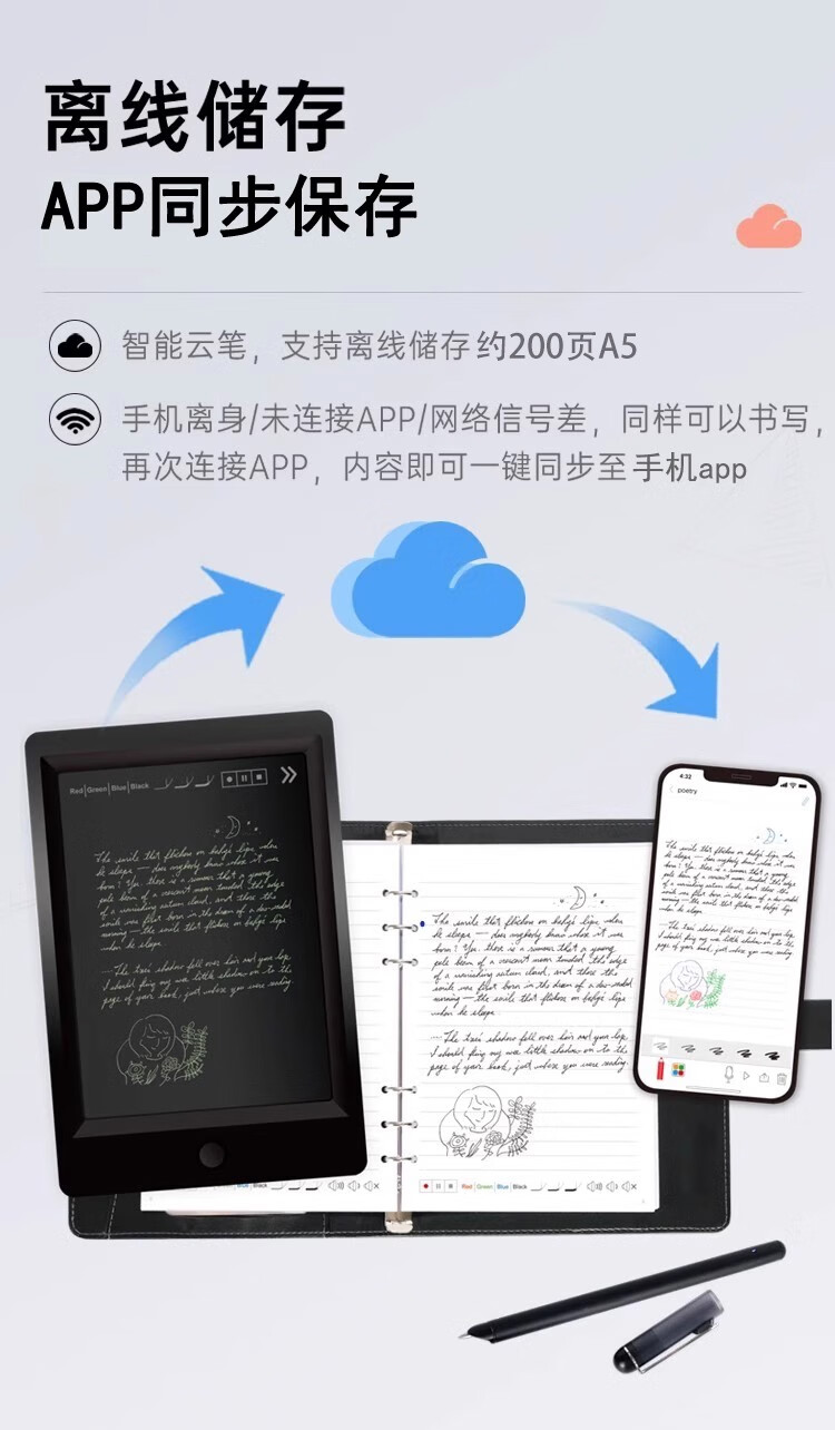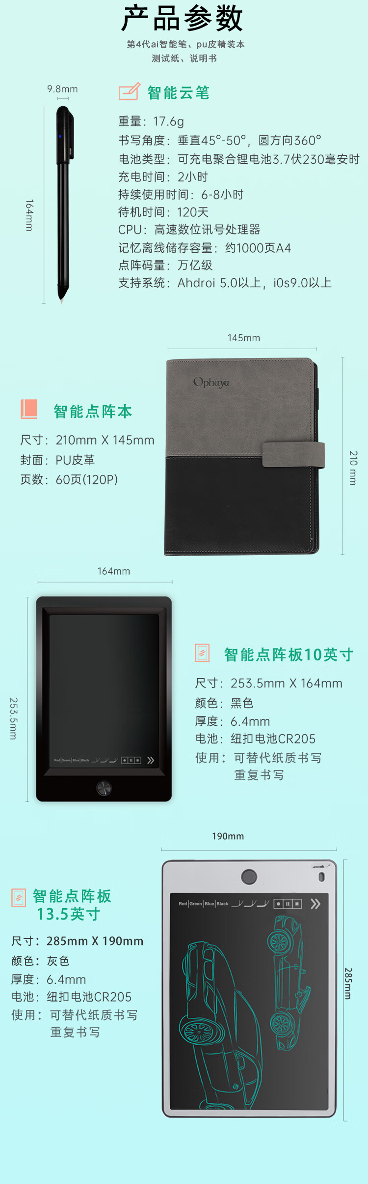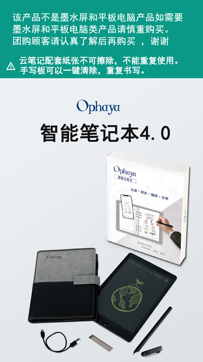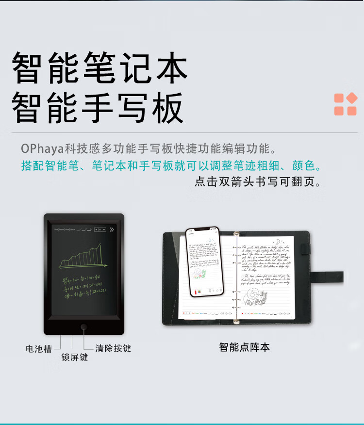 乐发芽Ophaya电子笔记本手写syncpen智能笔纸屏同步手写板商务办公会议记事本可存储记录日记本创意礼品 旗舰款礼盒装【智能笔+点阵笔记本+手写板】国际版