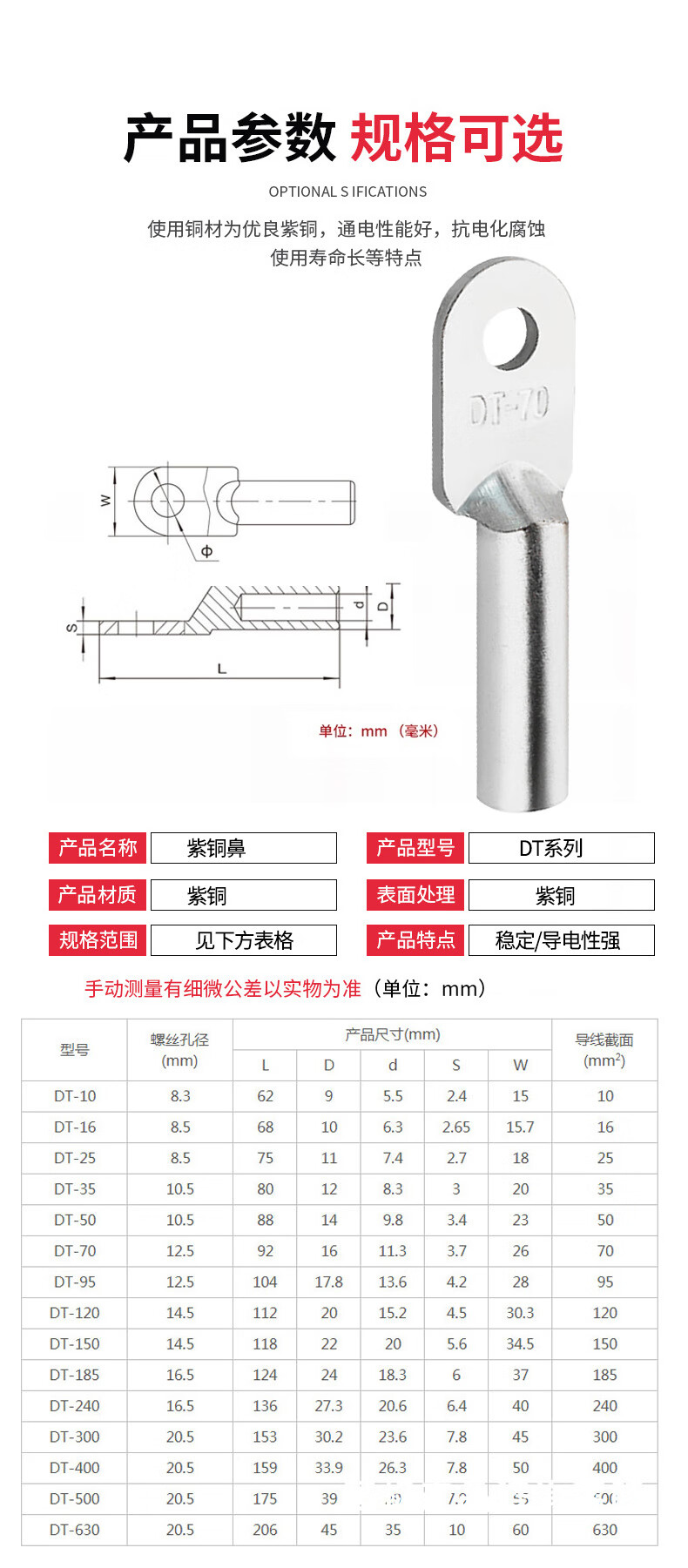Fil standard bouchon d'huile DT norme nationale fil de nez en cuivre et accessoires de câble nez en cuivre étamé fil de cuivre oreille DT-25 carré