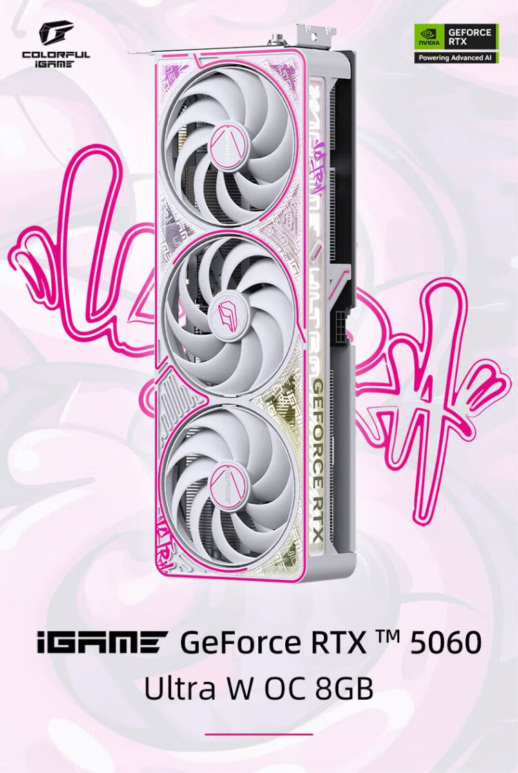 Carte graphique de jeu colorée iGame RTX5060 AD/Ultra/Tomahawk, assemblage de bureau, ordinateur de bureau, puissance de calcul IA, rendu de conception, carte graphique indépendante GDDR7 RTX5060 Ultra W DUO OC 8G