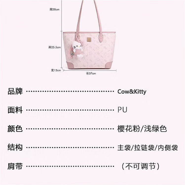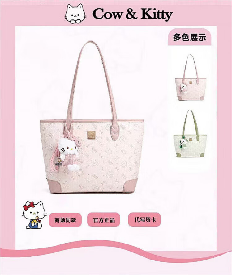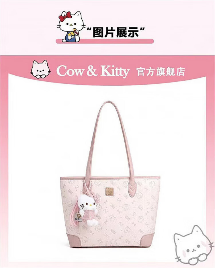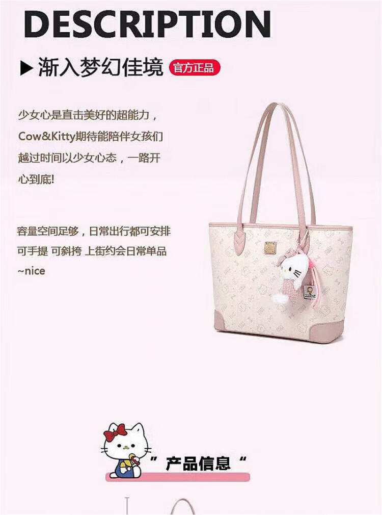 COW&KITTY正品KT猫2025新款学生女士单肩包斜挎包大容量女士旅游包生日礼物 粉色送挂件礼盒 37-12-25.5