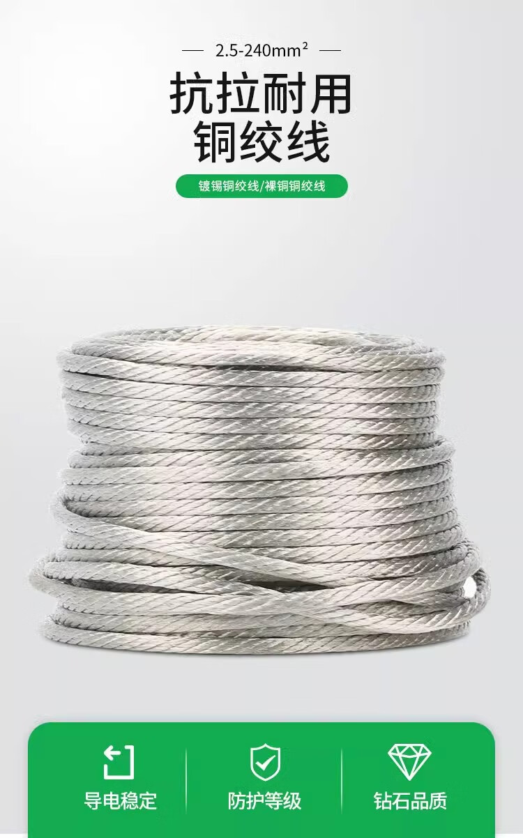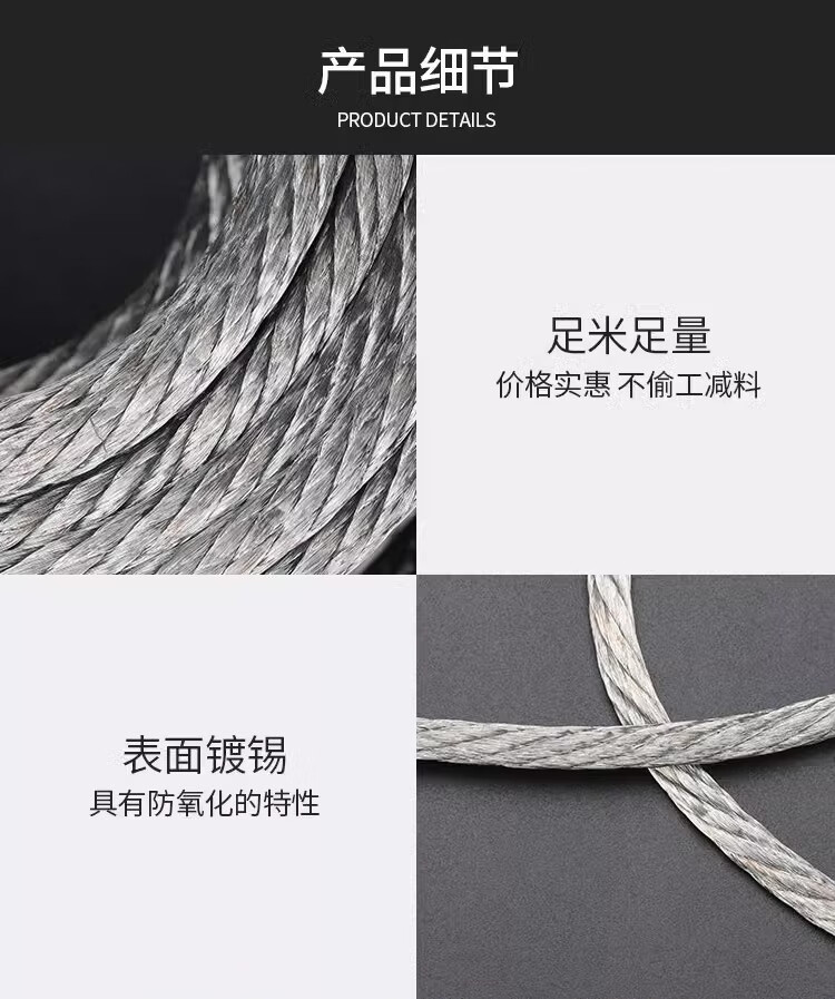 Fil toronné en cuivre standard national 1,5-240 mètres carrés de ruban tressé en cuivre fil de mise à la terre fil de cuivre souple reliant le ruban conducteur 10 mètres de fil toronné en cuivre en gros (1,5 mètres carrés) 1 mètre / échantillon