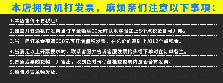 2)Les frais de port sont normalement facturés par tranche de 0,5KG. Donc, si vous achetez un produit qui ne pèse que 0,1KG, vous pourriez envisager d'acheter 2-3 PCS à la fois, ce qui n'ajoutera pas plus de frais de port à votre commande.