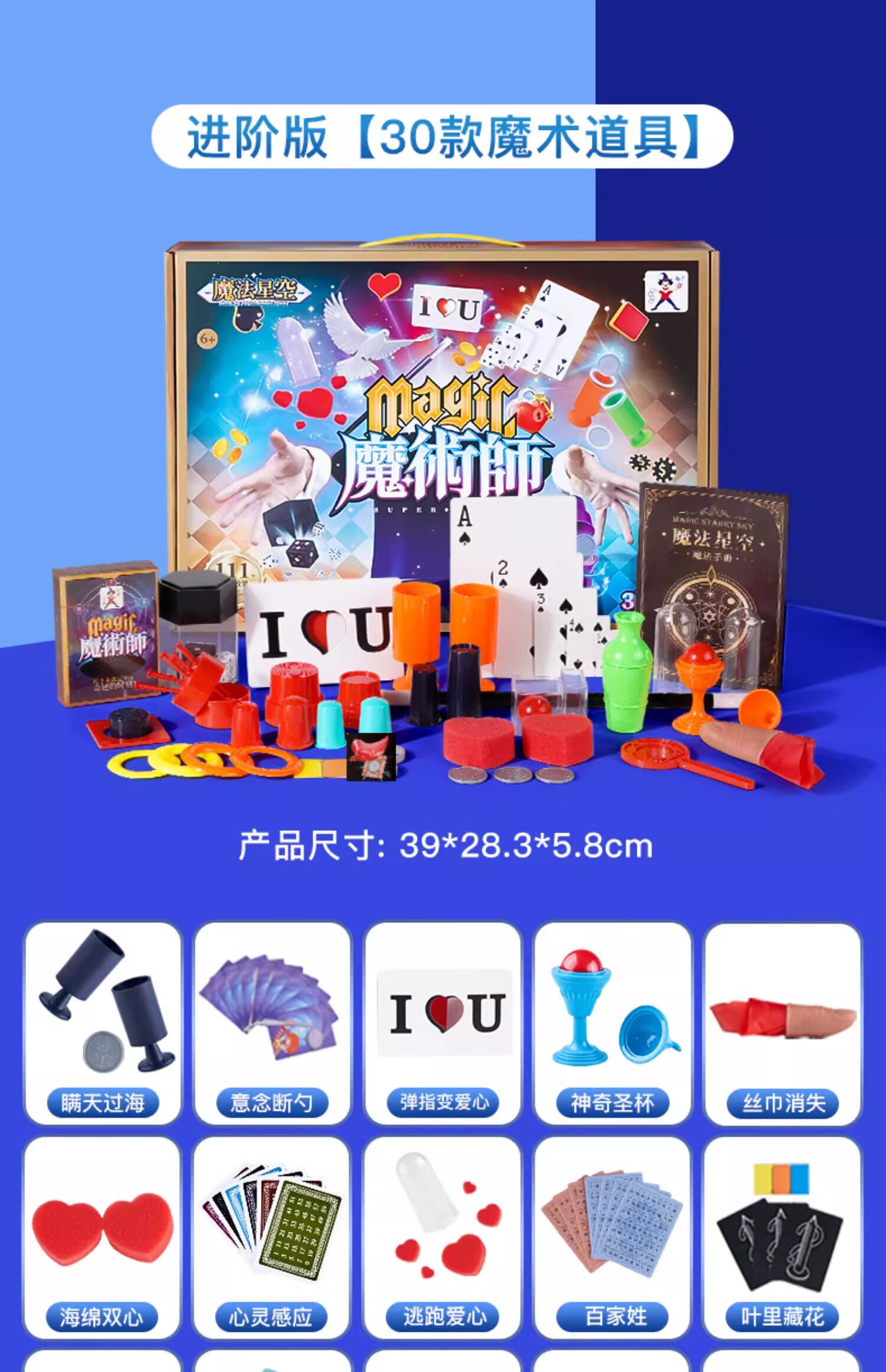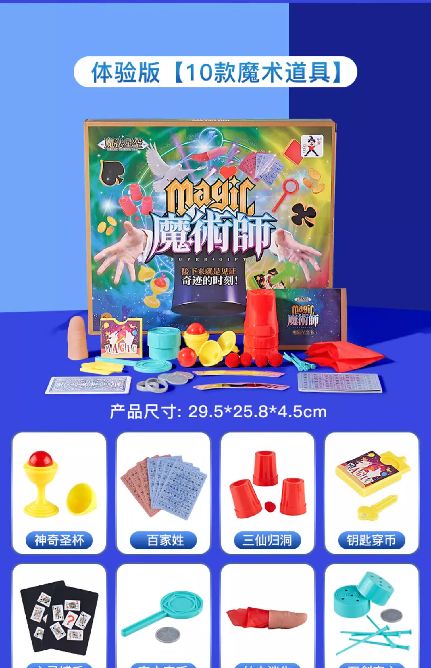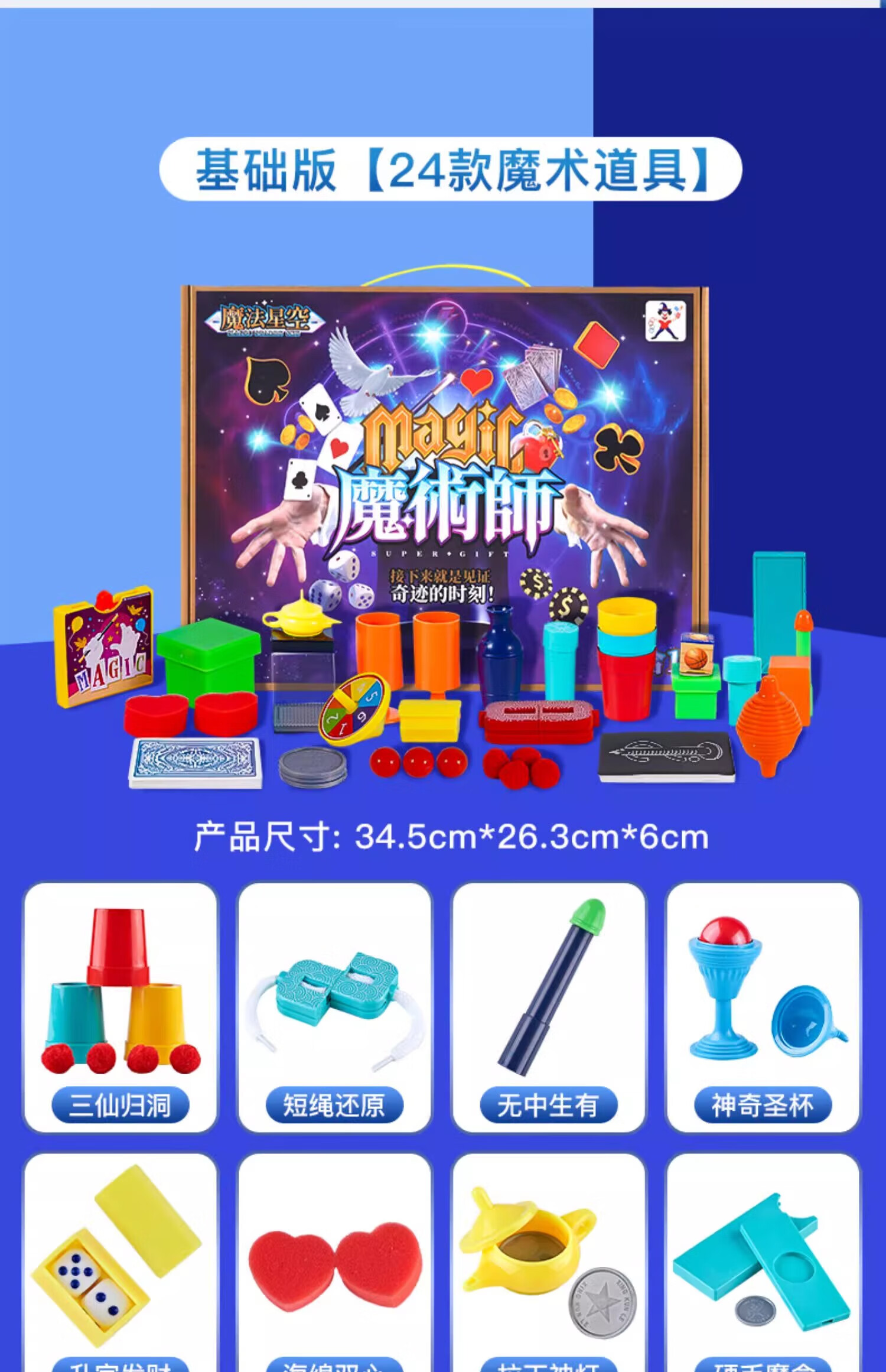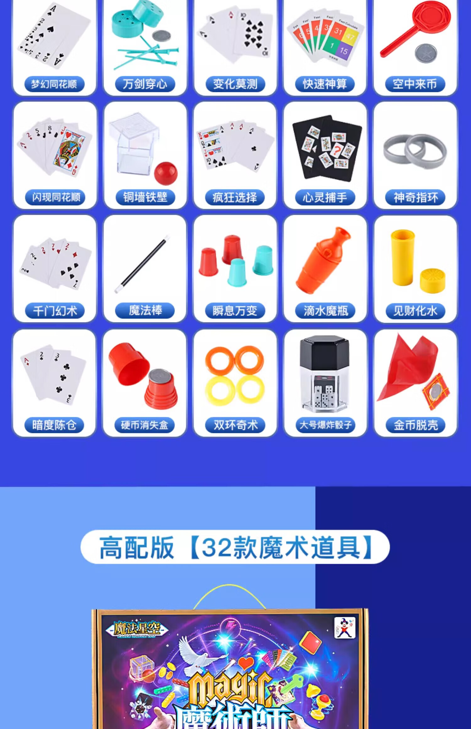 61儿童节魔术大礼盒魔法道具套装玩具魔术师盒扑克牌表演盒子 【26种魔术道具】030-74魔术盒 61儿童节表演套装魔术道具