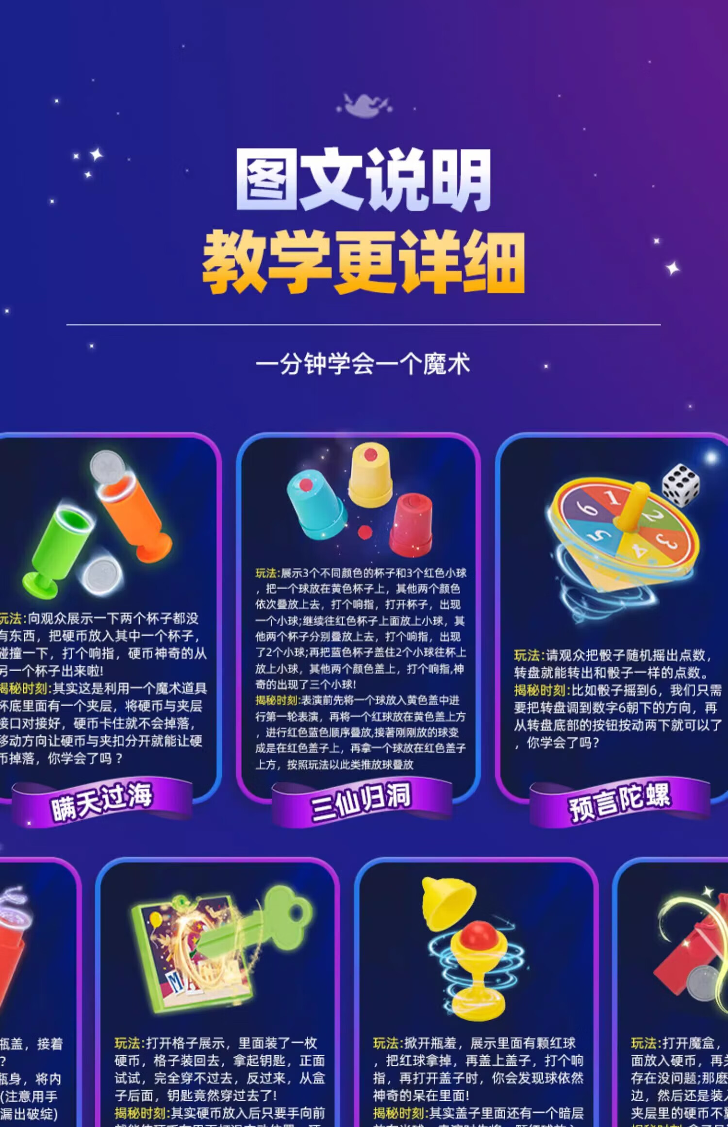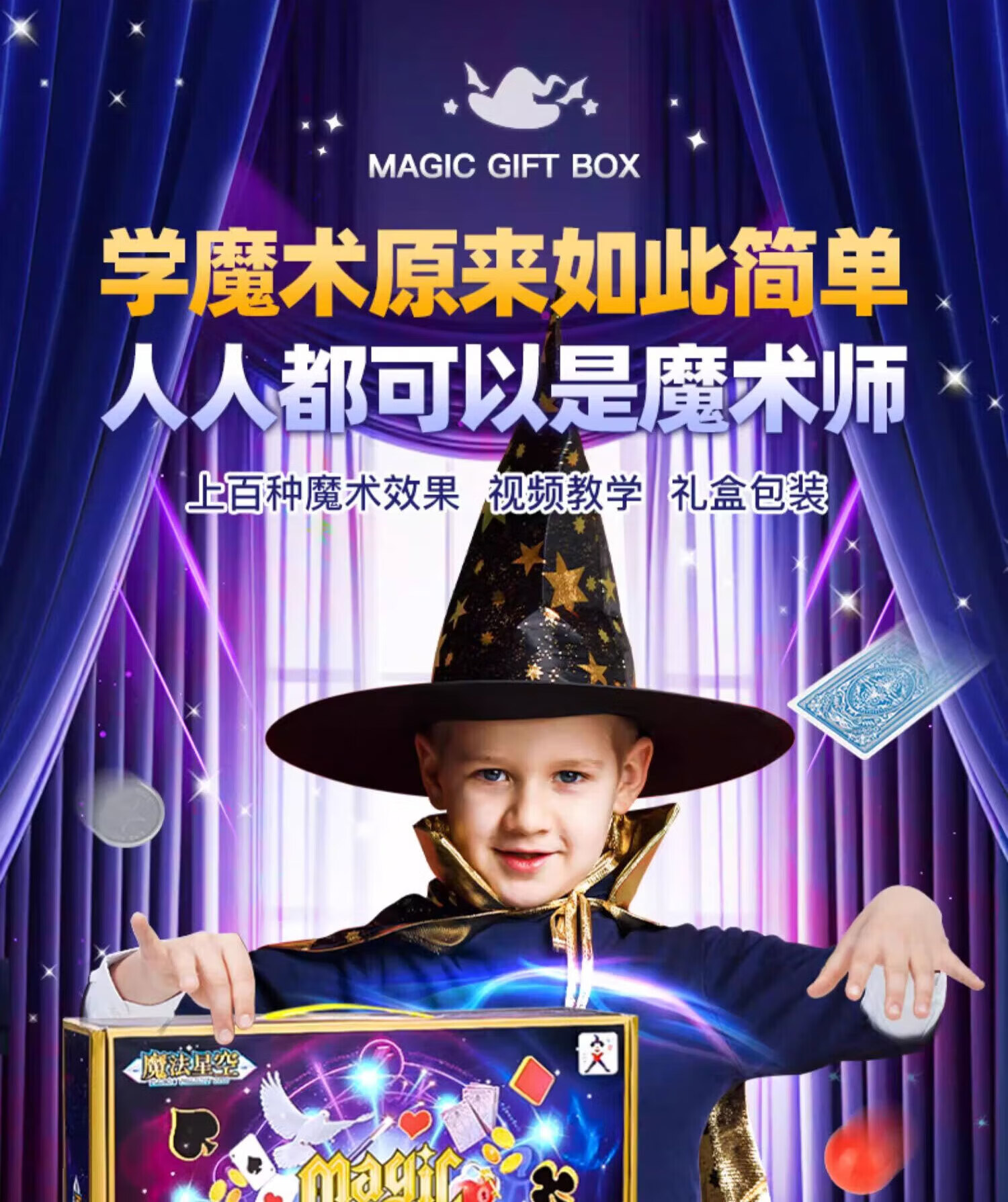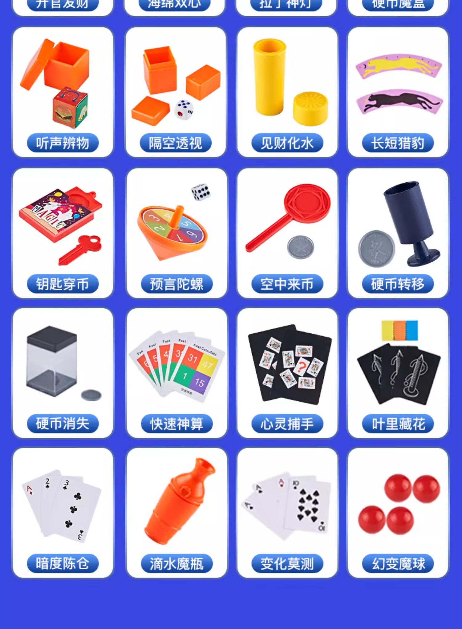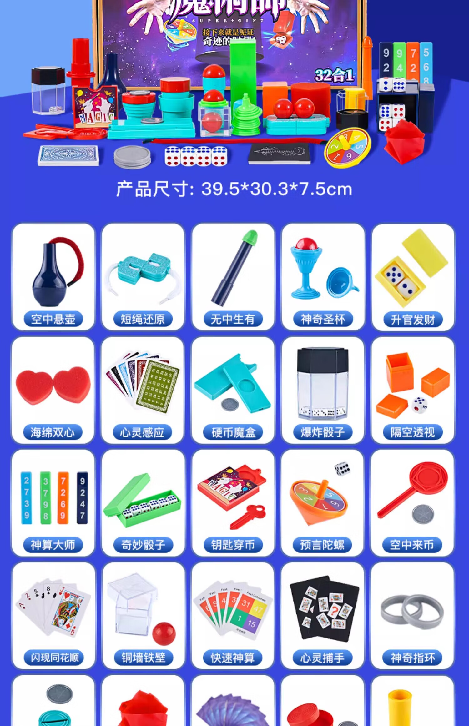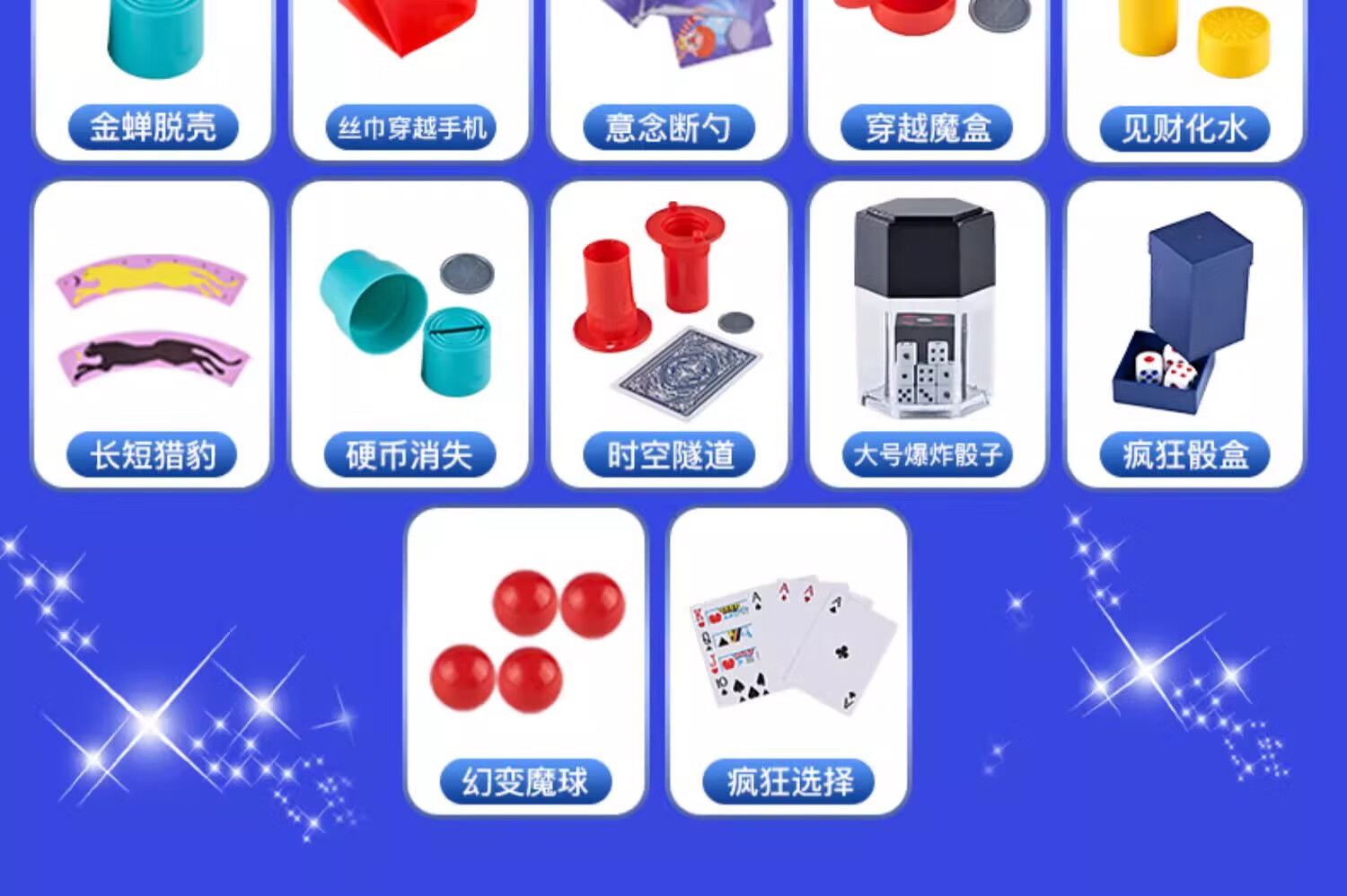 61儿童节魔术大礼盒魔法道具套装玩具魔术师盒扑克牌表演盒子 【26种魔术道具】030-74魔术盒 61儿童节表演套装魔术道具