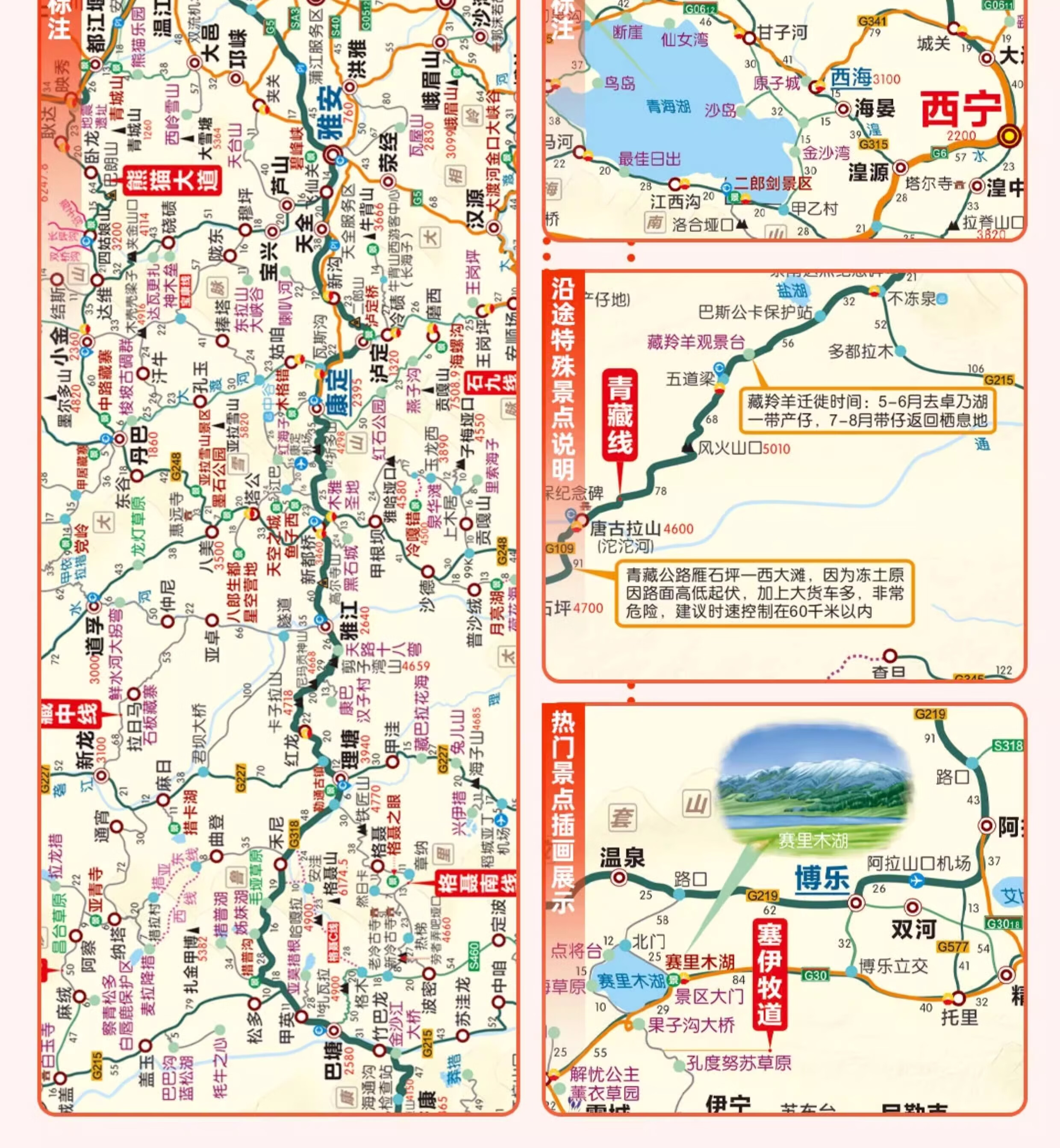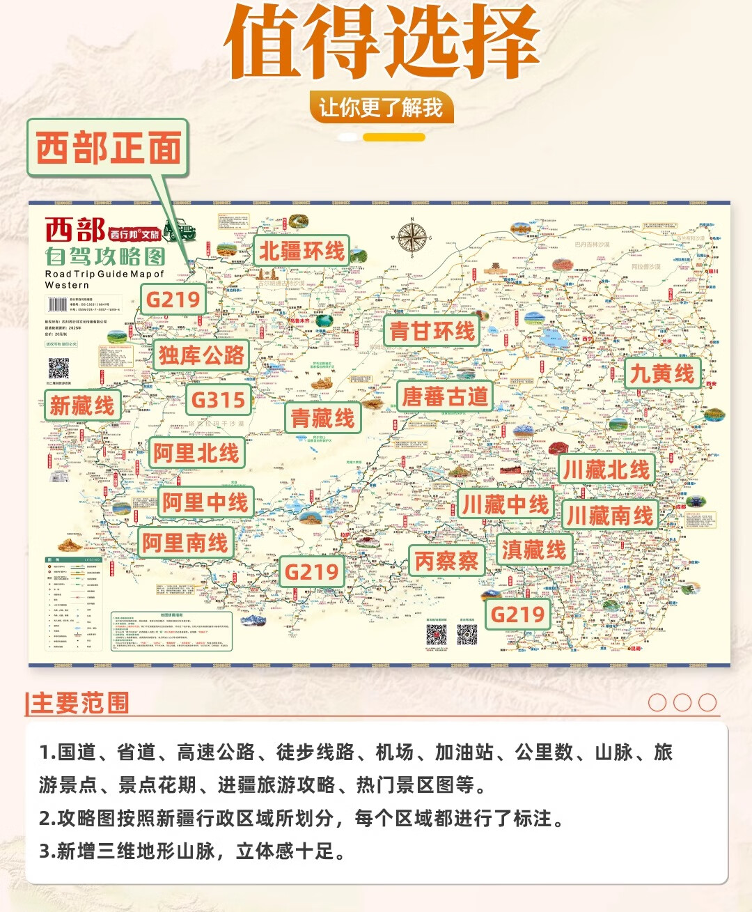 西部自驾攻略图2025版双面折叠图318川藏线219国道216国道丙察察线青藏线新藏线手绘地图