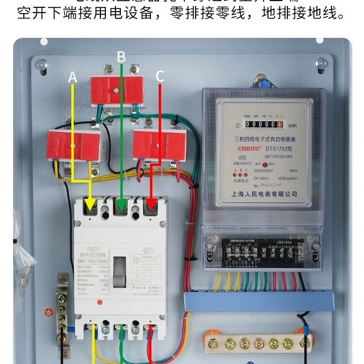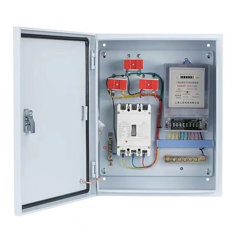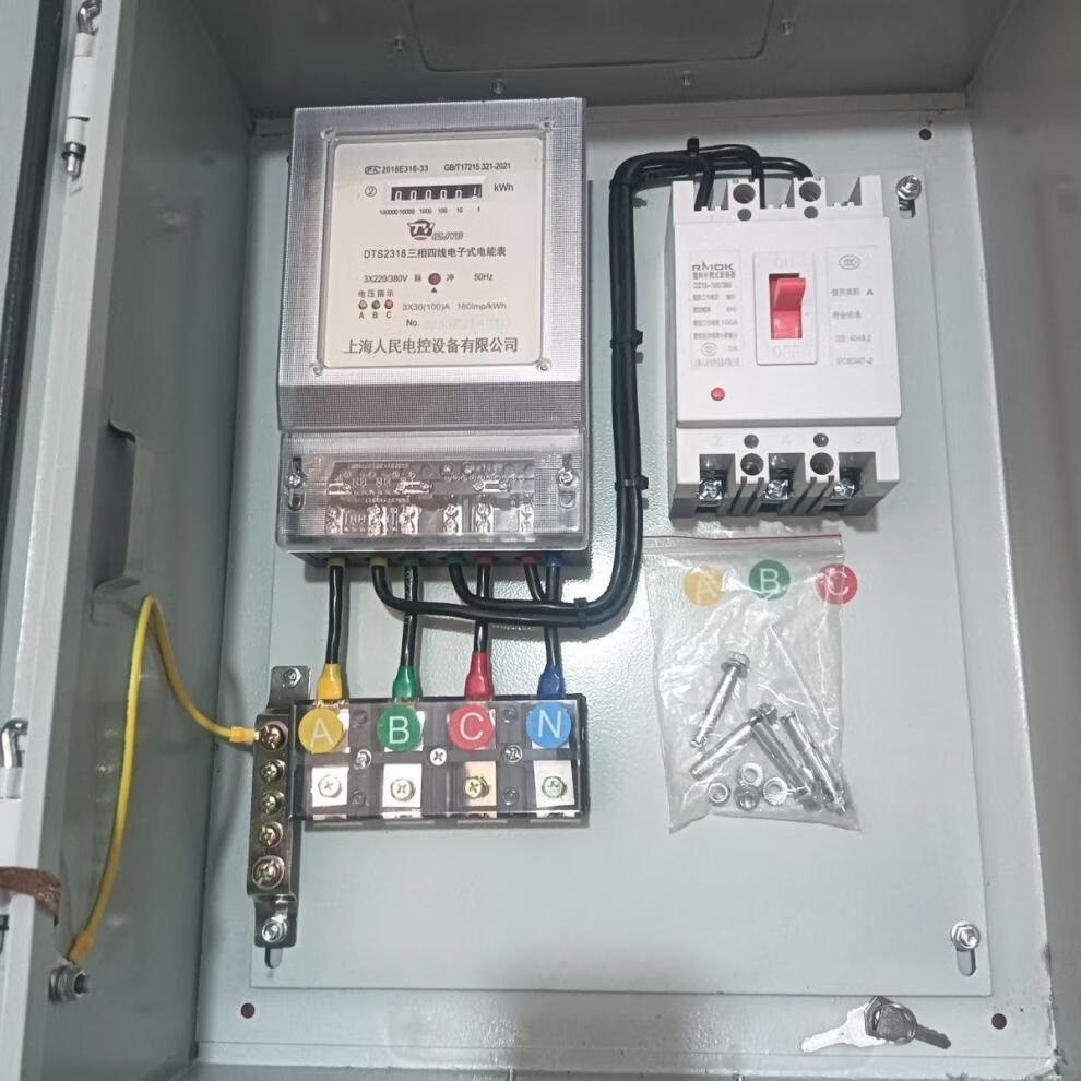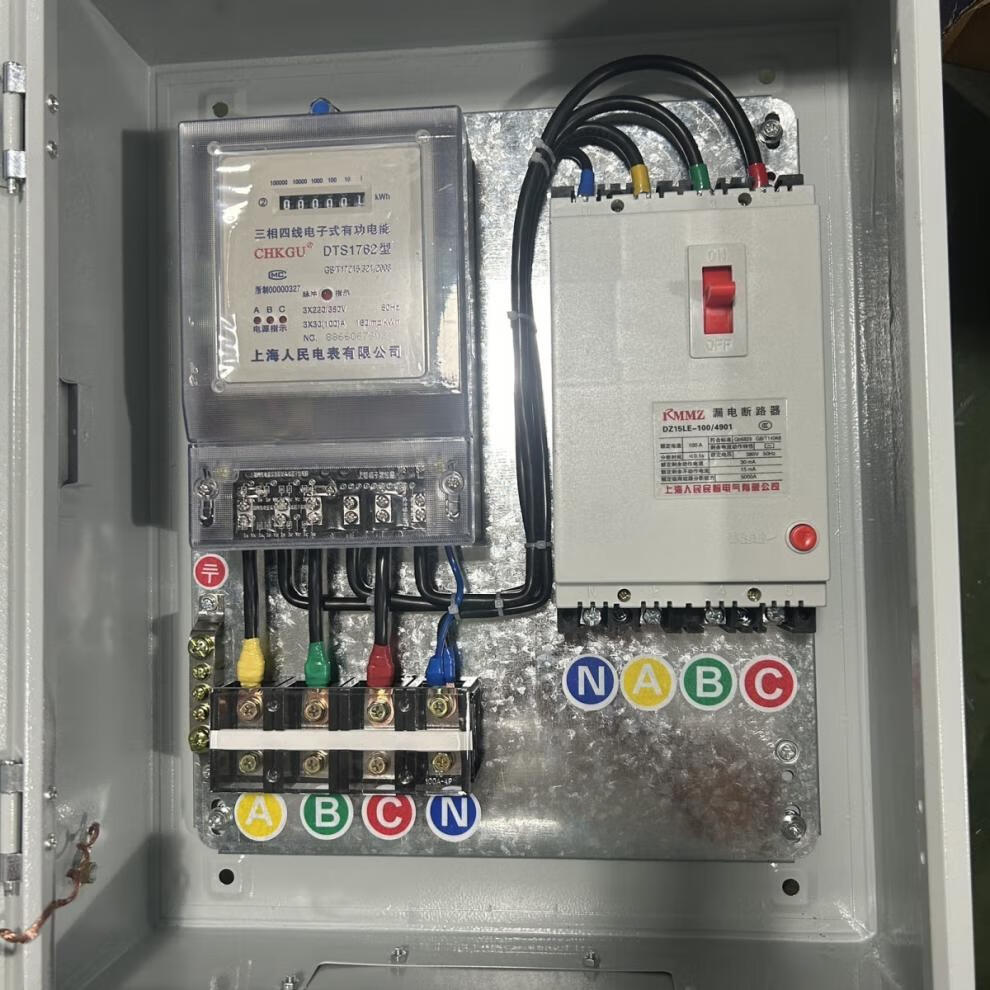 Трехфазная четырехпроводная коробка электросчетчика, полный комплект распределительной коробки, коробка учета электроэнергии с подключенными проводами 100А, коробка питания 380 В, подключенные провода 100 А с утечкой