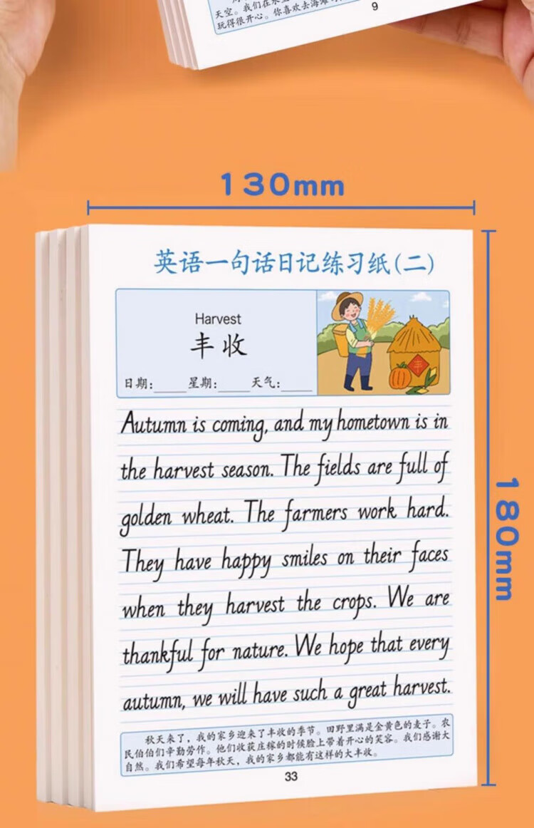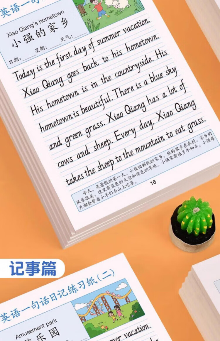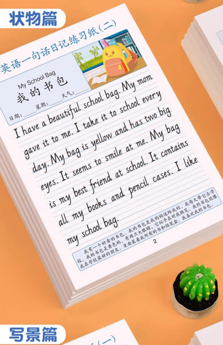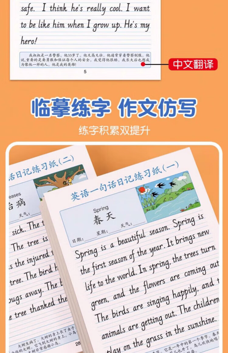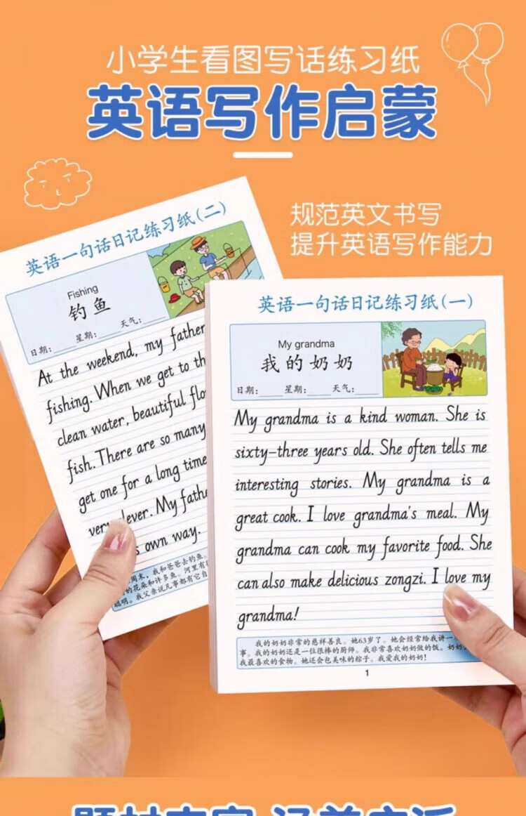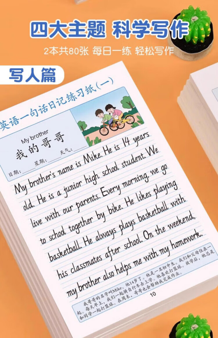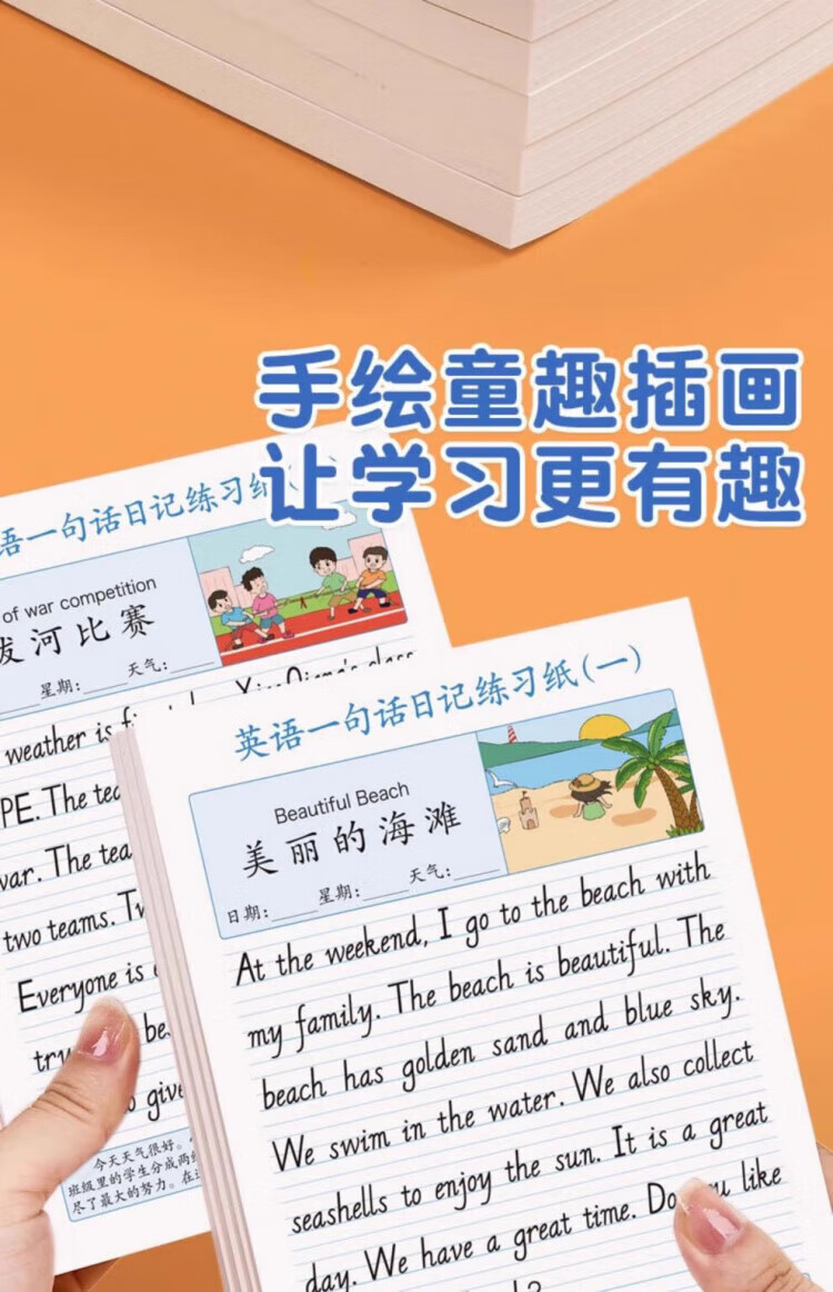 Maishuang English one-sentence diary practice paper, writing calligraphy practice copybook, daily practice for primary school students in grades 2, 3, 4 and 5, daily English reading pictures and writing training for children to improve their compositions, English one-sentence diary/1 book, 40 articles, 1 random book