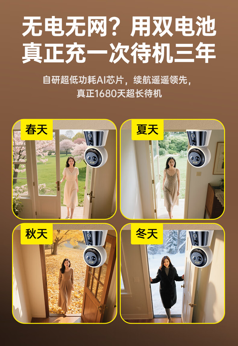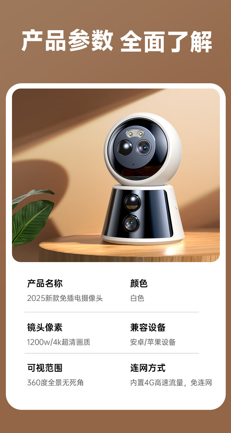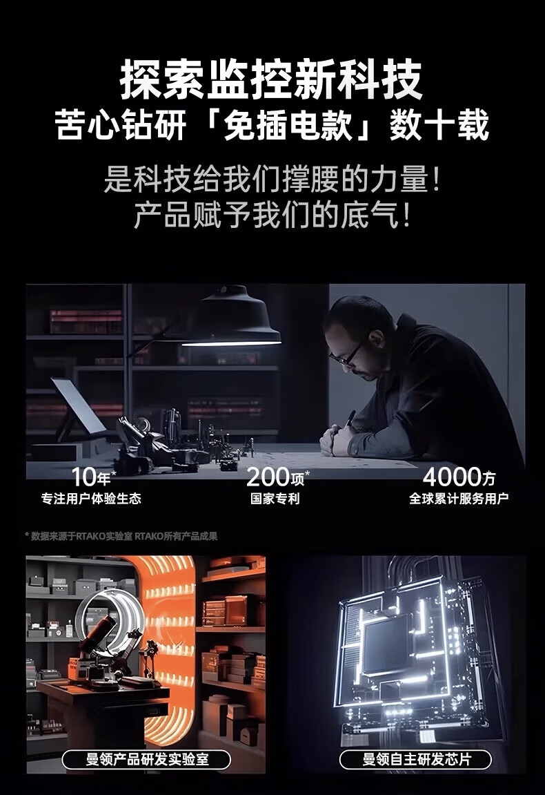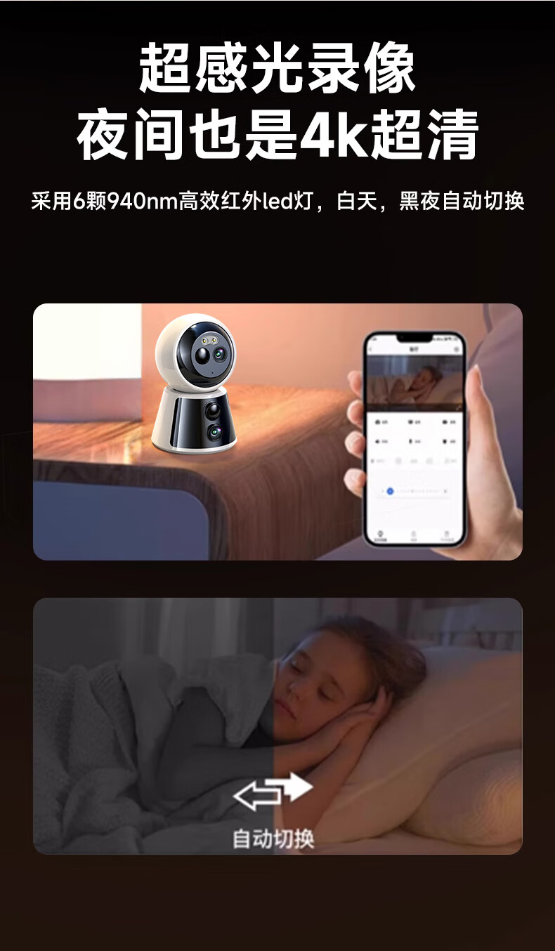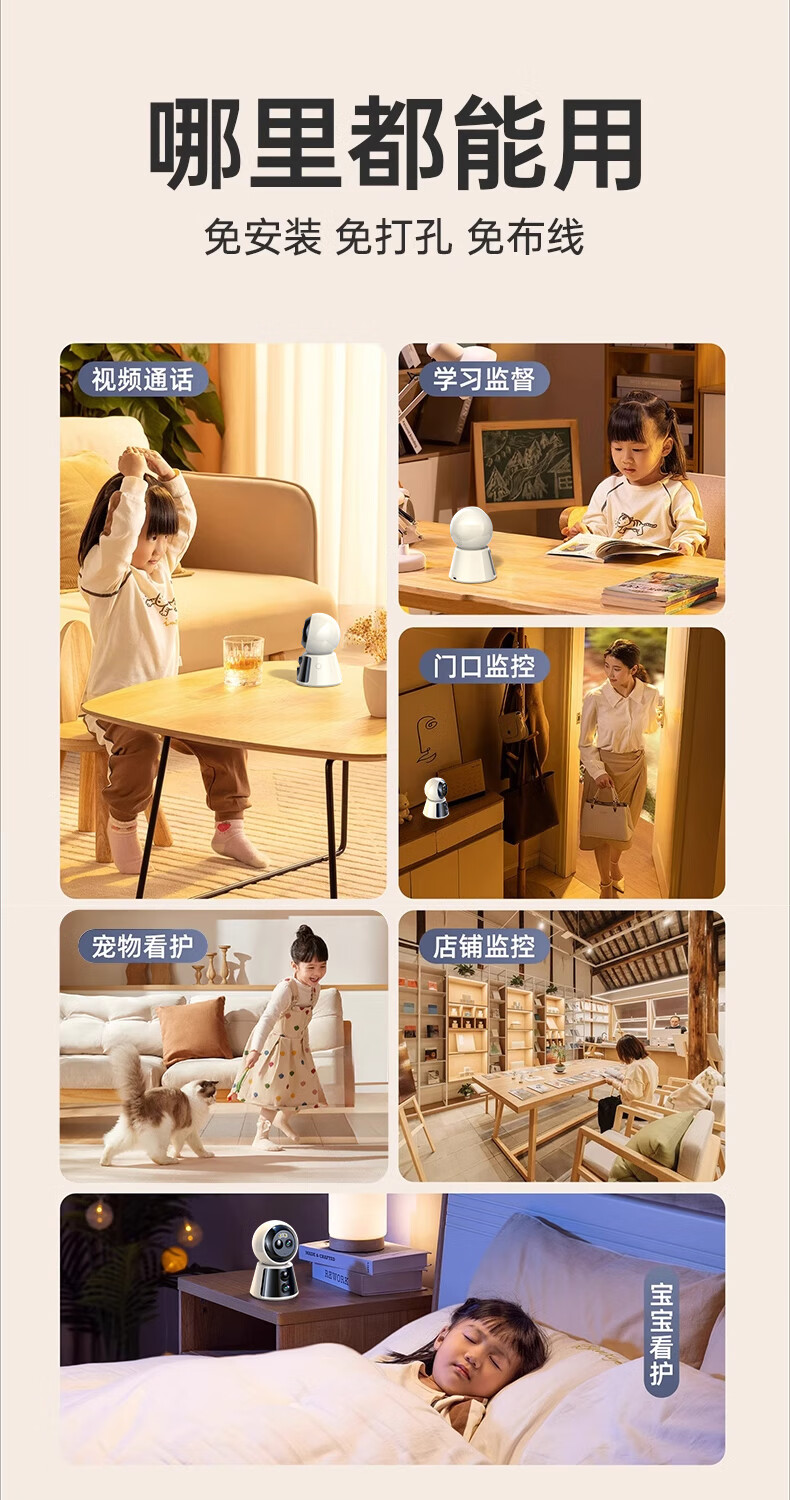 曼领【超清四摄】监控摄像头家用360度无死角带夜视无需连wifi终身免流量免插电手机远程室内看护对话 WiFi【超清四摄】4K双画面+AI无延迟 【30天循环录像】双向通话+人形追踪+日夜全彩 适用小米苹果华为荣耀vivoOPPO