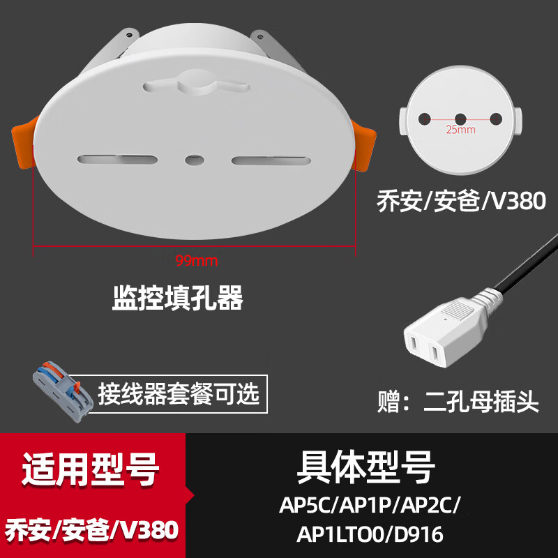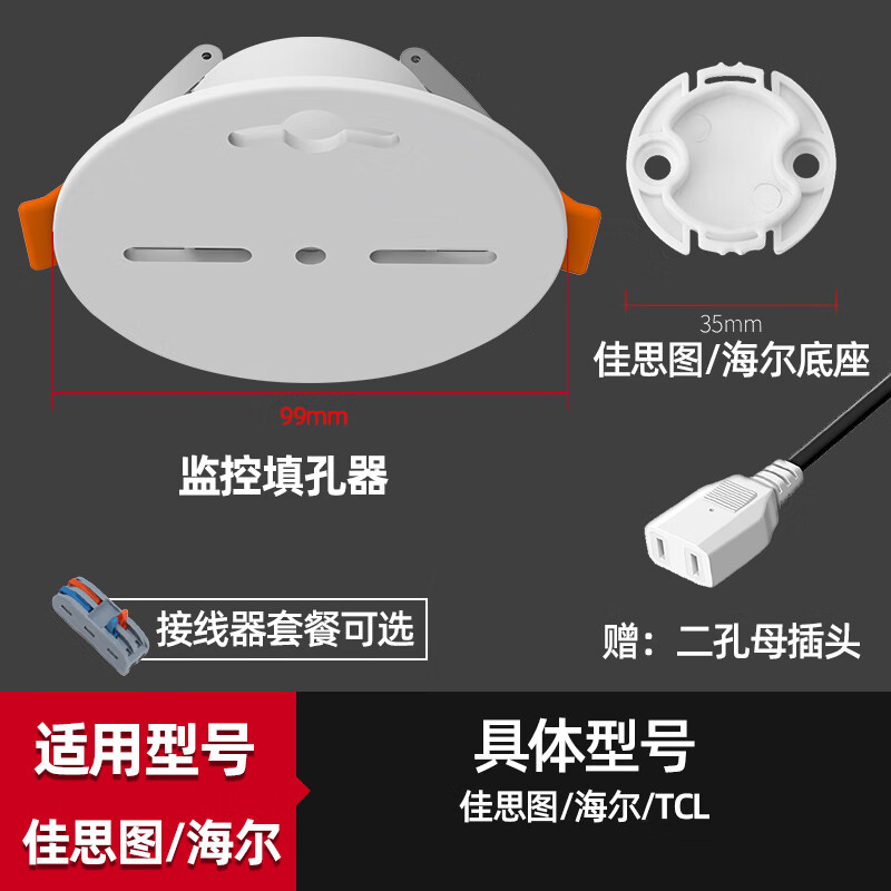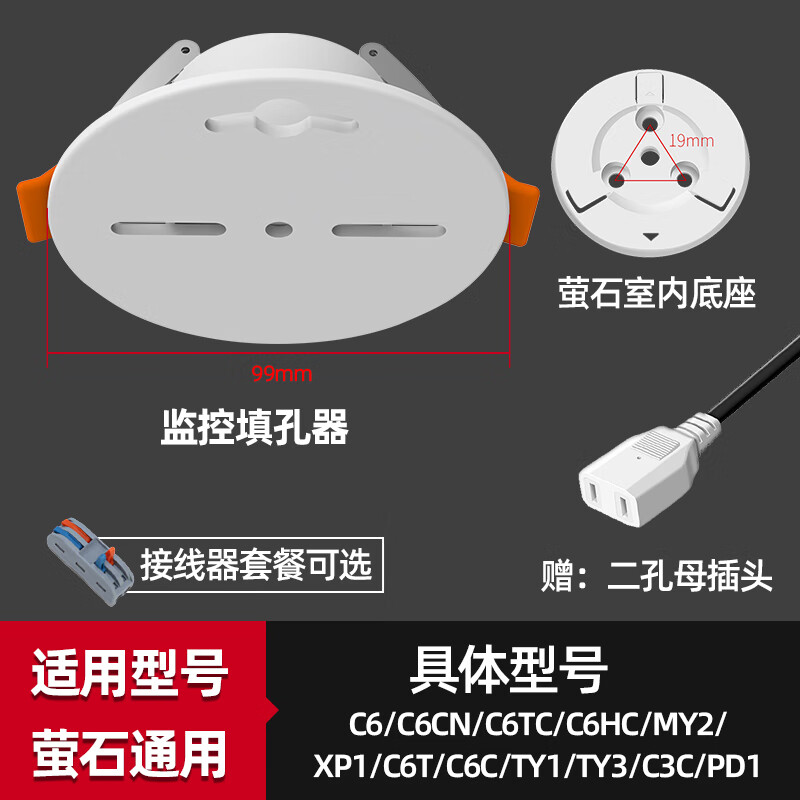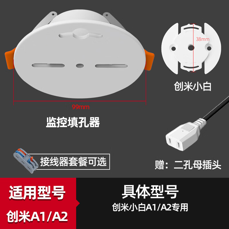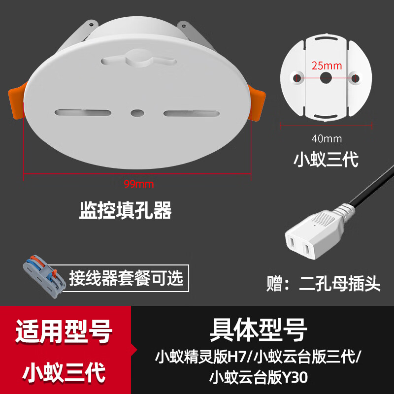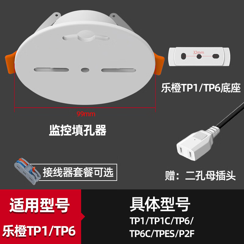 Camera surveillance ceiling downlight hole filler adapted to Xiaomi Fluorite Qiao Anle Orange flip-up buckle bracket base with opening 60-80mm Xiaomi PTZ version base + two-hole female plug + terminal