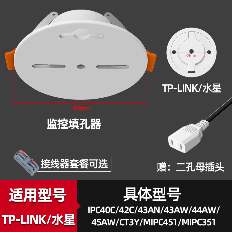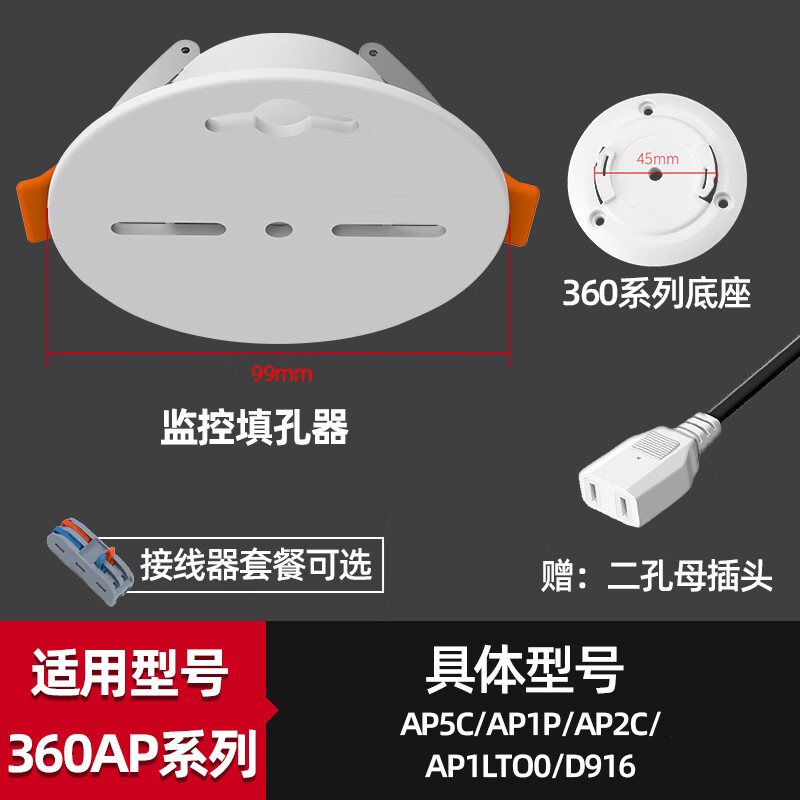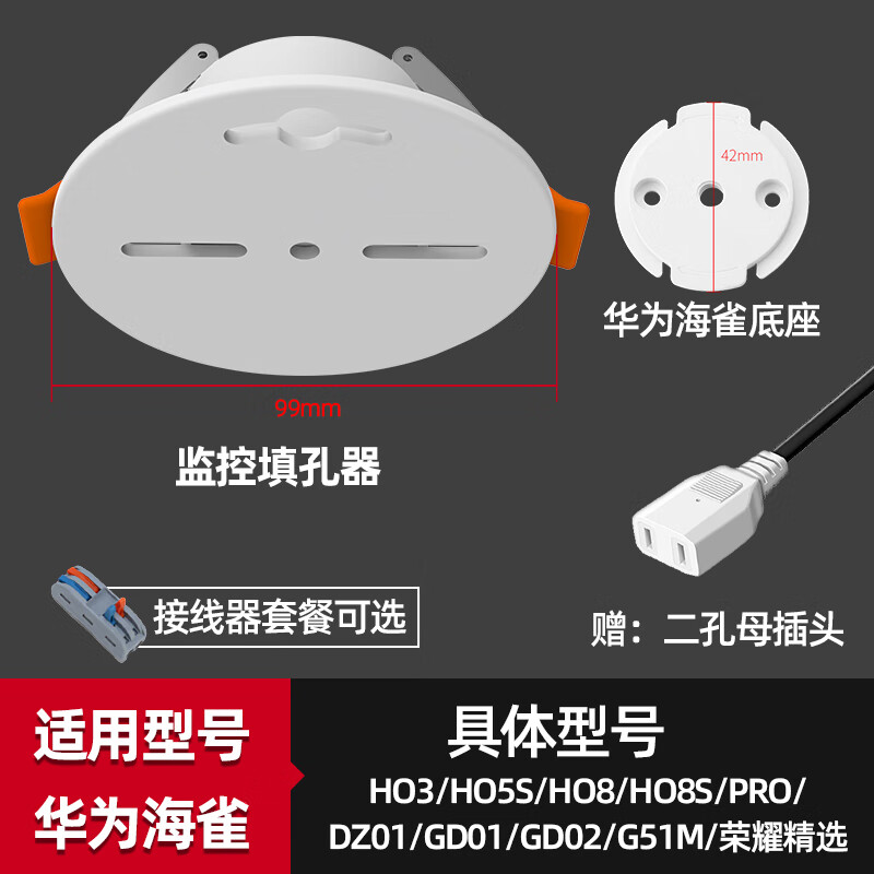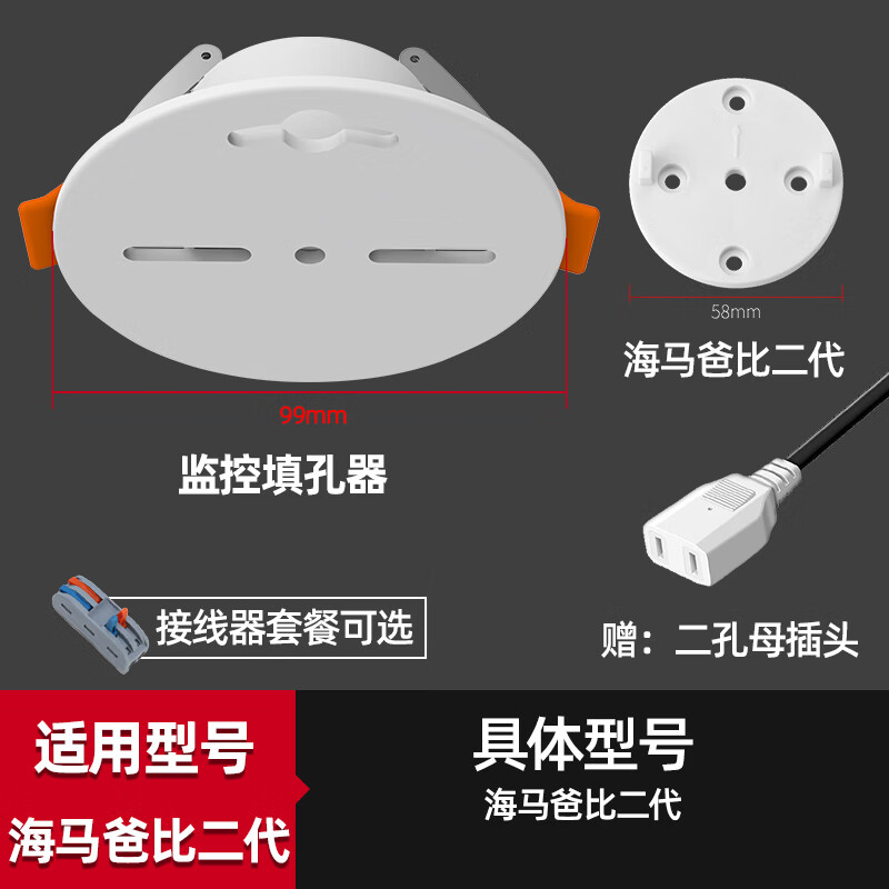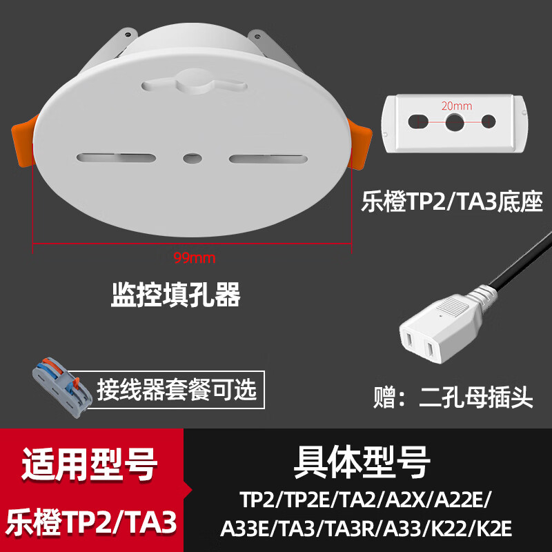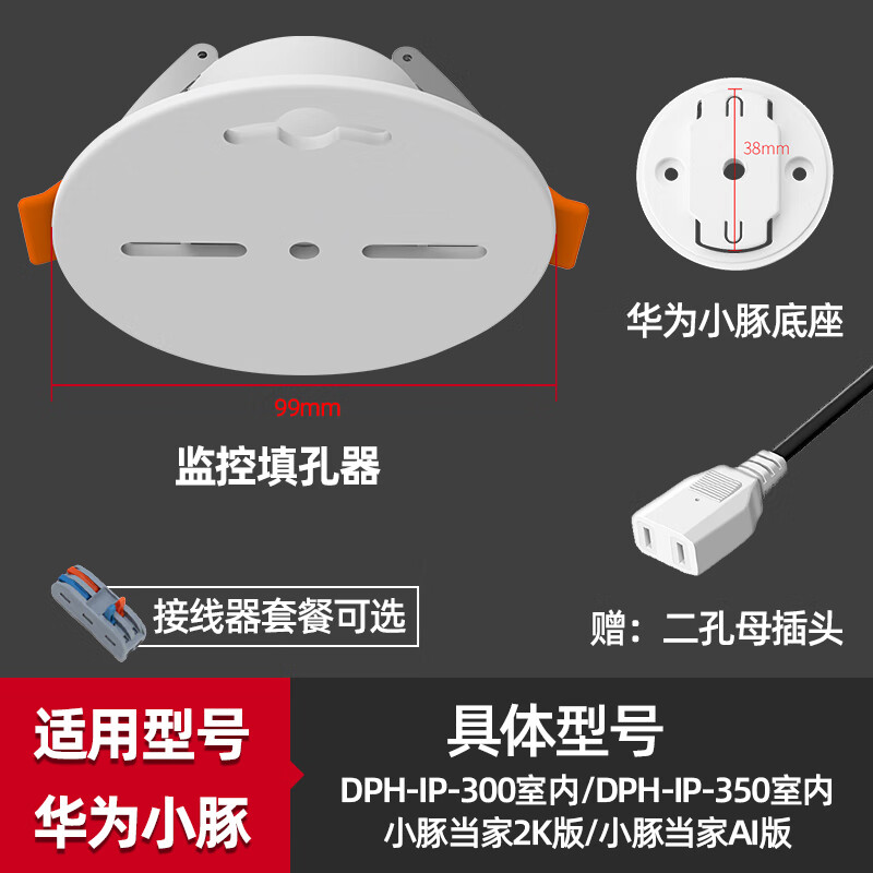 Camera surveillance ceiling downlight hole filler adapted to Xiaomi Fluorite Qiao Anle Orange flip-up buckle bracket base with opening 60-80mm Xiaomi PTZ version base + two-hole female plug + terminal