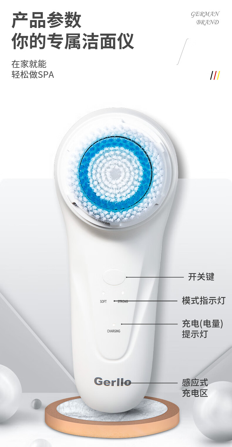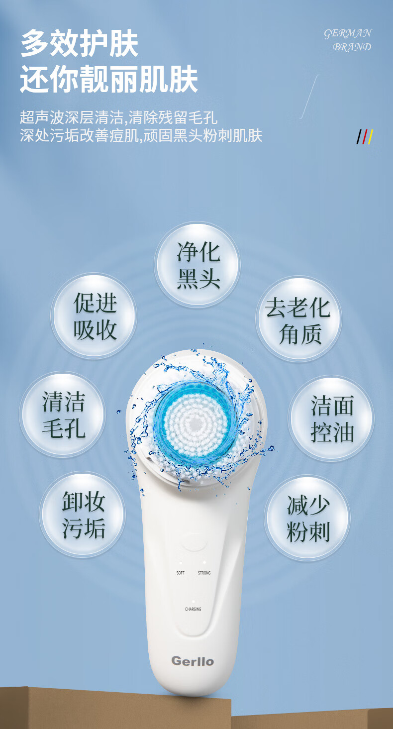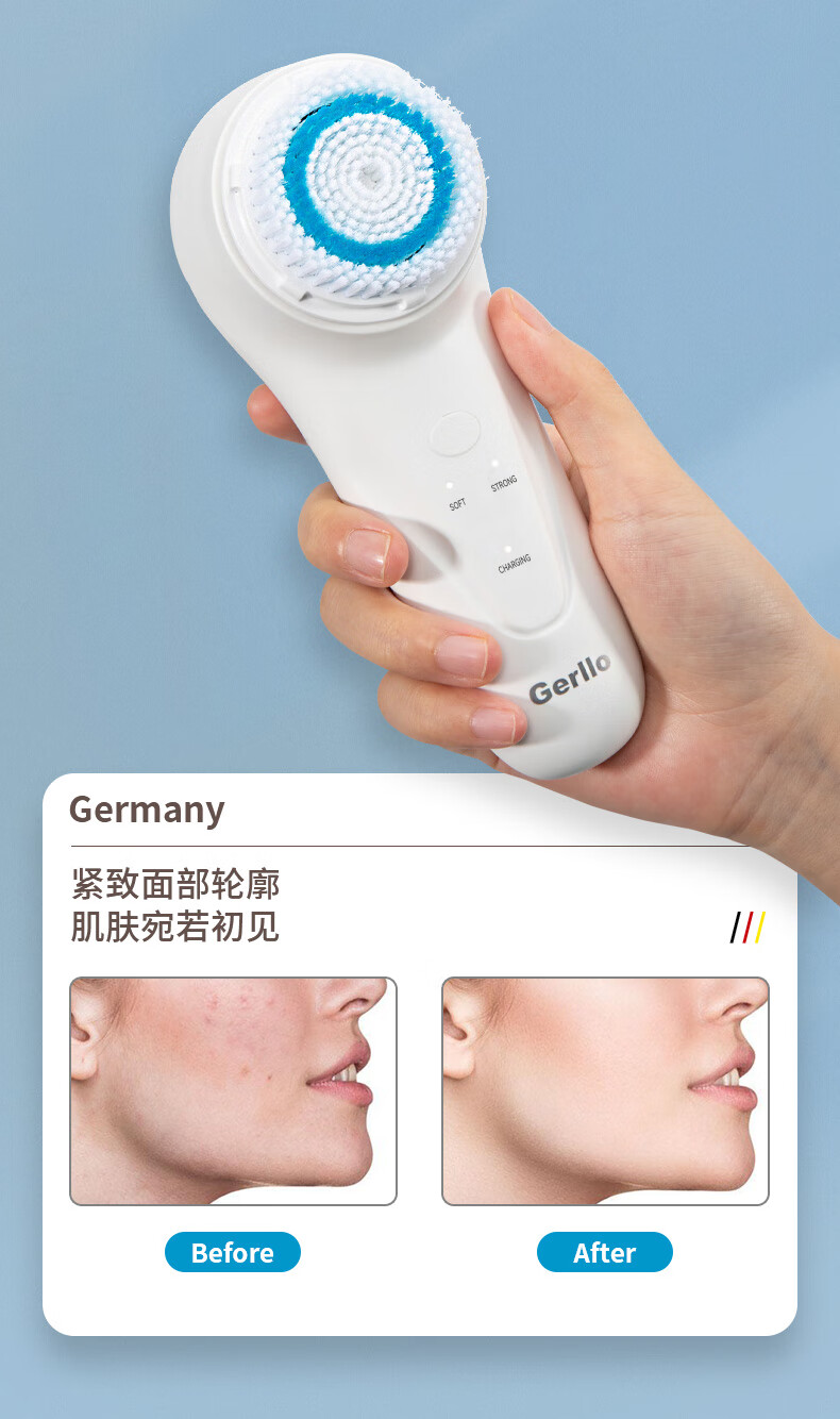 OUOETY德国电动洗脸仪洁面仪神器女男士声波毛孔清洁器充电硅胶刷洗面机 白