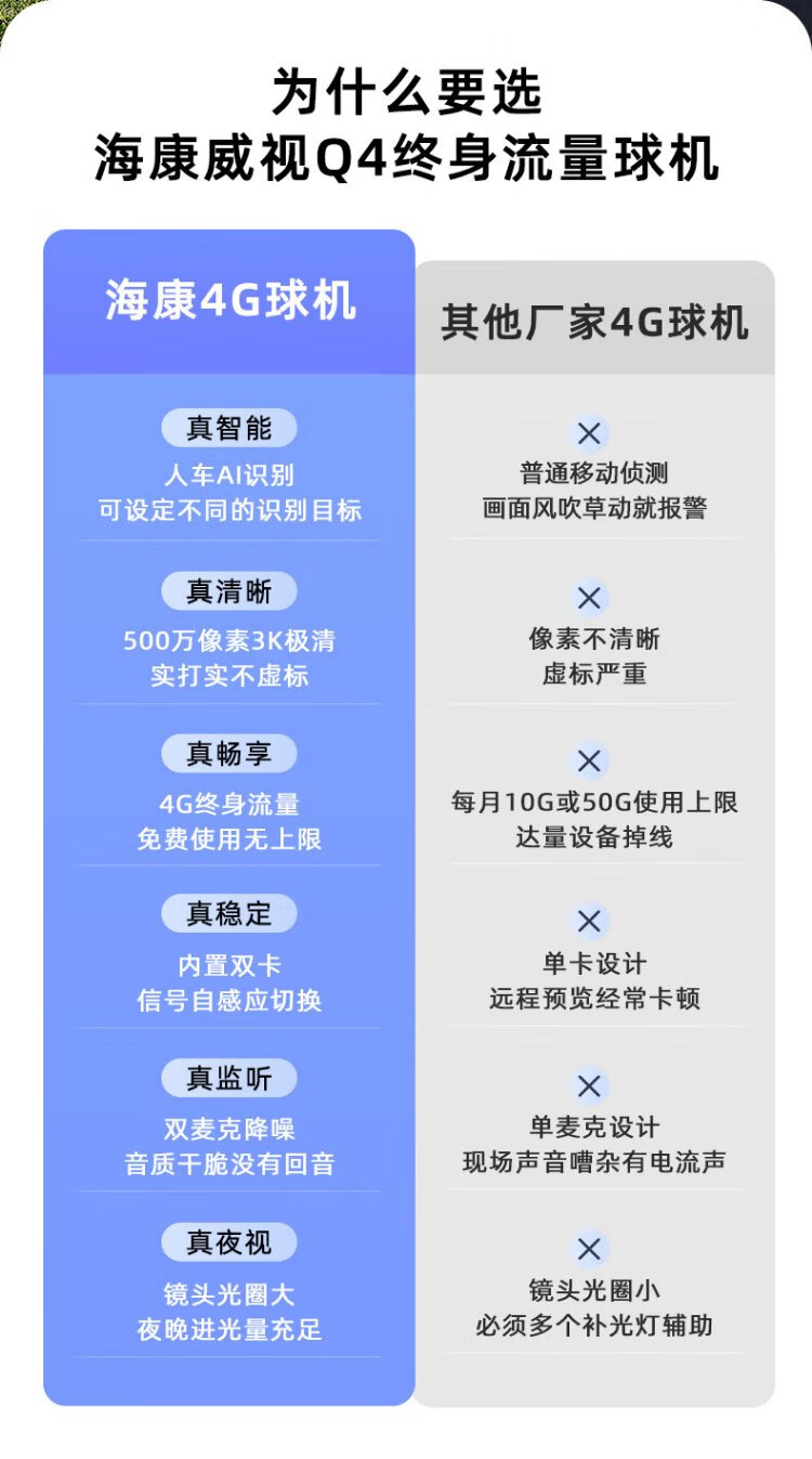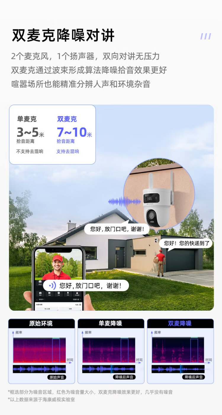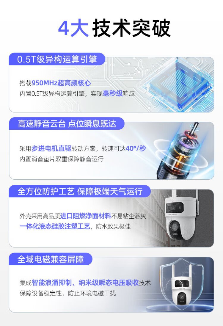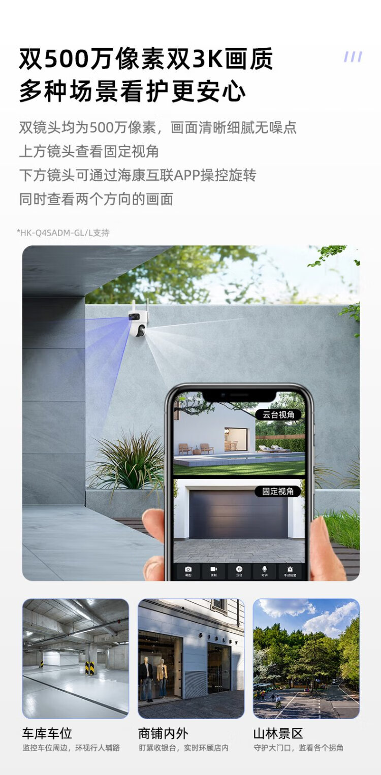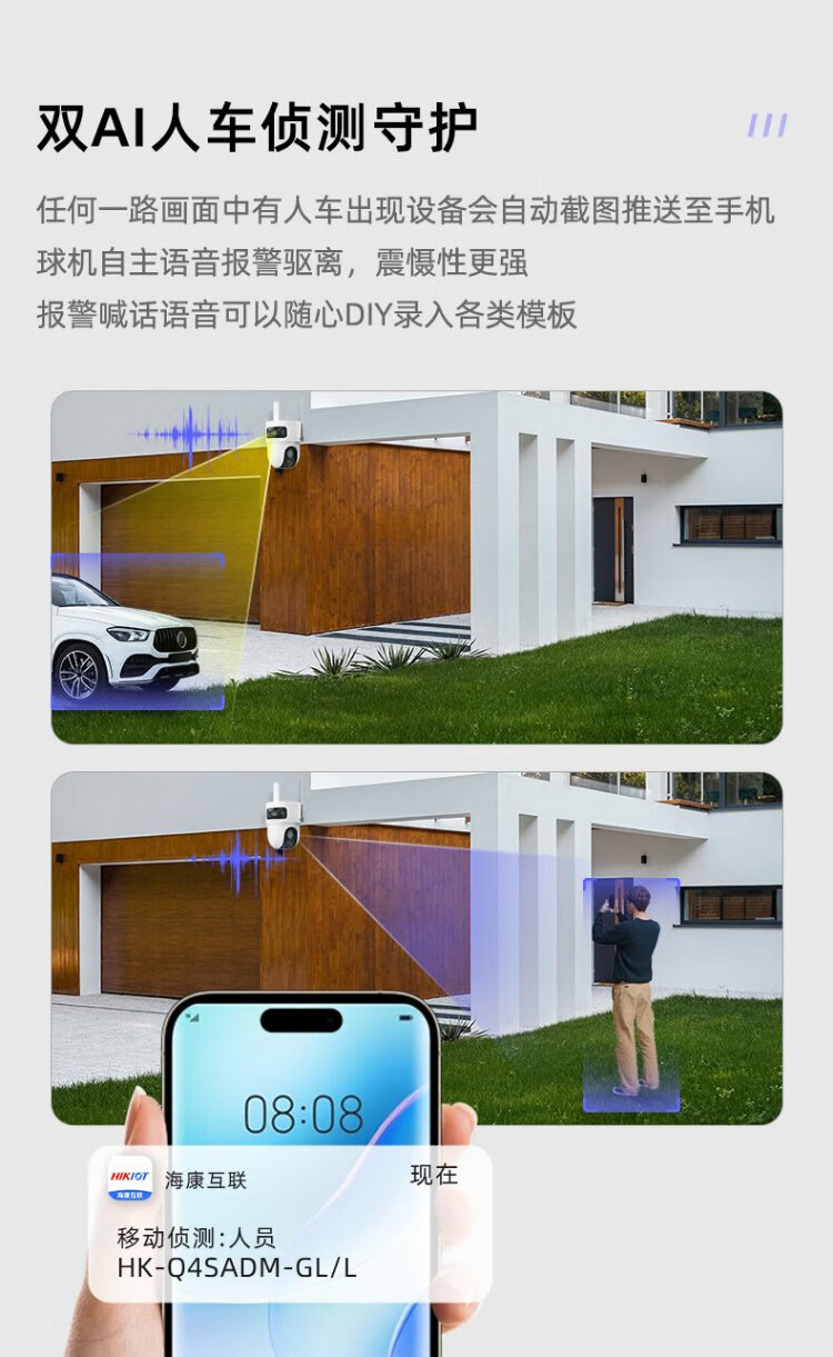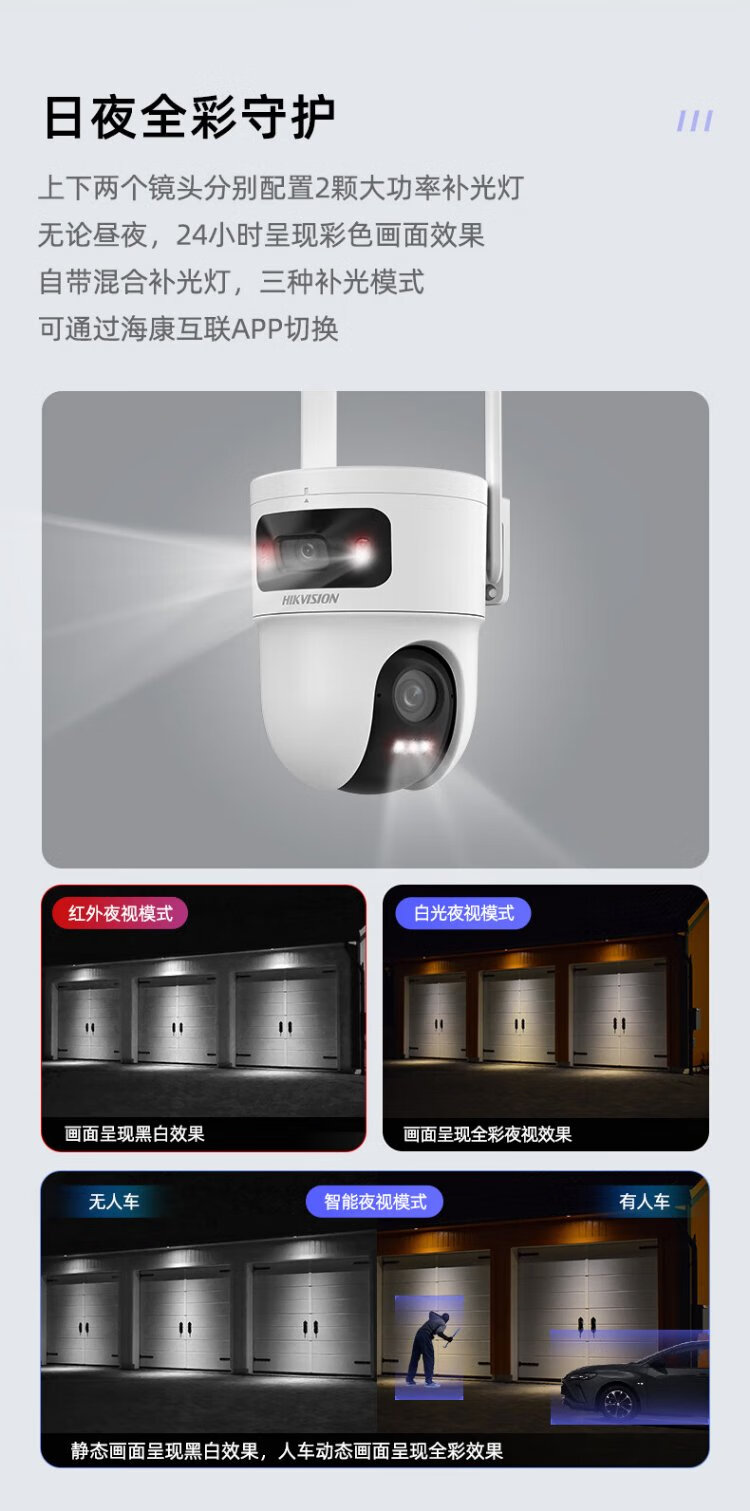 Hikvision 4G caméra extérieure de circulation gratuite à vie double caméra 10 millions de lumière de remplissage intelligente ultra-claire couleur vision nocturne panoramique à 360 degrés suivi surveillance extérieure rurale 256 Go + cordon d'alimentation étanche gratuit double caméra 5 millions de pixels/trafic gratuit à vie