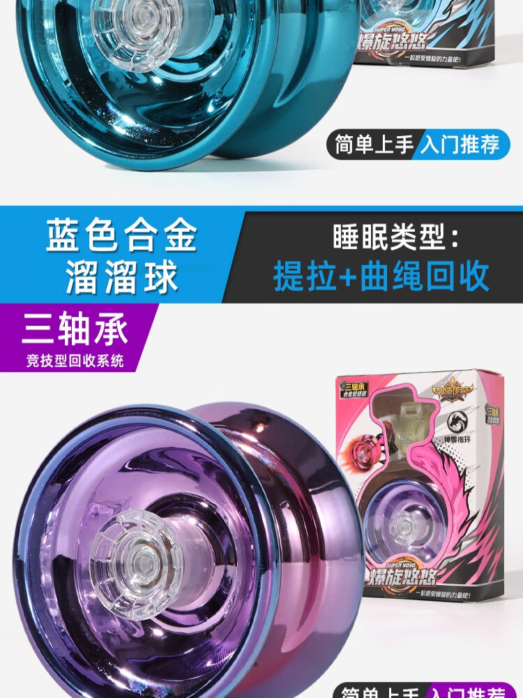 元族溜溜球儿童发光悠悠球yoyo活睡眠自动回旋男孩玩具uu球入门初学者 三个组合灯光版