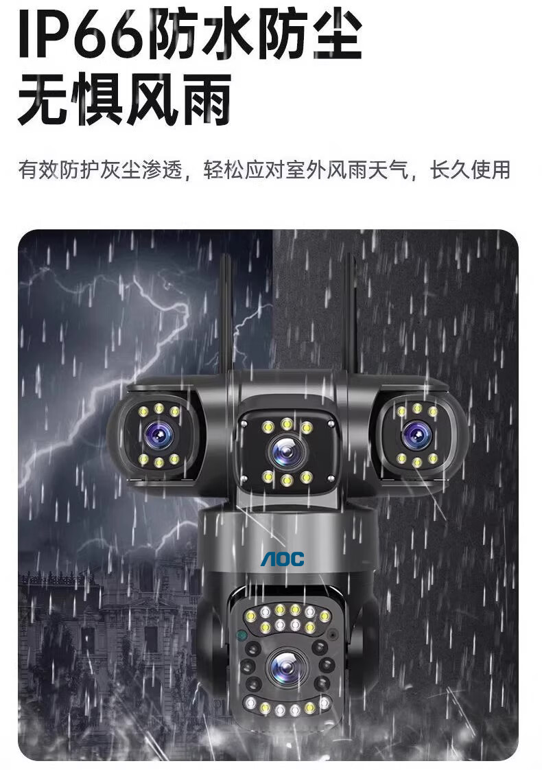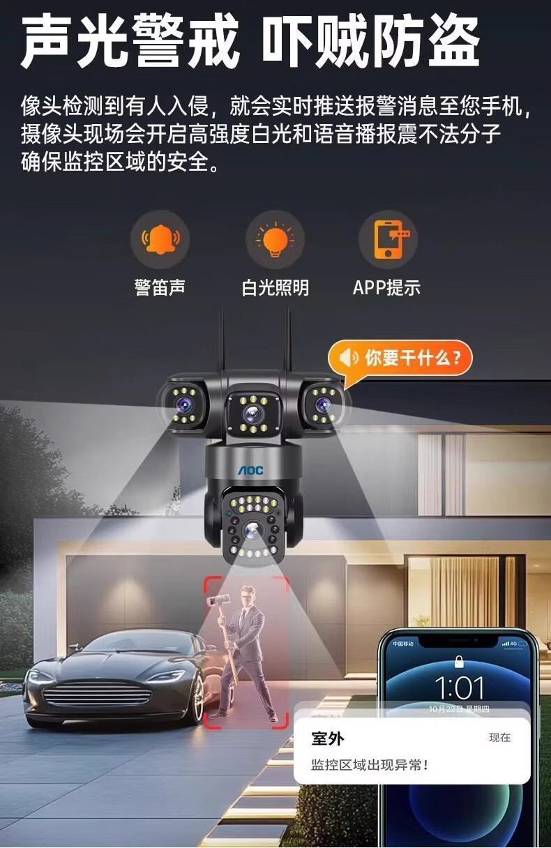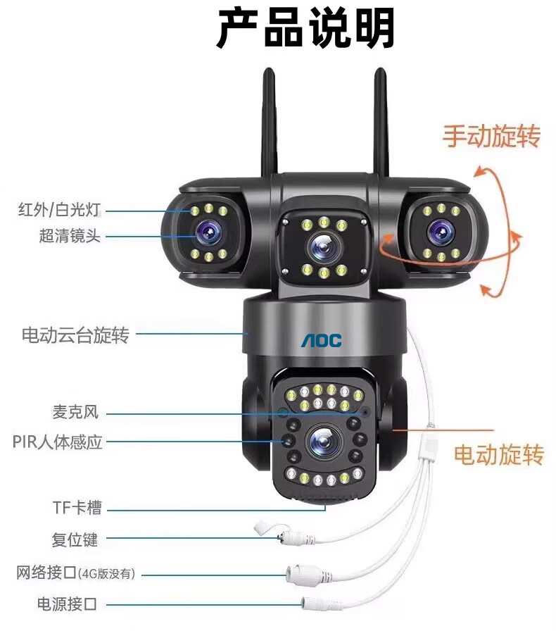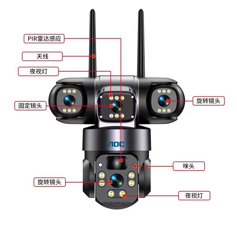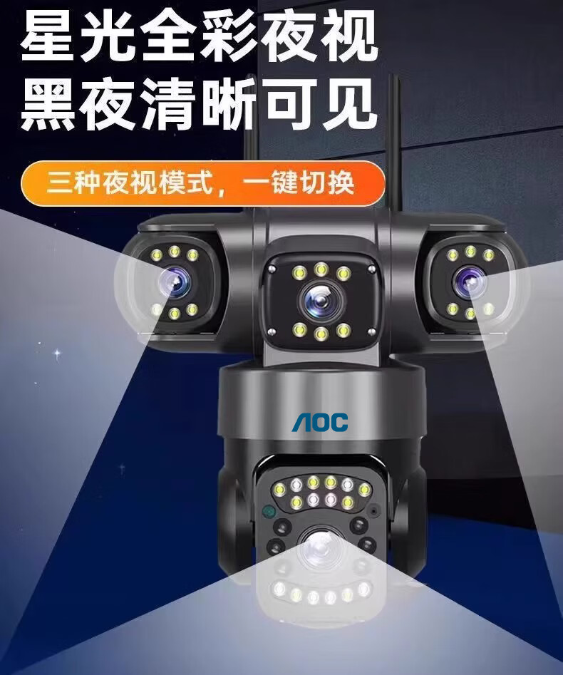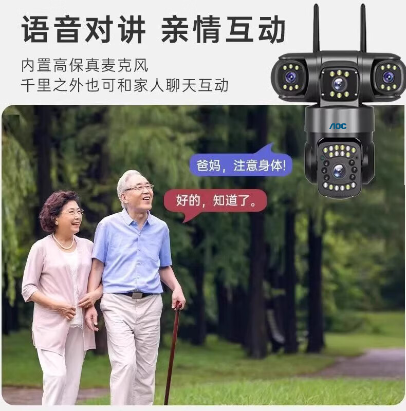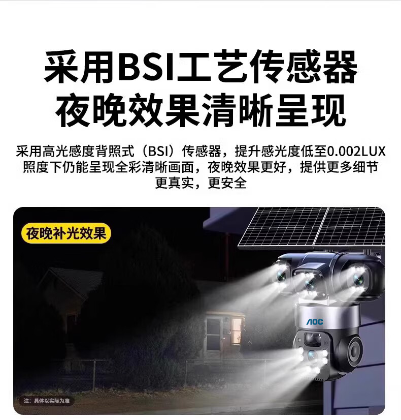 AOC摄像头监控4g太阳能摄像头室外无网免费流量免插电手机远程监控器家用户外360度无死角全景夜视 双板快充64G+爆品太阳能监控+三镜头三旋转无死角