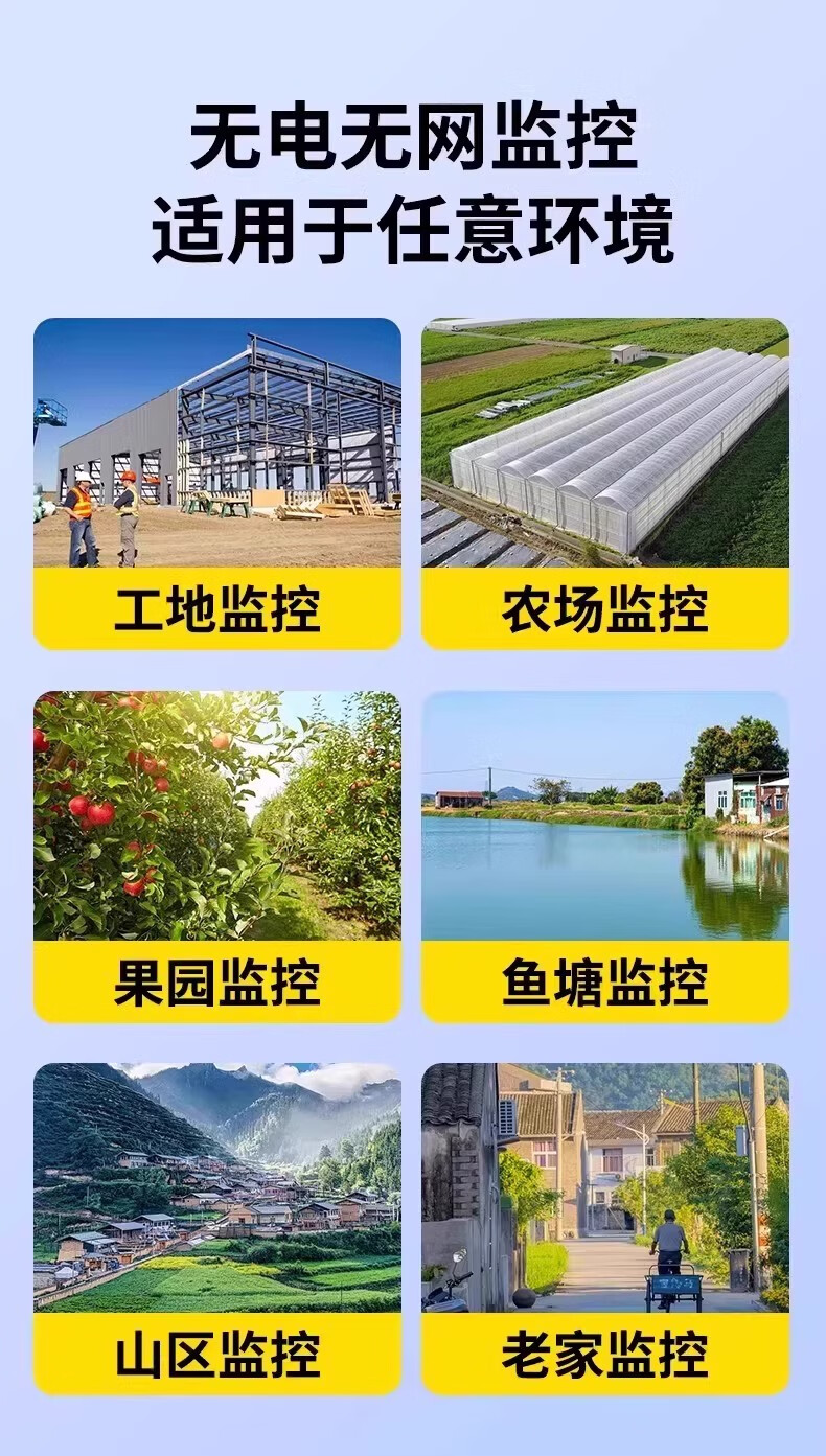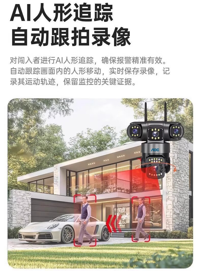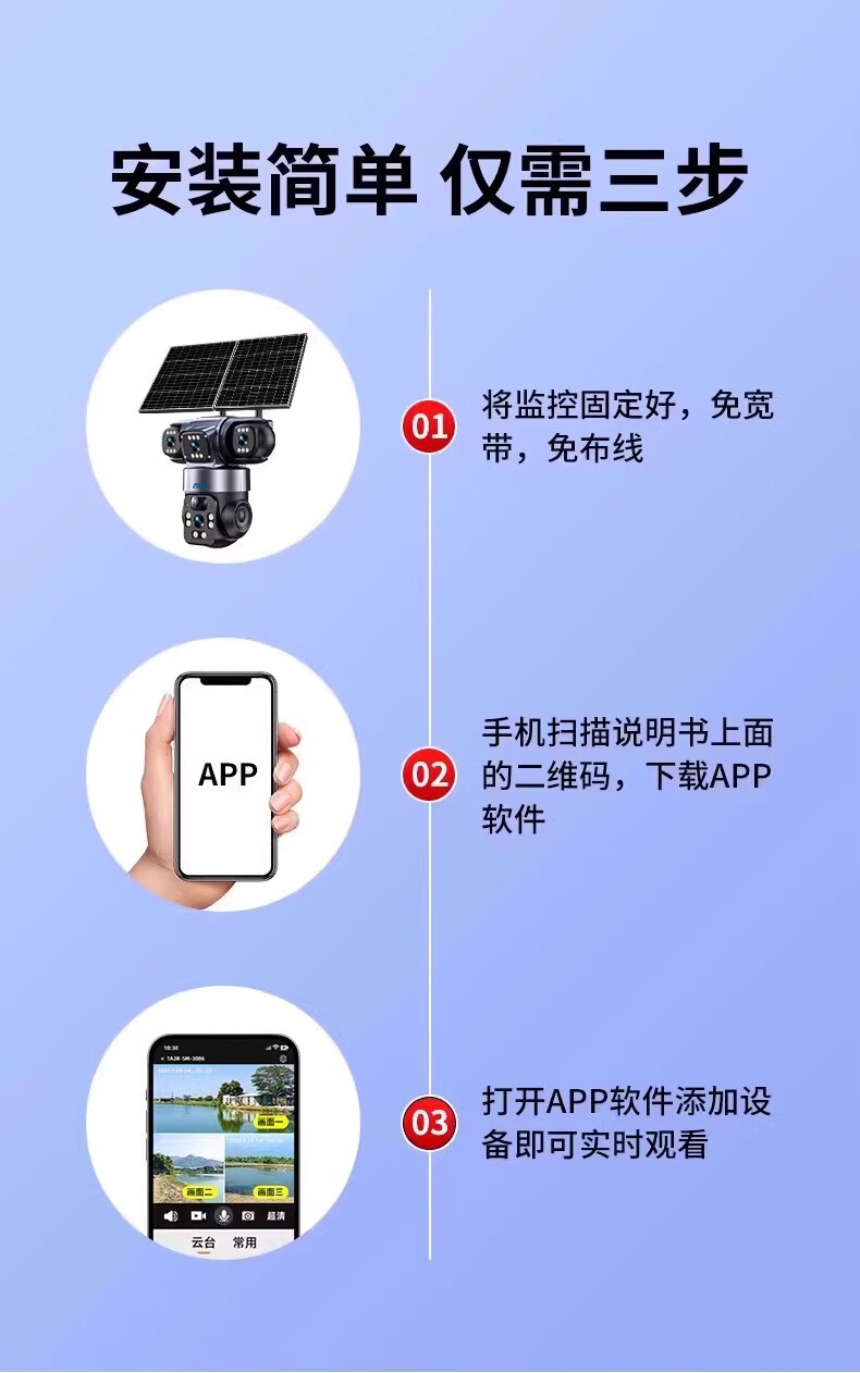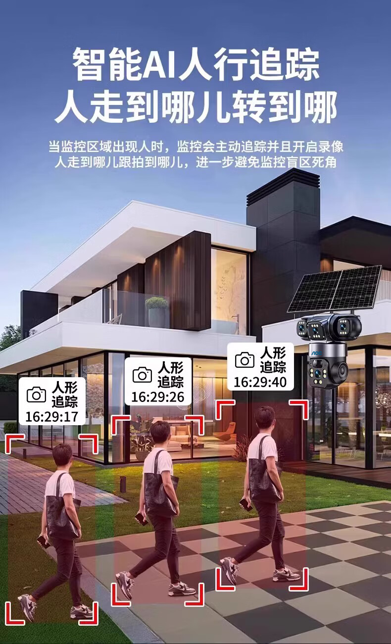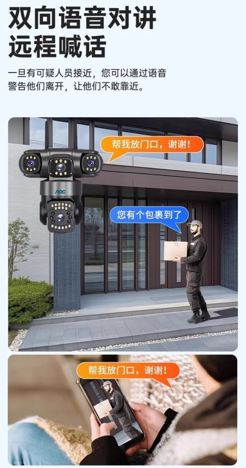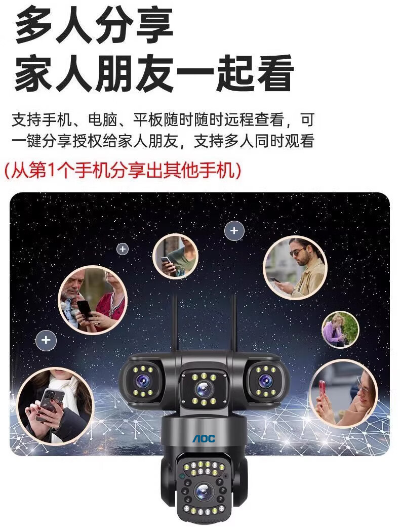 AOC摄像头监控4g太阳能摄像头室外无网免费流量免插电手机远程监控器家用户外360度无死角全景夜视 双板快充64G+爆品太阳能监控+三镜头三旋转无死角
