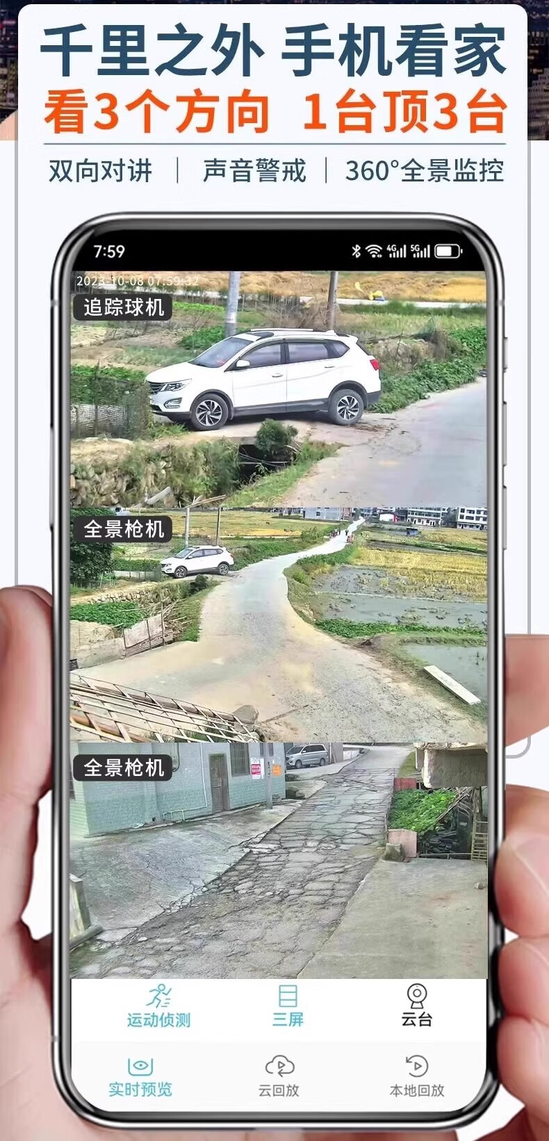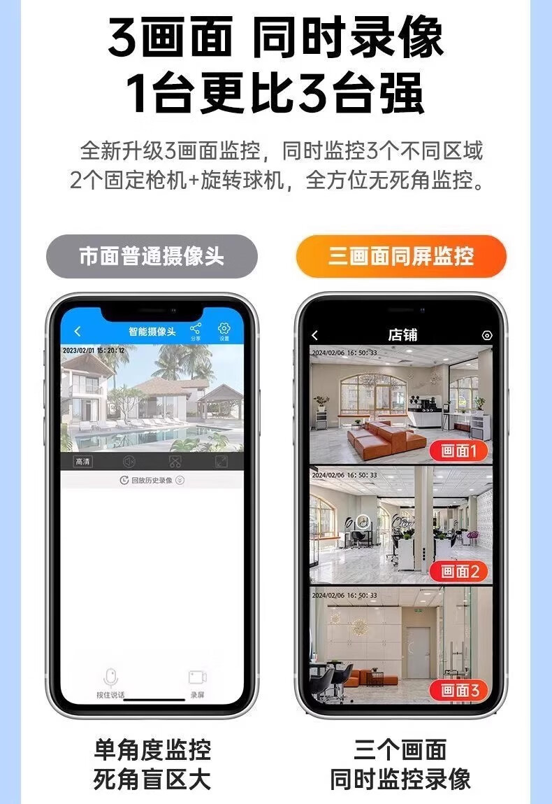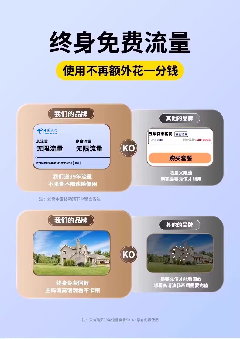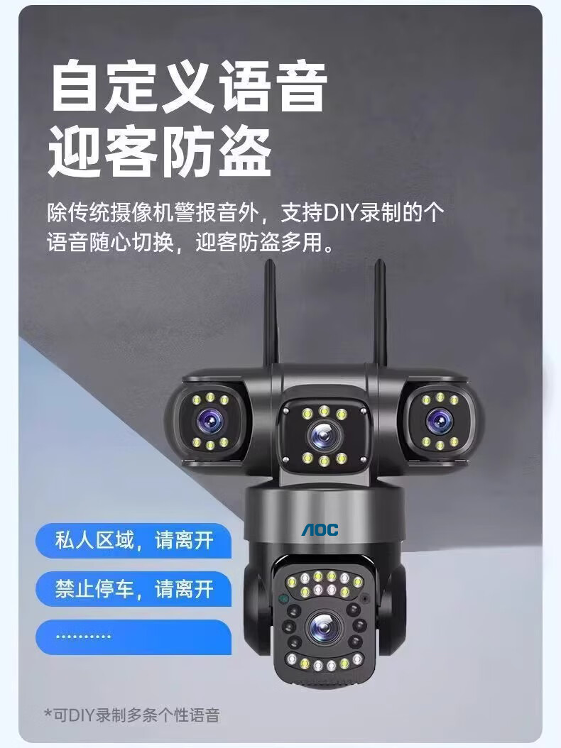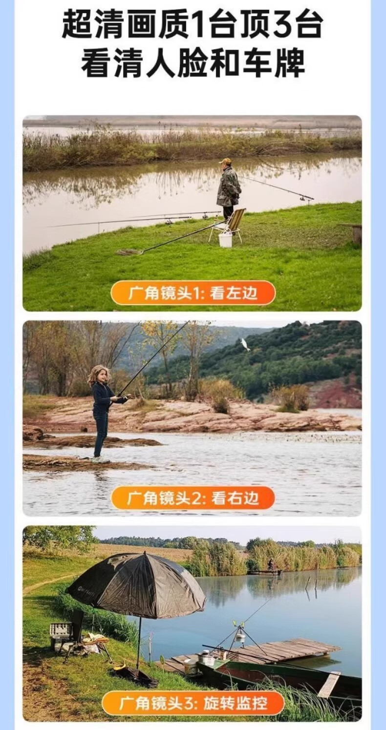 AOC摄像头监控4g太阳能摄像头室外无网免费流量免插电手机远程监控器家用户外360度无死角全景夜视 双板快充64G+爆品太阳能监控+三镜头三旋转无死角
