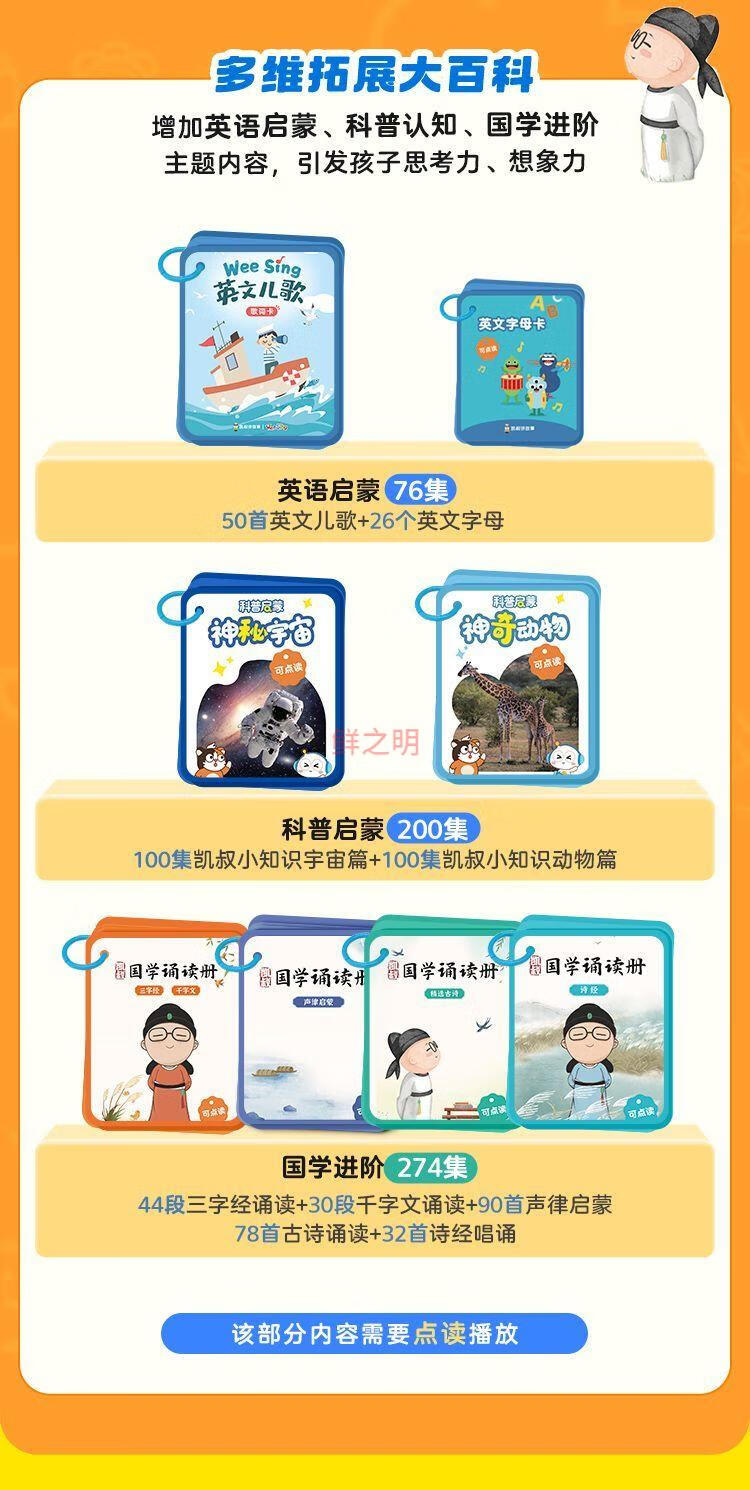 凯叔讲故事点读早教机诗词儿歌动物英文启蒙儿童学习玩具礼物 (可点读)多维拓展大百科(13套卡)