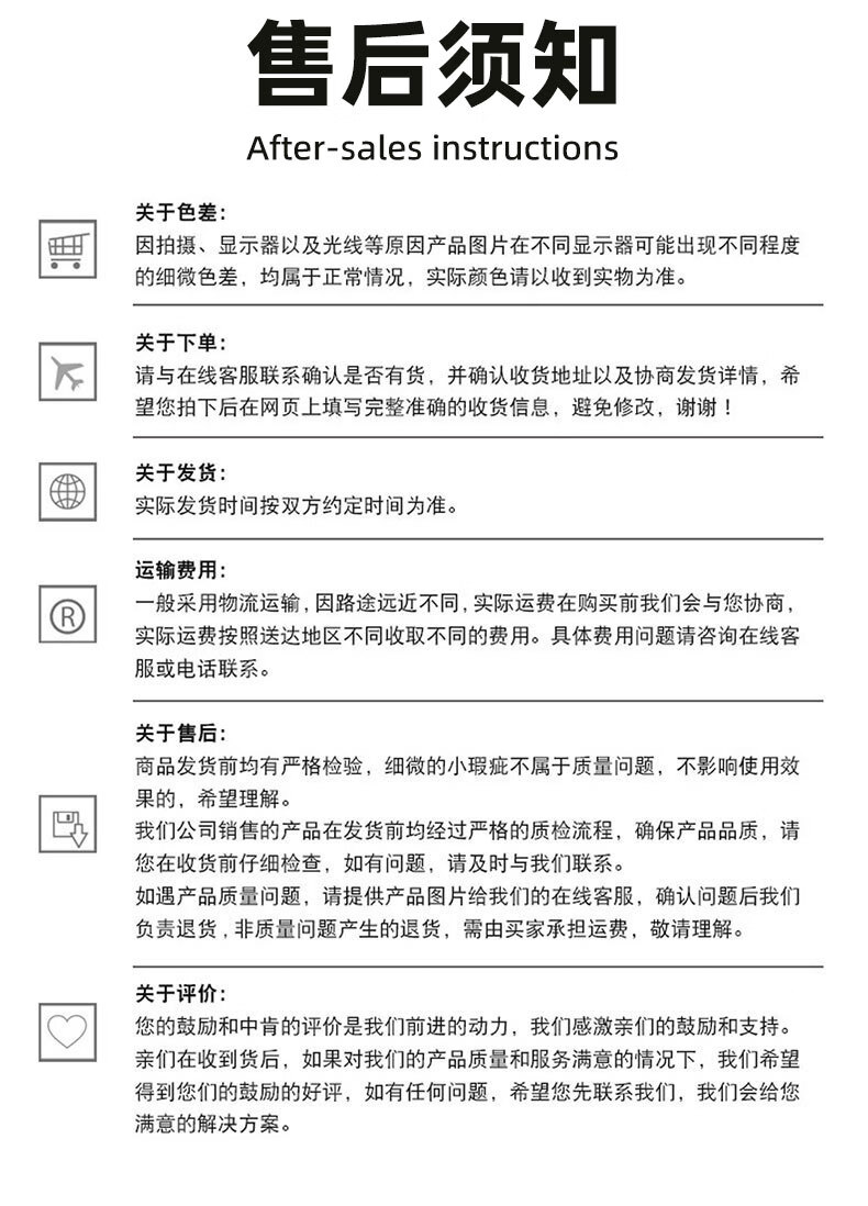 2)Les frais de port sont normalement facturés par tranche de 0,5KG. Donc, si vous achetez un produit qui ne pèse que 0,1KG, vous pourriez envisager d'acheter 2-3 PCS à la fois, ce qui n'ajoutera pas plus de frais de port à votre commande.