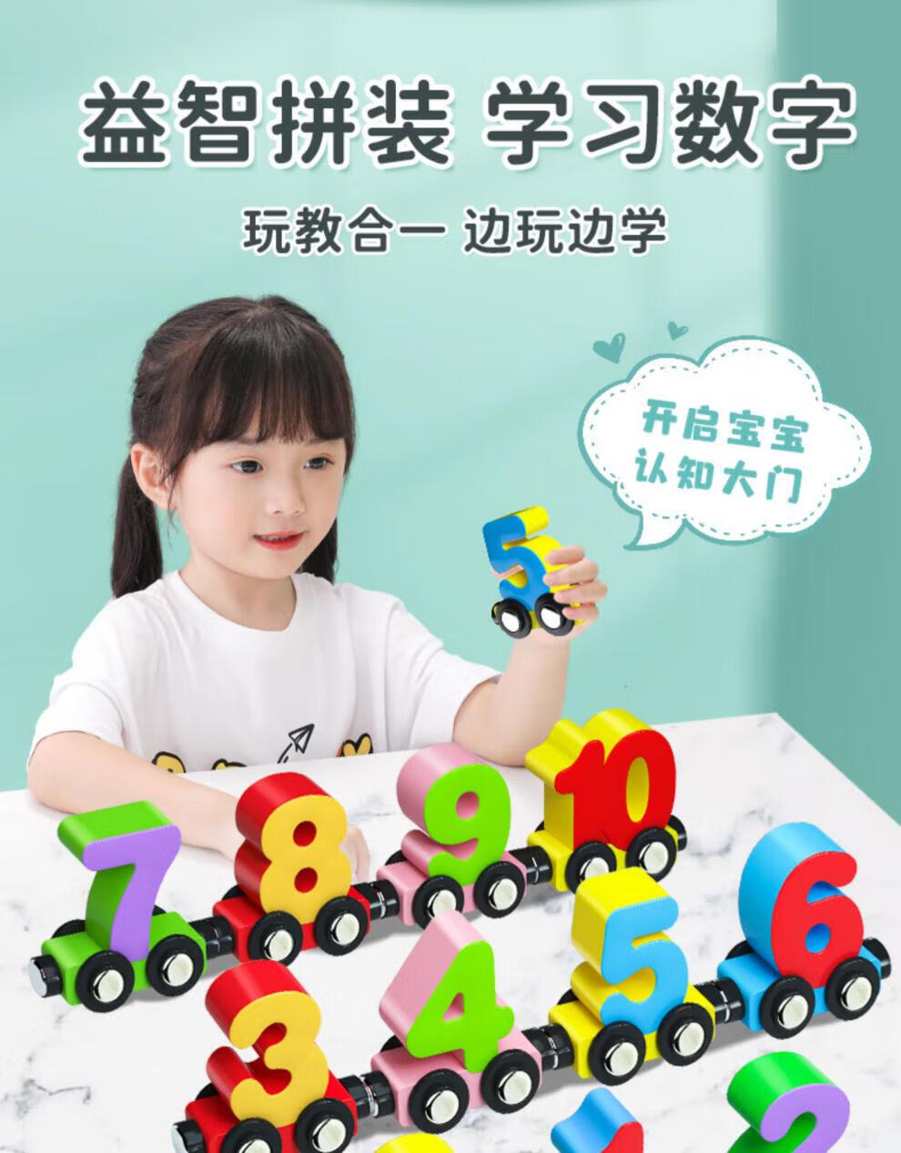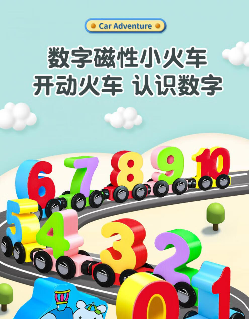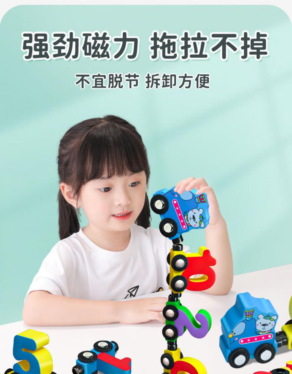 RRLFCS Spielzeugeisenbahn magnetische digitale Eisenbahn Spielzeug Kinder magnetische Bausteine ​​Montage Baby Mädchen 1 bis 3 12-teilige magnetische digitale Eisenbahn + 360 Teile in Beuteln