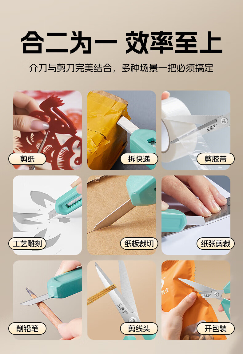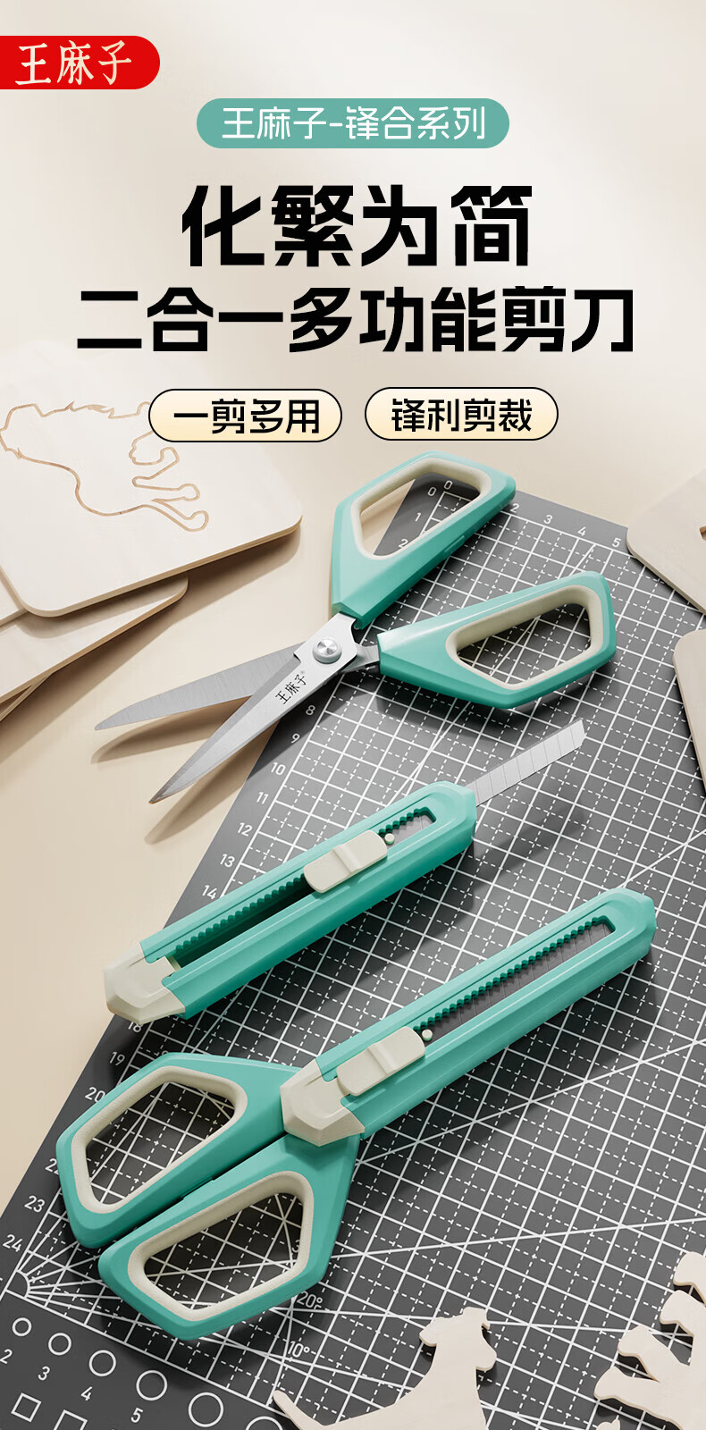 Wang Mazi Ciseaux ménagers pour la vie au bureau, fournitures de bureau, ciseaux à papier faits à la main pour étudiants, ciseaux d'art deux en un, ciseaux de bureau deux en un, ensemble de ciseaux à couteaux d'art