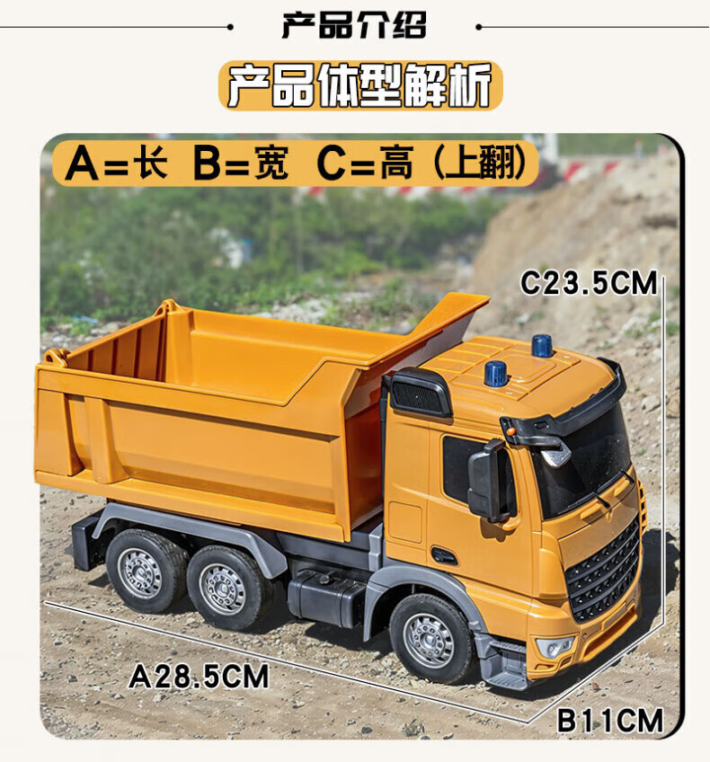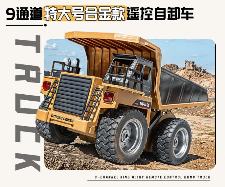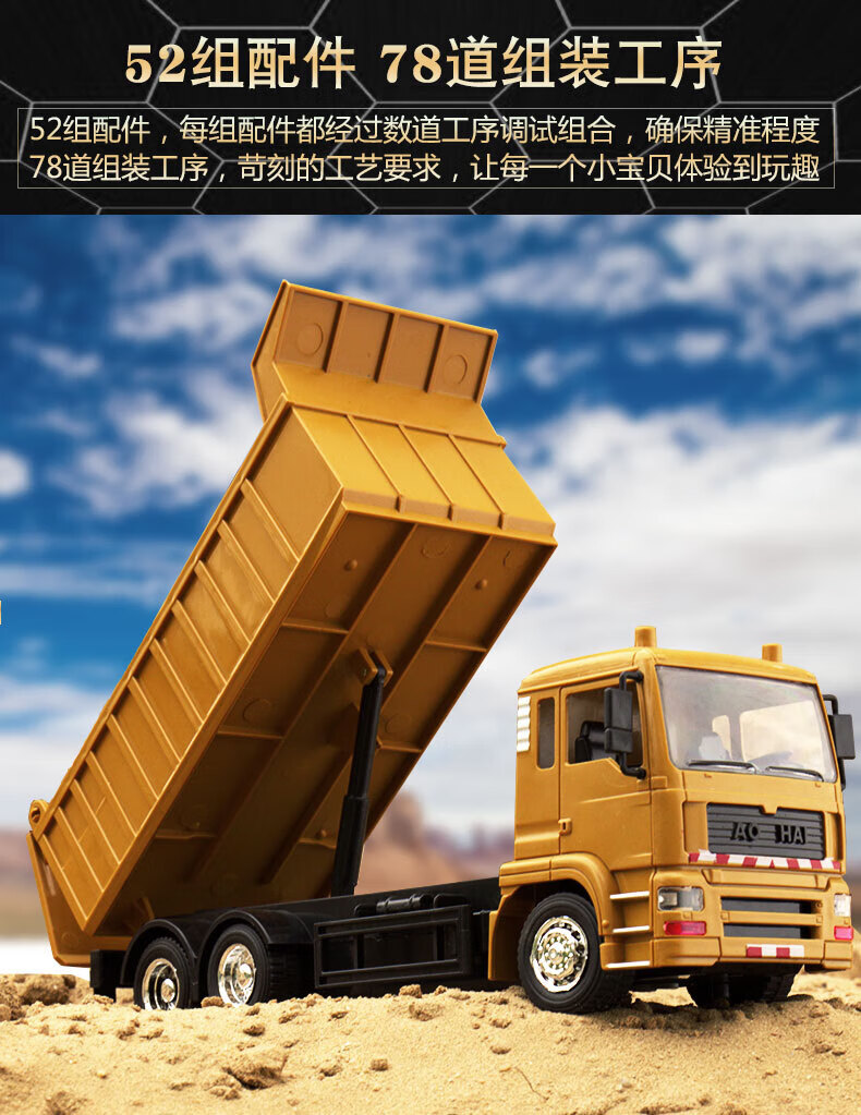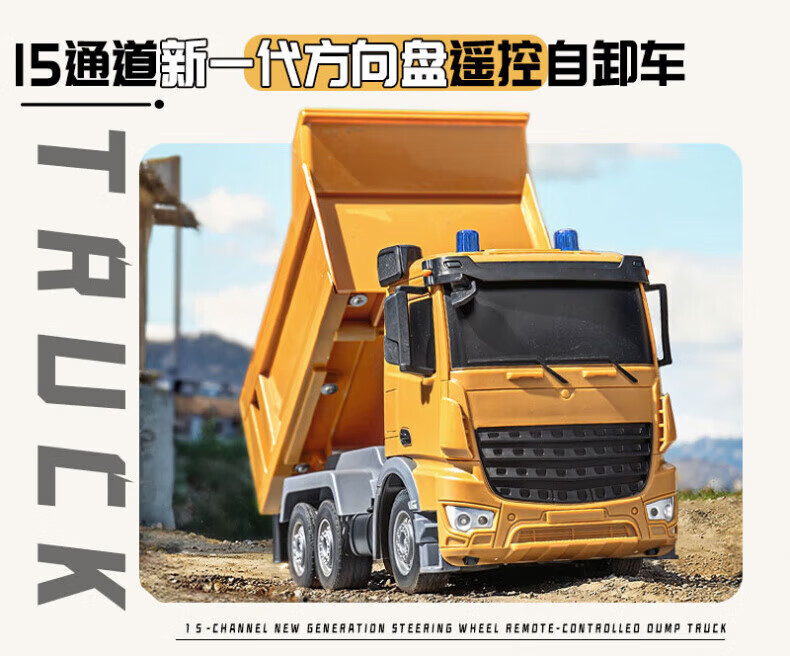 Wenzhi großer ferngesteuerter Muldenkipper aus Legierung, Kinder-Technikfahrzeug, Spielzeug-LKW, LKW-Simulation, Muldenkipper-Modell, ferngesteuerter Muldenkipper, gelb, Griff mit einem Satz originaler wiederaufladbarer Batterien, Sonderangebot