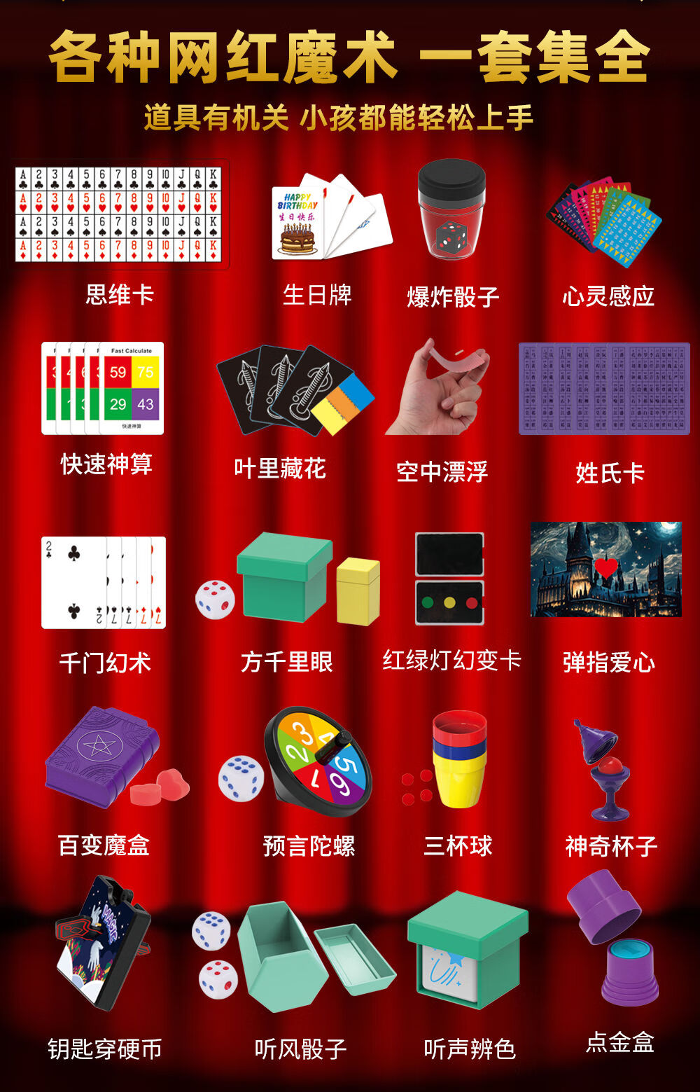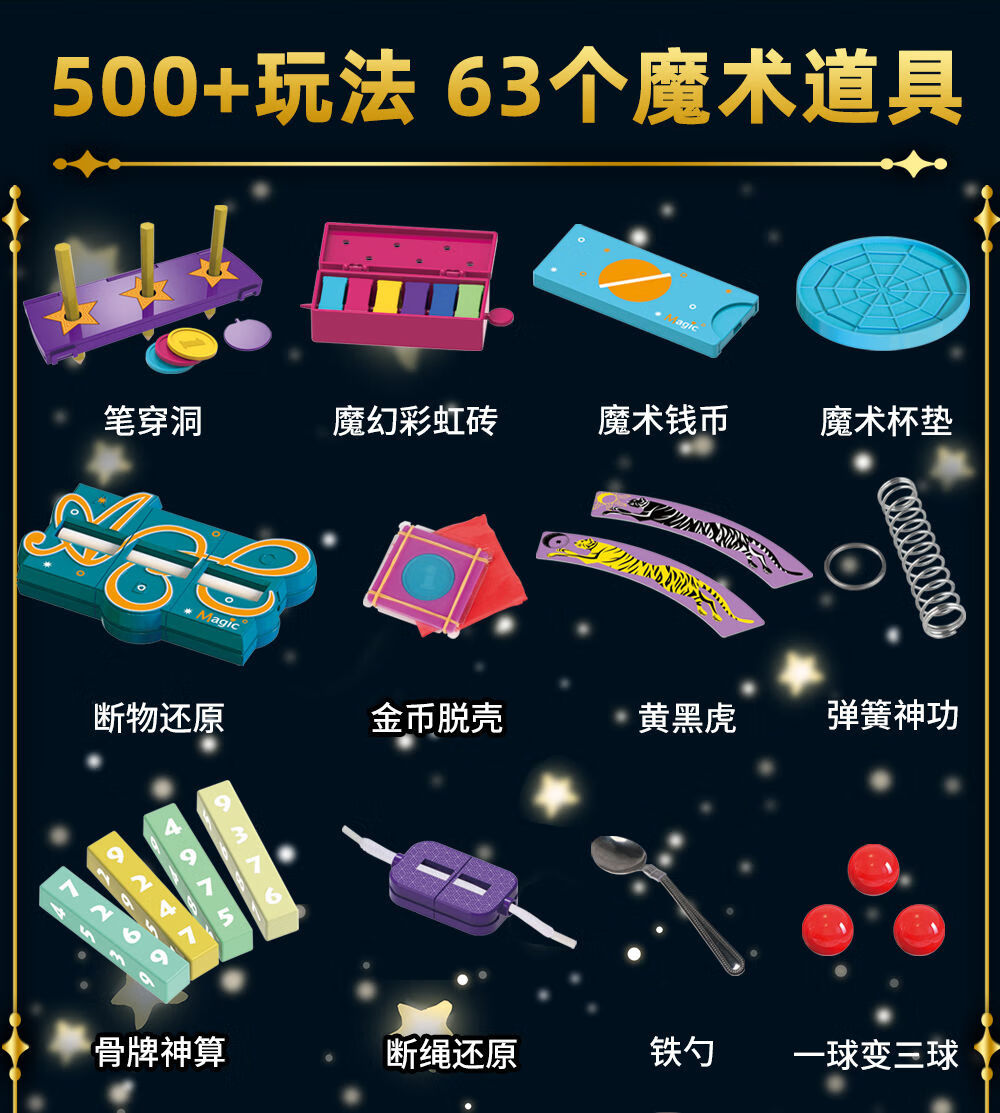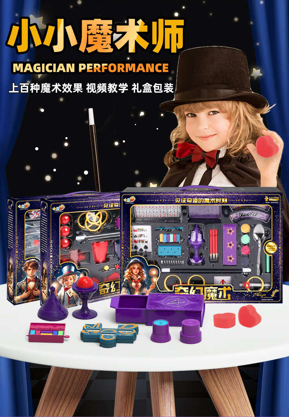 Internet celebrity magic children's toys, educational toys for 3 to 6 years old, girls over 10 years old, children's play house, Children's Day gift, surprise magic 33-piece set + classic performance costume + stretch