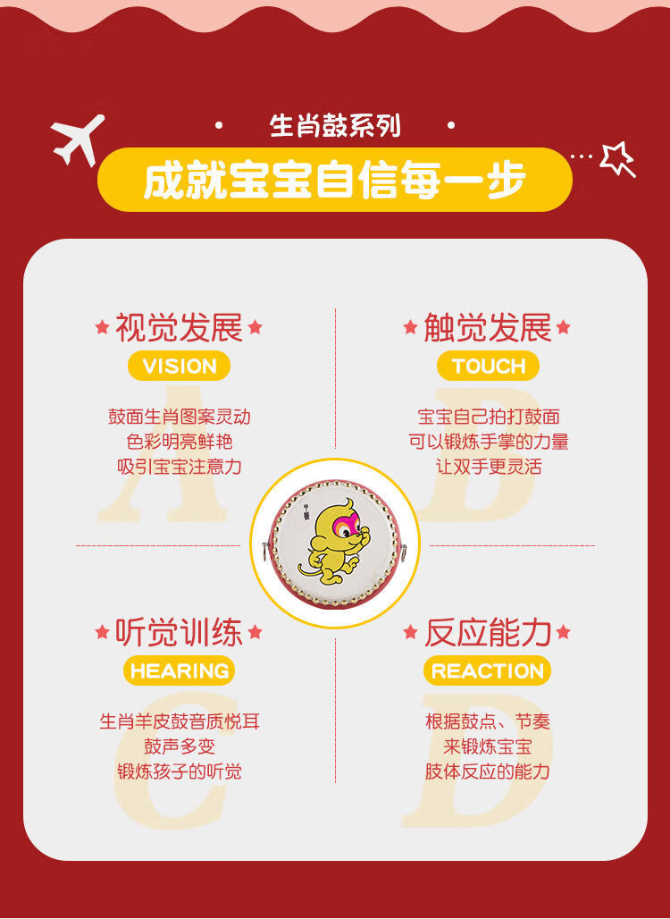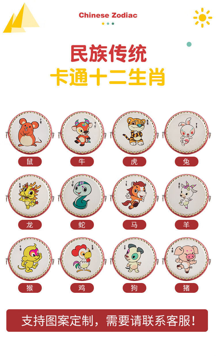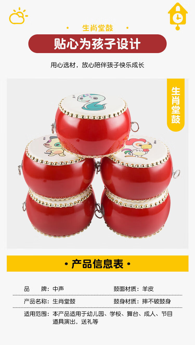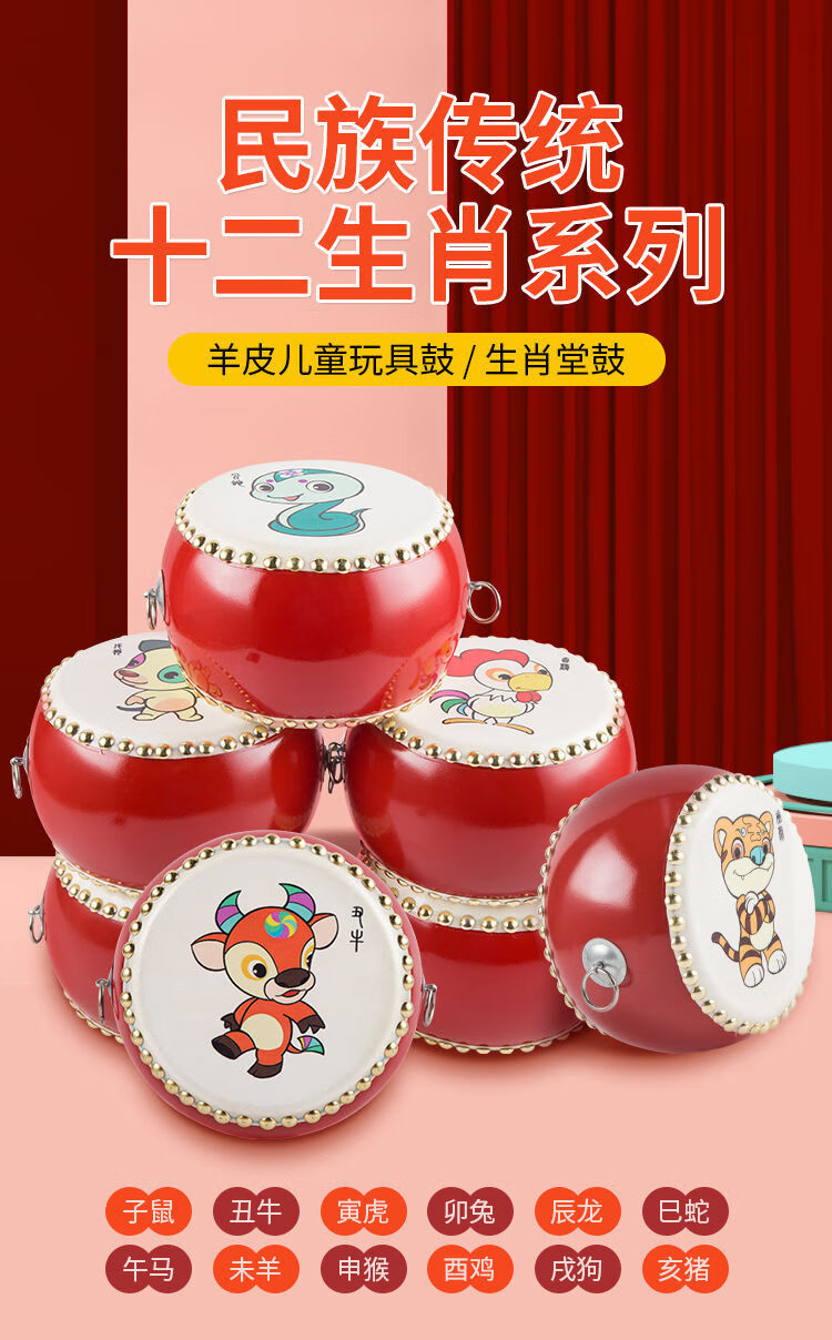 ZOCO Zodiac drum cowhide children's toy drum kindergarten small drum beat drum hall drum gong drum percussion instrument 5-inch Chenlong drum stick + strap
