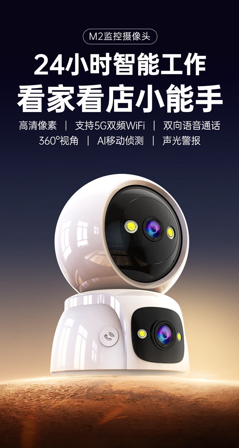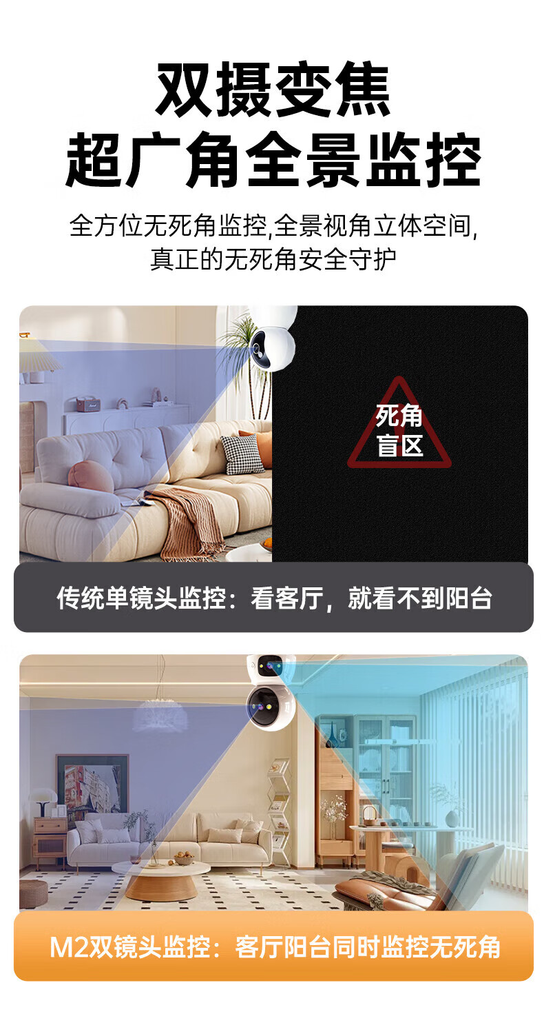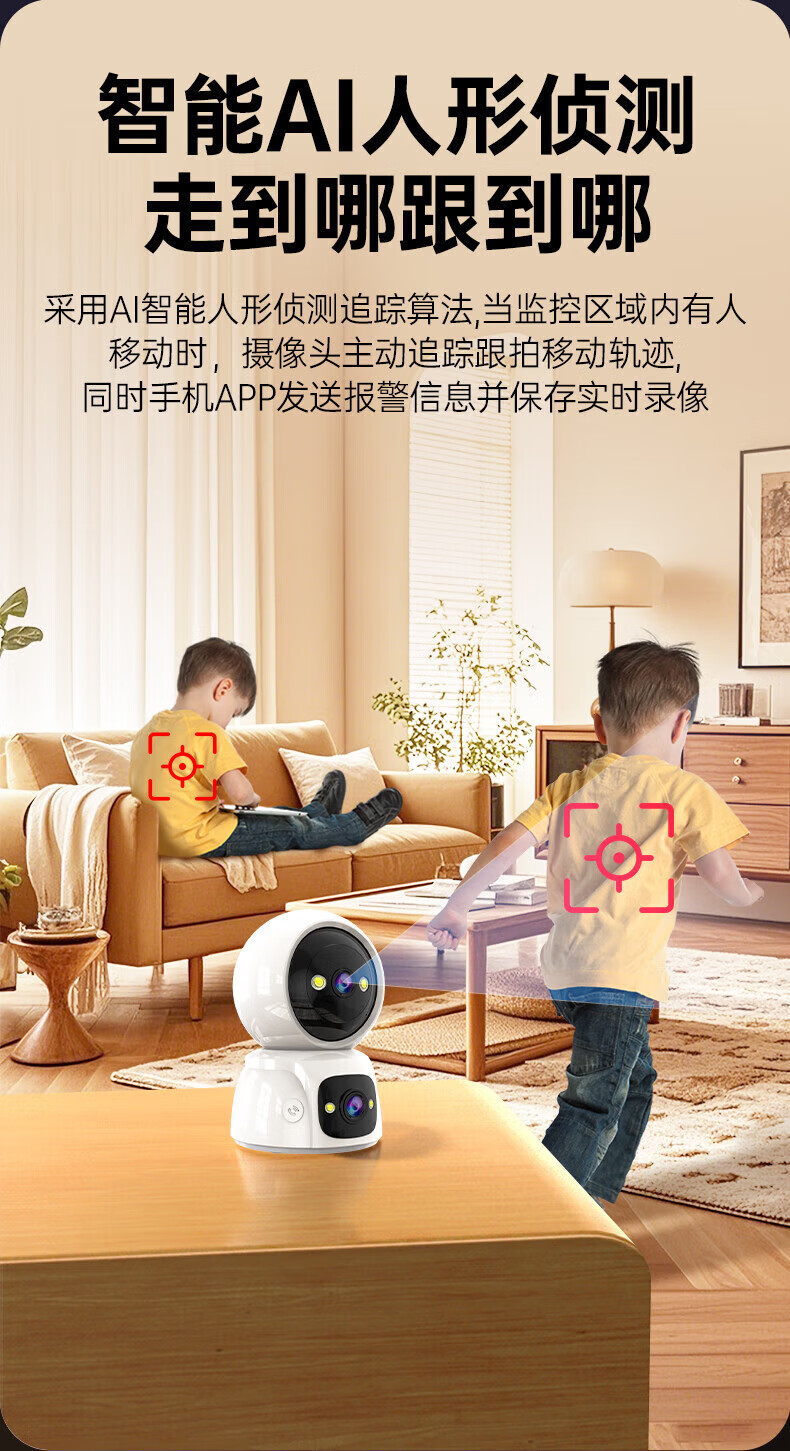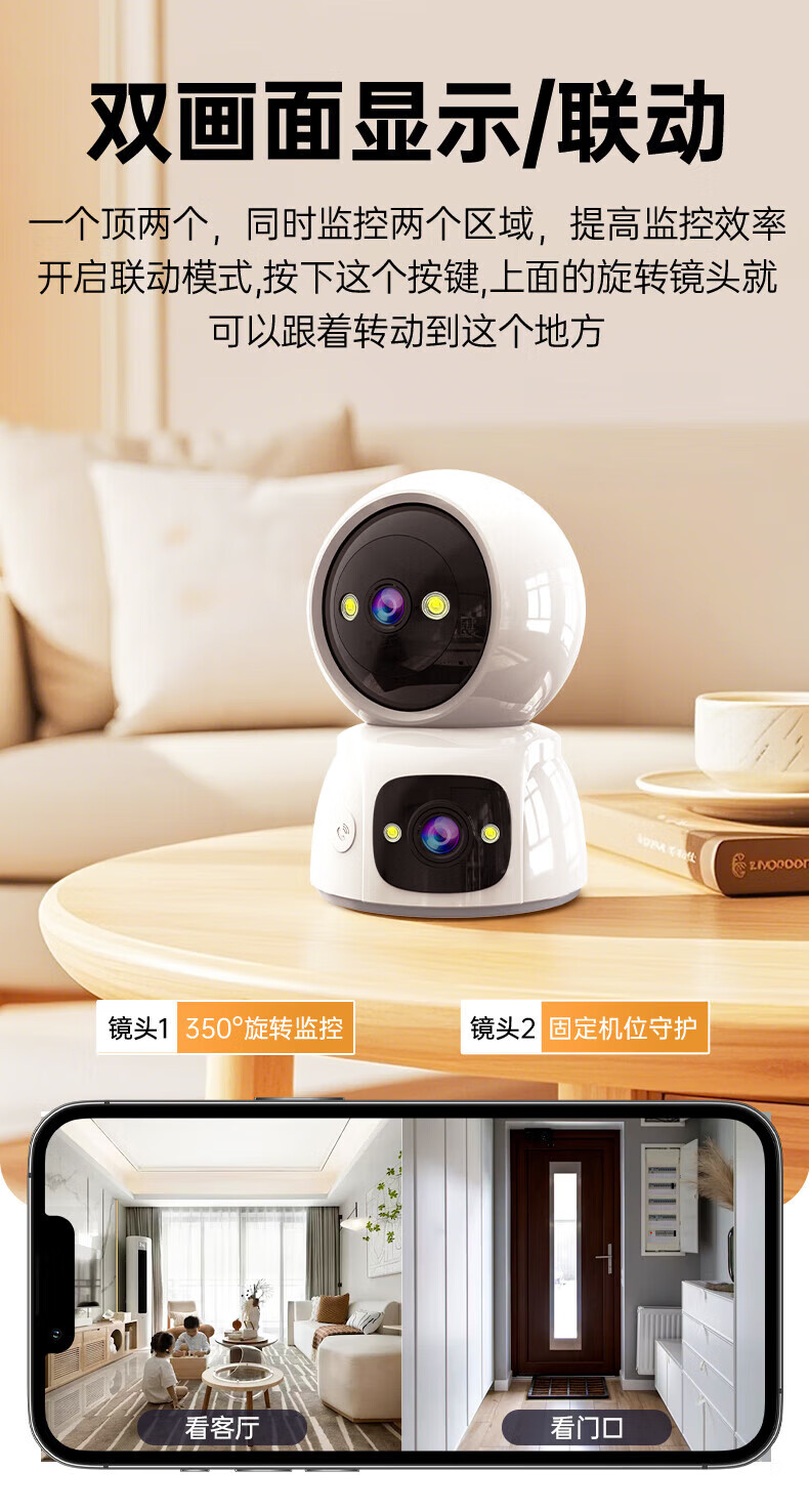 XMSJ caméra de surveillance à domicile double objectif vue panoramique à 360 degrés sans angles morts vision nocturne ultra-claire 4K suivi humanoïde IA avertissement sonore et lumineux version WiFi double bande télécommande de téléphone portable | connectez-vous et utilisez l'enregistrement en boucle de 15 jours, les appels bidirectionnels, la détection de cris en couleur jour et nuit