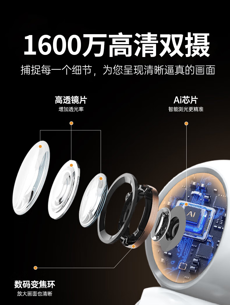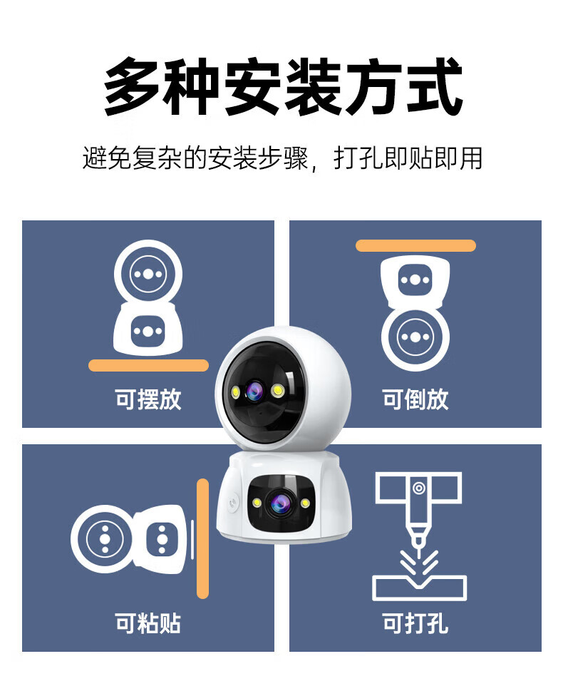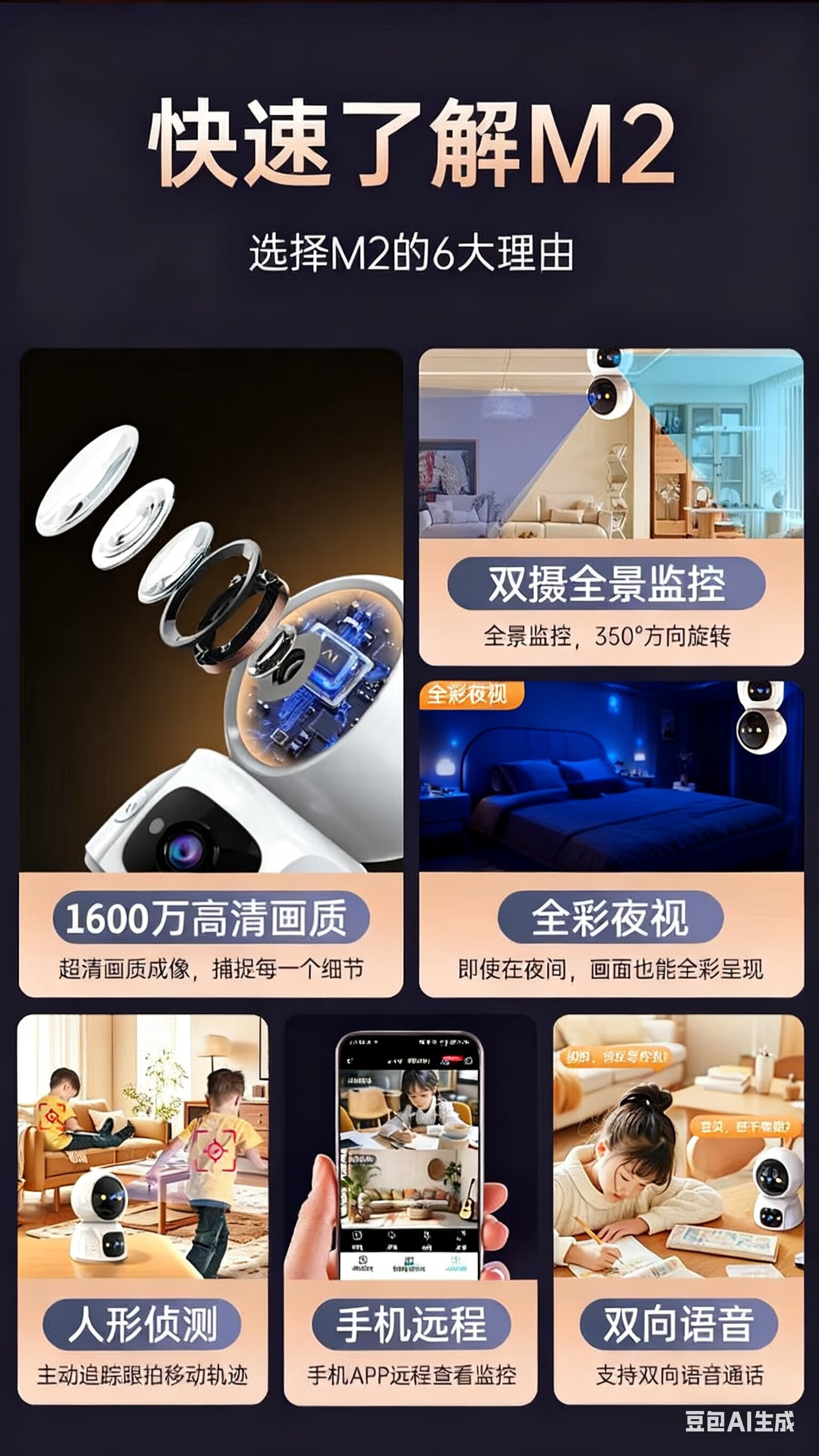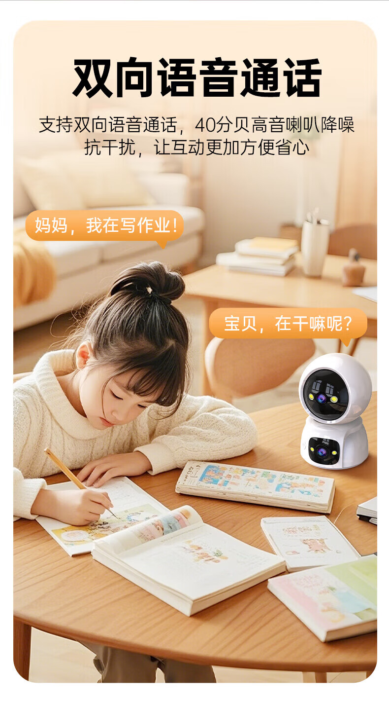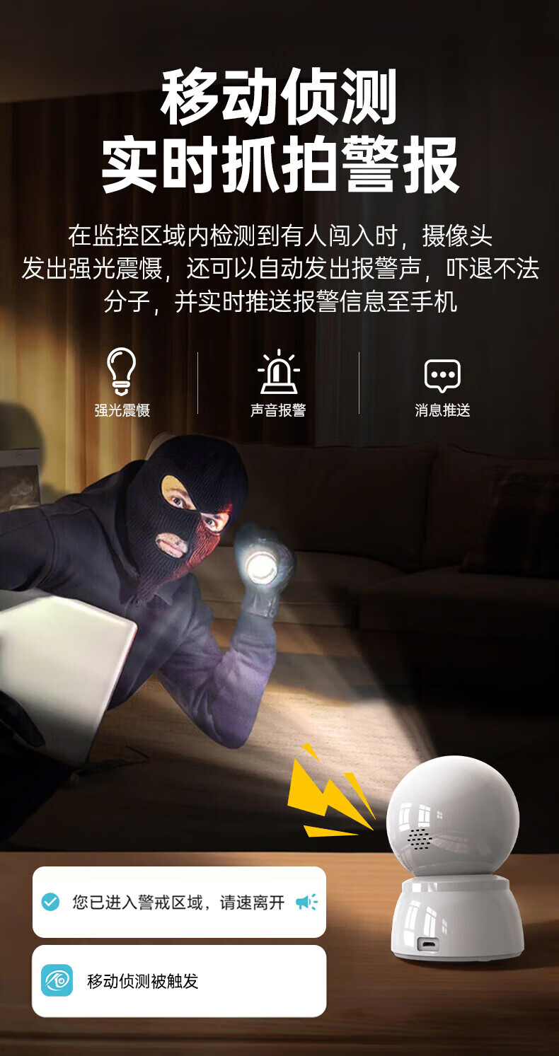XMSJ caméra de surveillance à domicile double objectif vue panoramique à 360 degrés sans angles morts vision nocturne ultra-claire 4K suivi humanoïde IA avertissement sonore et lumineux version WiFi double bande télécommande de téléphone portable | connectez-vous et utilisez l'enregistrement en boucle de 15 jours, les appels bidirectionnels, la détection de cris en couleur jour et nuit