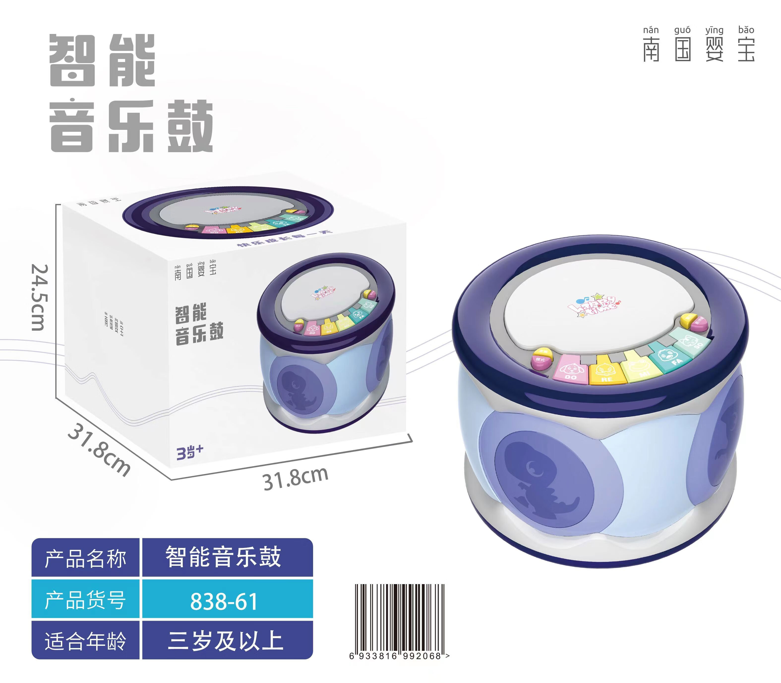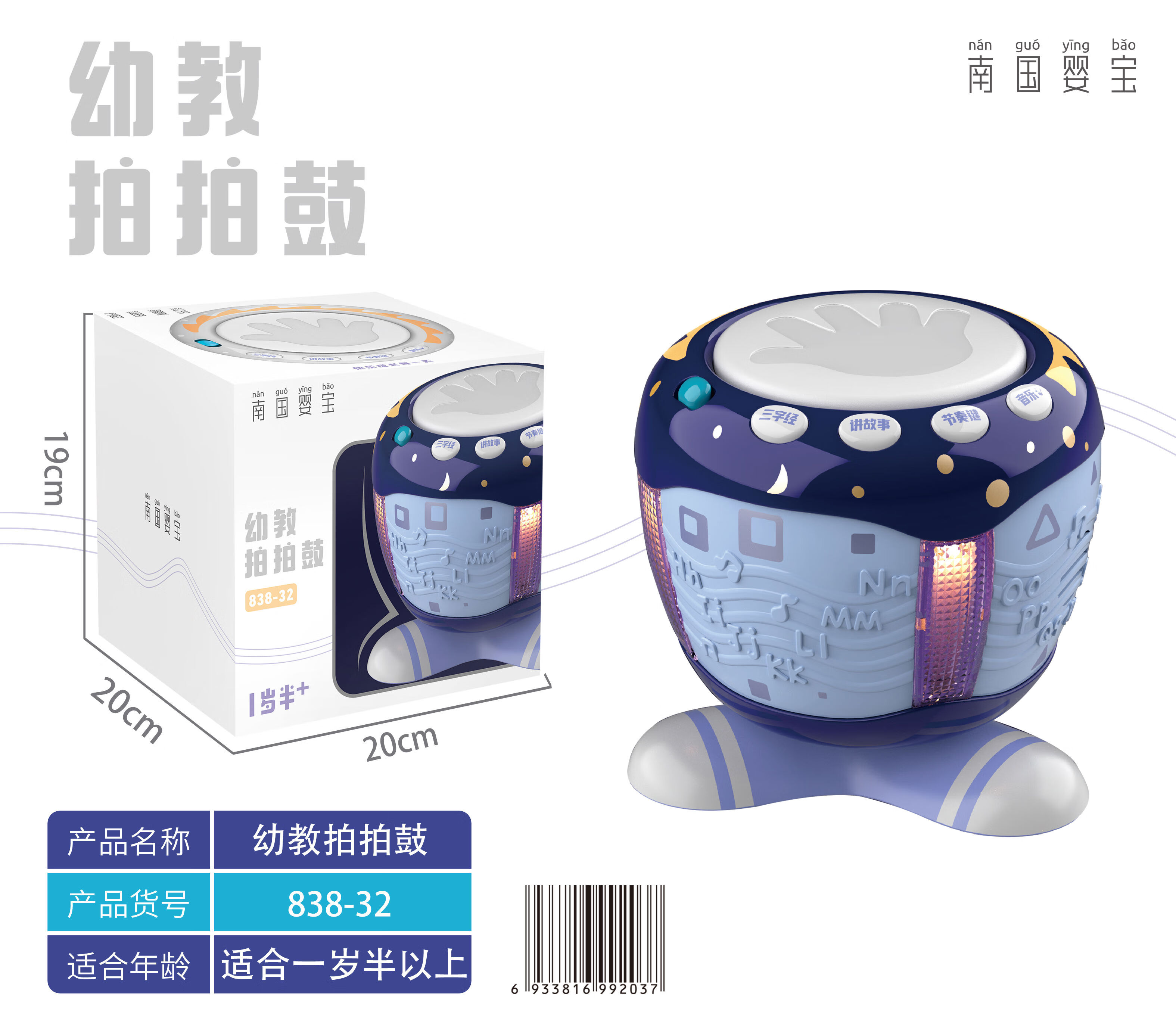 山头林村手拍鼓儿童拍拍鼓卡拉OK婴儿早教13岁智能音乐玩具 宏星音乐智趣手拍鼓