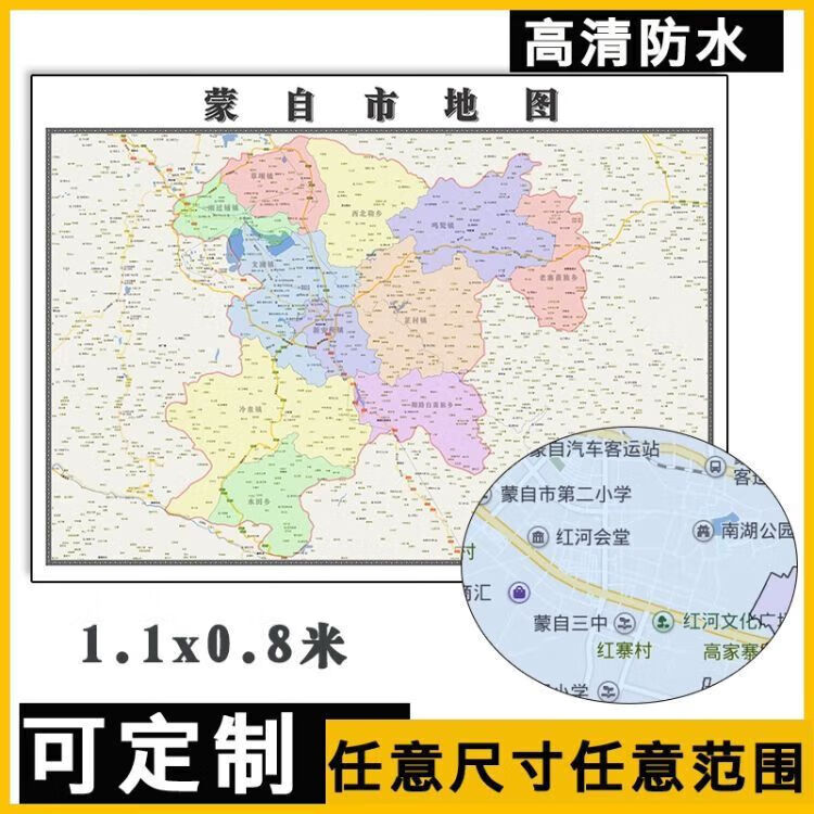 Mengzi City map 1.1 meters can be customized to divide the administrative and transportation areas of Yunnan Province