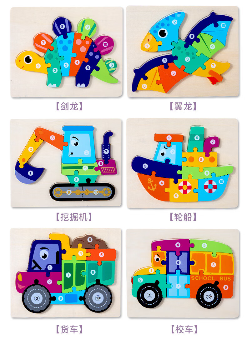 Детская образовательная сборка 3D трехмерная цифровая головоломка доска для раннего образования игрушка динозавр животное транспортное средство цифровая трехмерная головоломка фото птерозавр 0,2 кг CPC