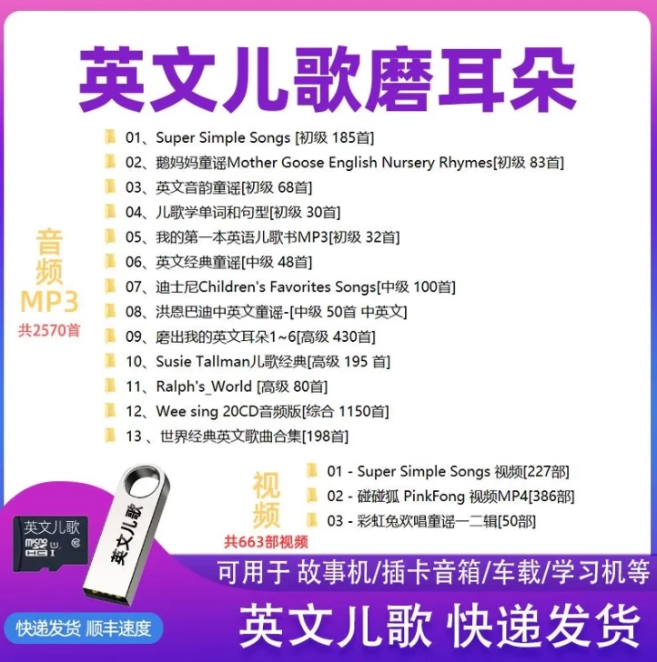Oreille anglaise pour enfants meulage MP3 audio carte tf U disque illumination chansons pour enfants broyer ma carte mémoire oreille anglaise carte mémoire 32G + machine d'éducation de la petite enfance bleu + avec liste de catalogue