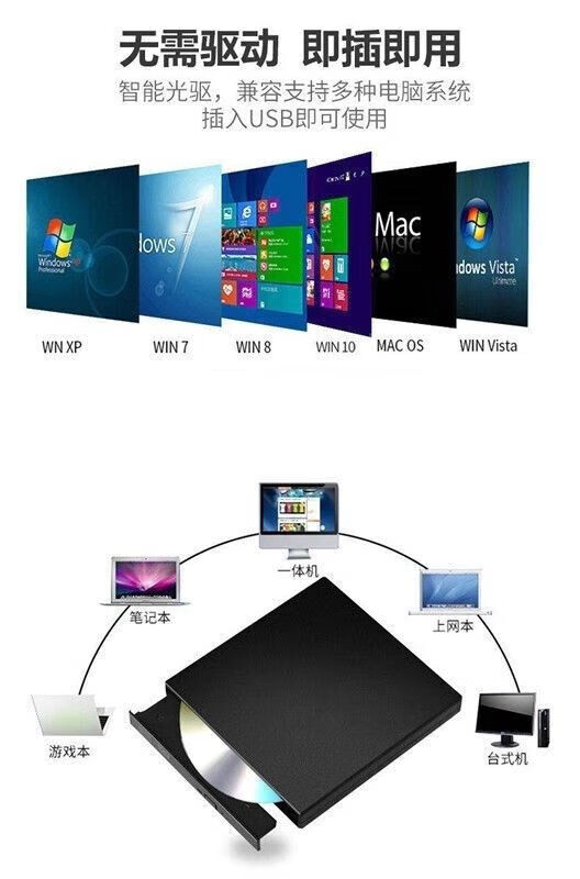Fun Appliances External DVD Burner USB External Mobile CDVCDDVD Burning Optical Drive Computer Universal Disc Player Supports 8.5G D9 Dual Layer Burning Speed Faster